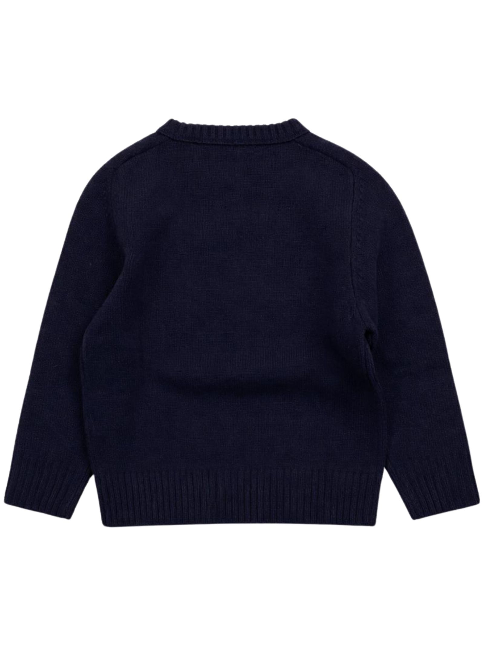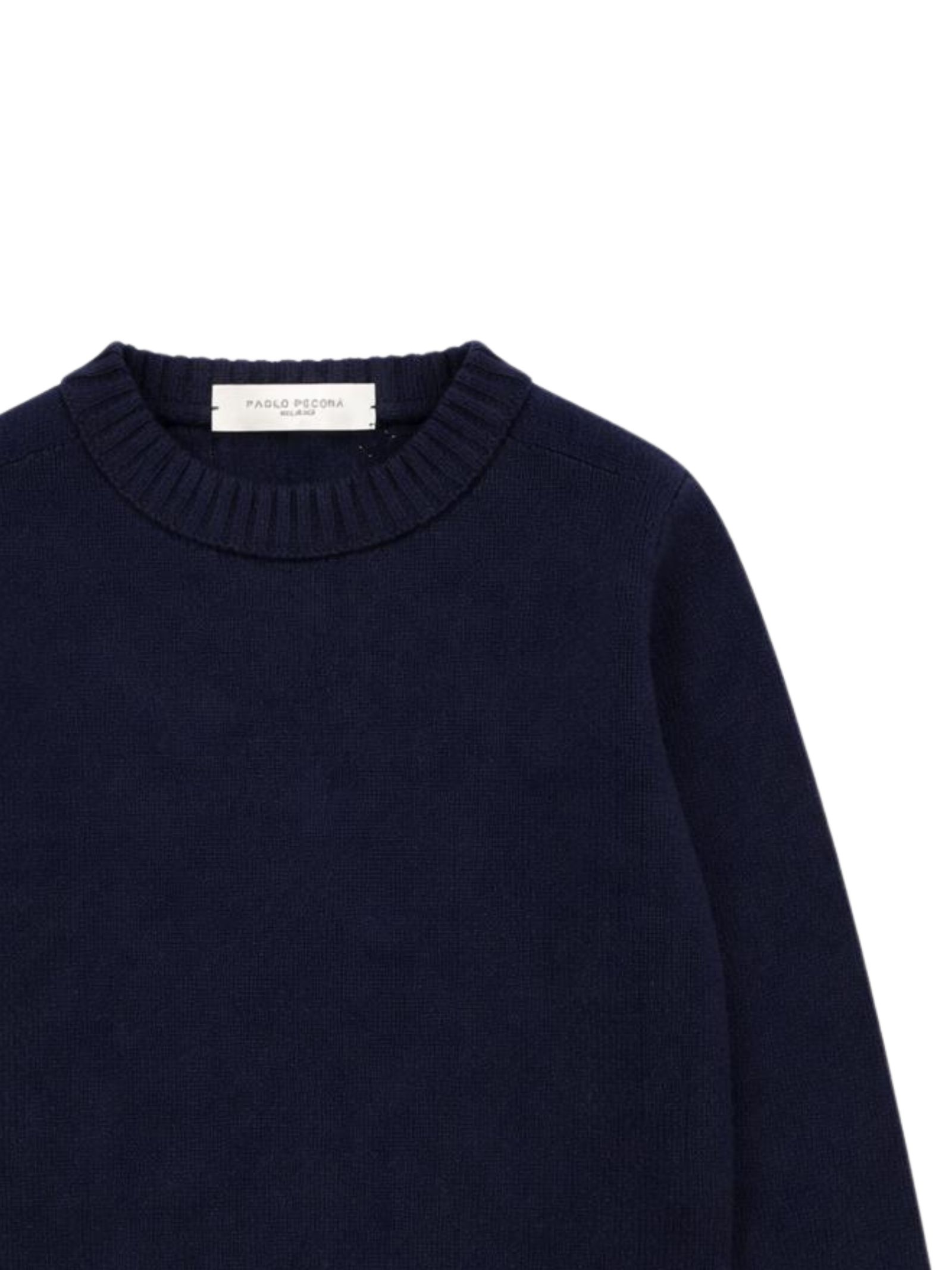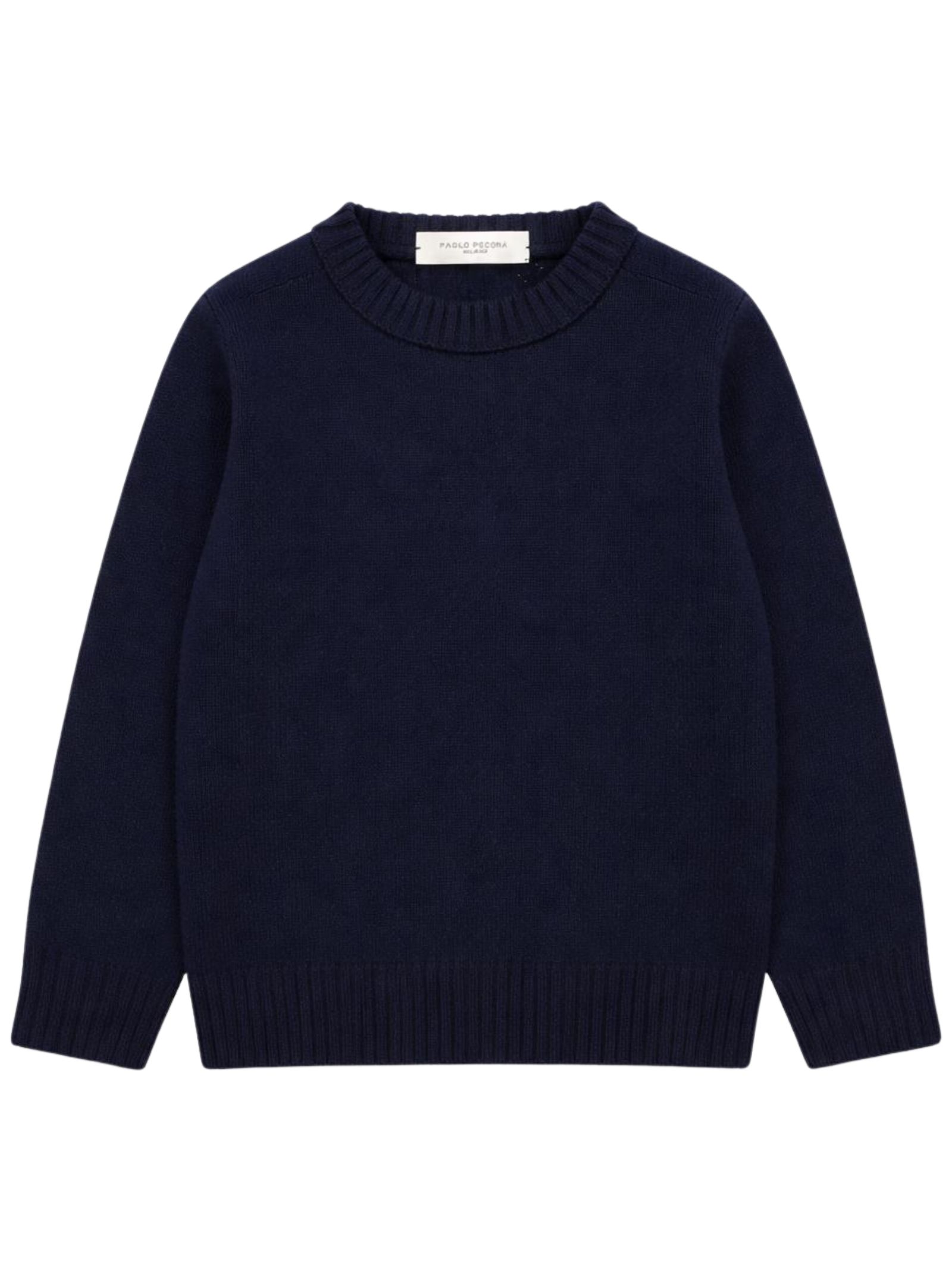 Paolo Pecora Kids blue sweater, made of soft knit, crew neck, long sleeves, mini logo embroidery, regular fit, straight hem. Composition: 100% metallic fiber.