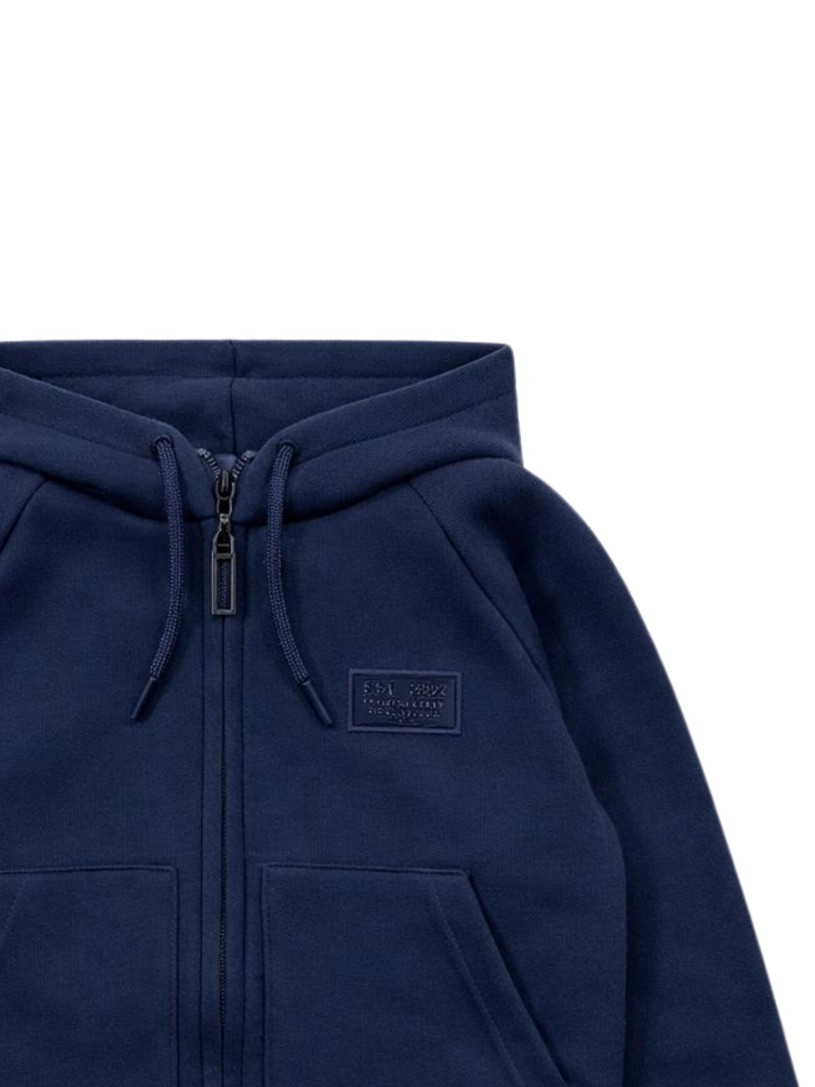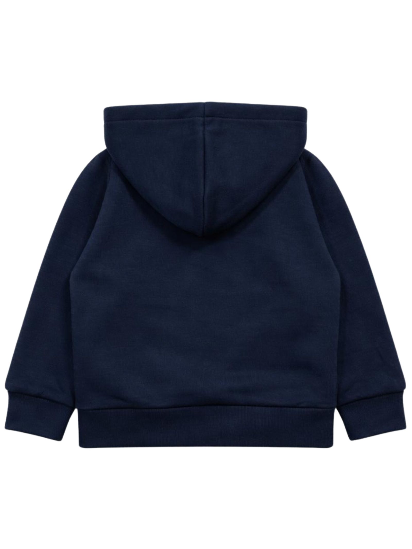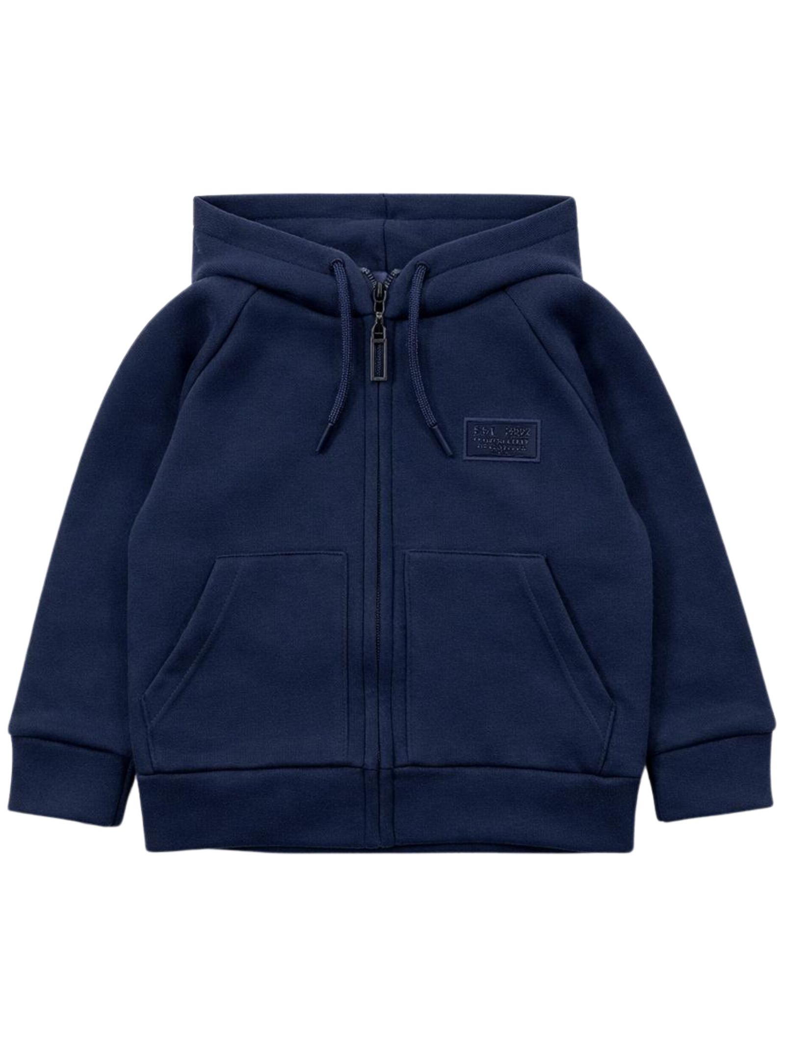 Paolo Pecora Kids blue hooded sweatshirt with a central zip, long sleeves, a logo patch, a regular fit, and a straight hem. Composition: 80% polyester, 15% viscose, 5% elastane. Made in Italy.