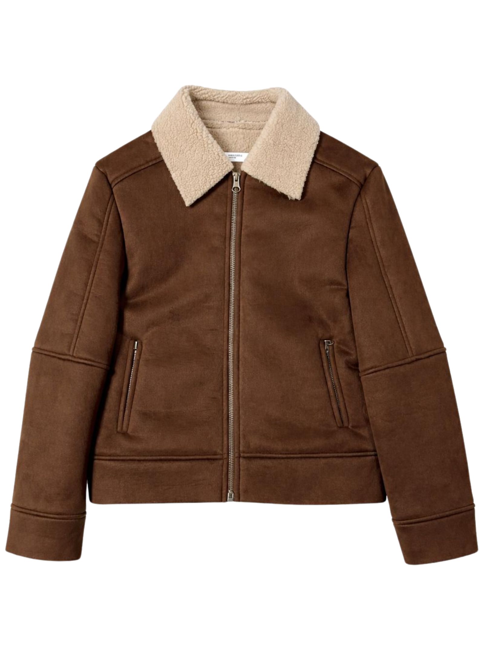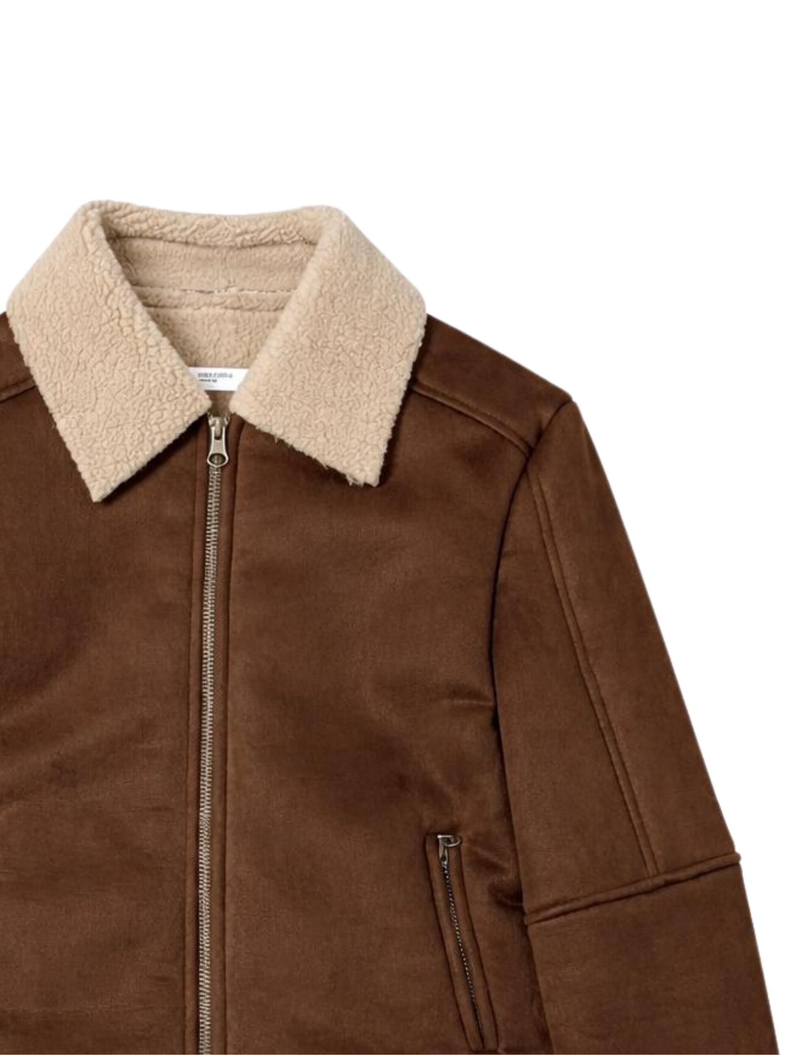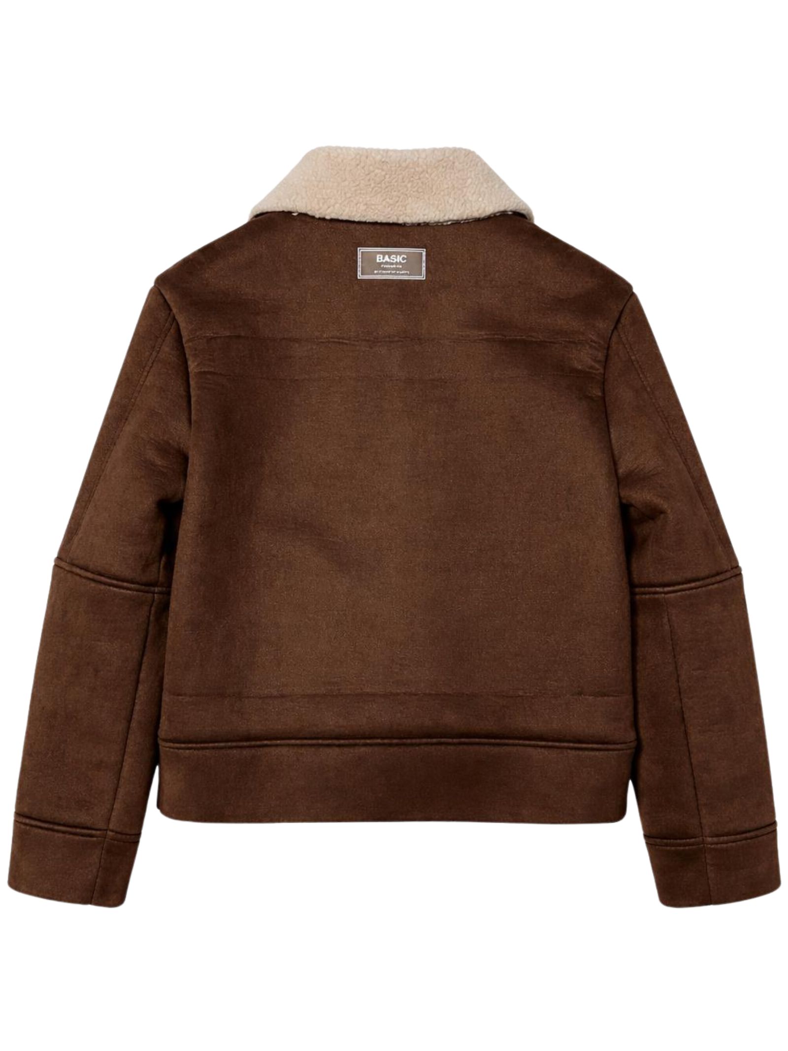 Paolo Pecora Kids brown sheepskin jacket, interior, collar, and cuffs in soft, contrasting beige sherpa fabric, two zip pockets, central zip closure, regular fit. Composition: 95% polyester, 5% elastane. Made in Italy.