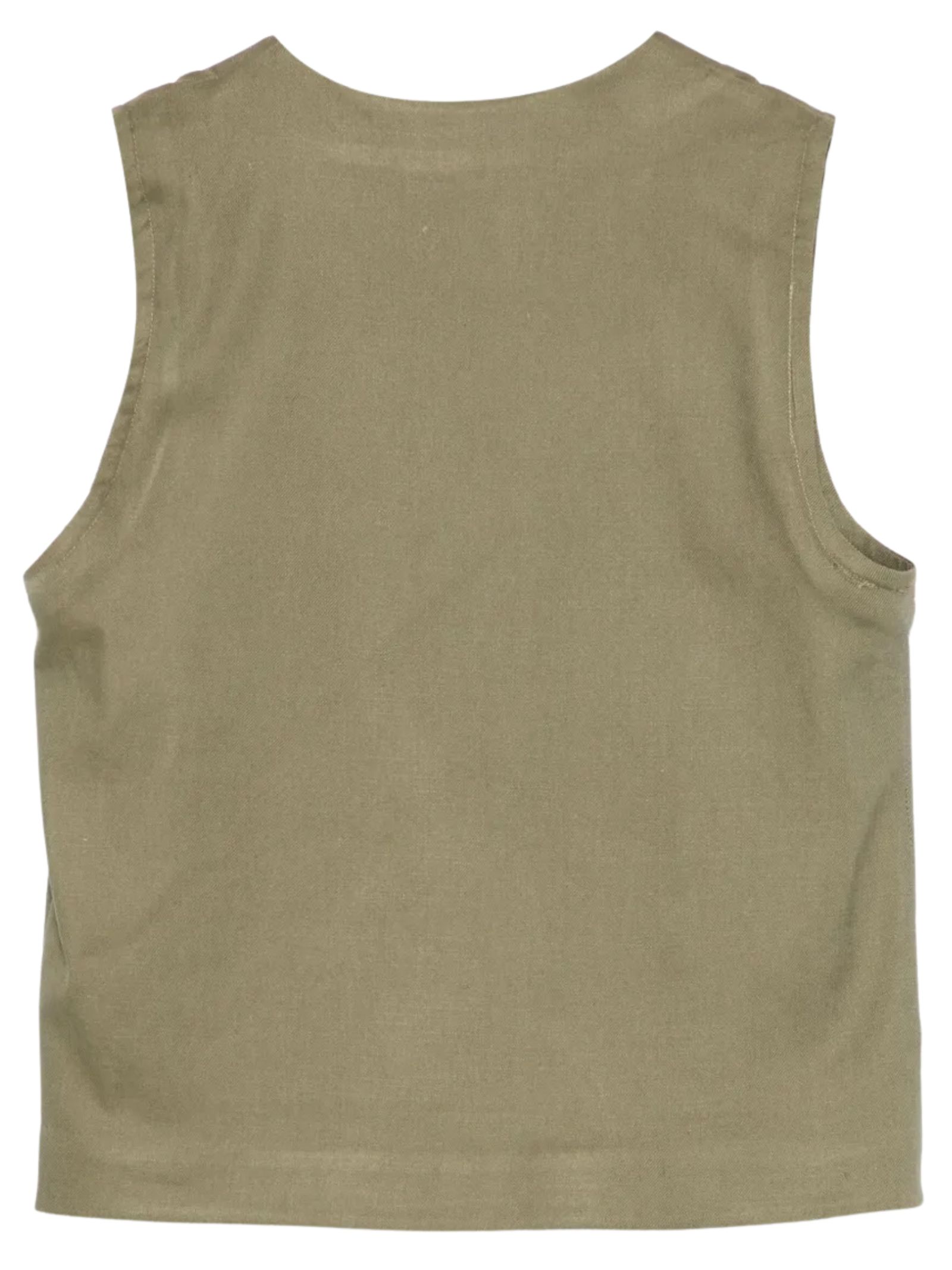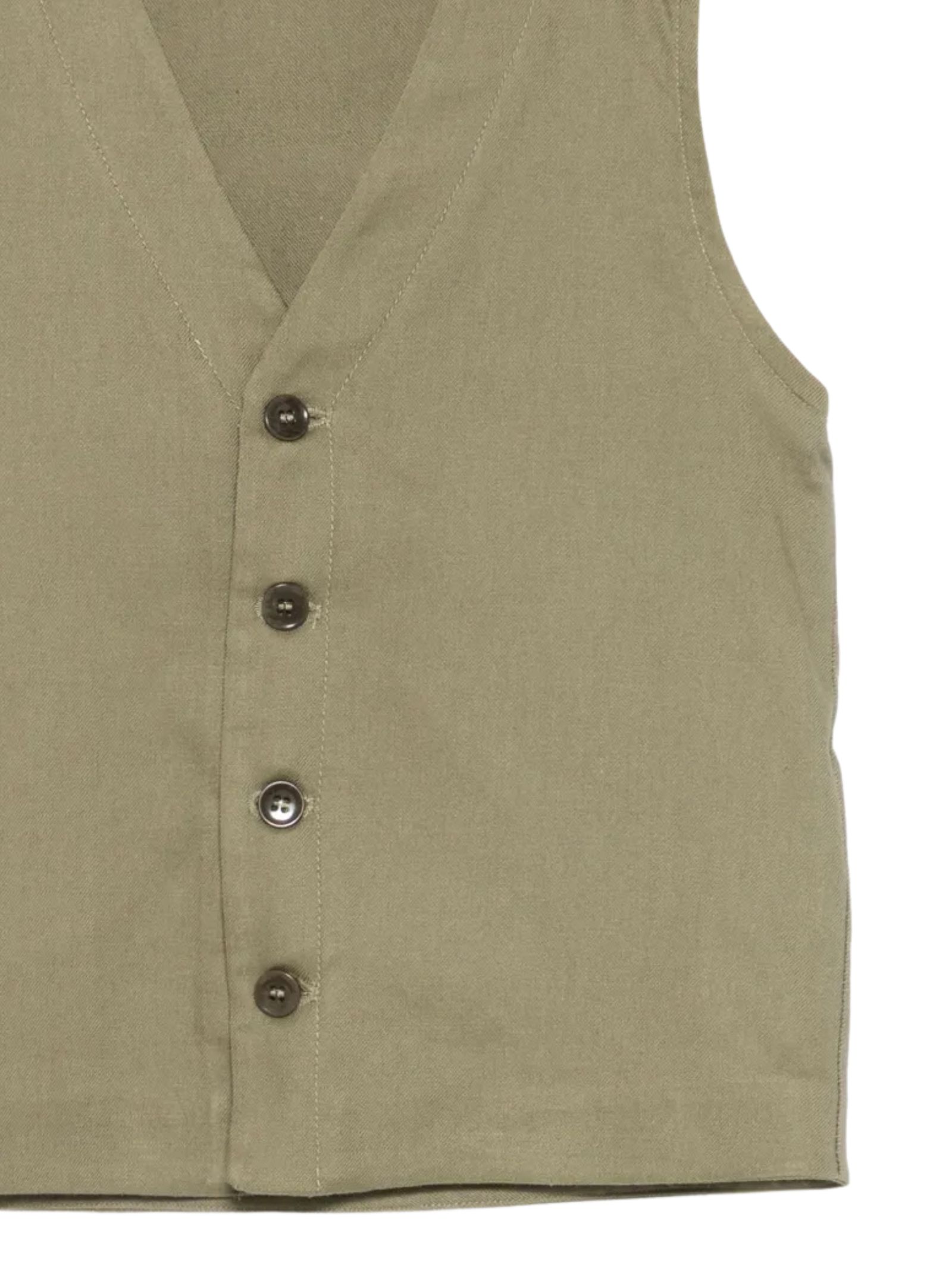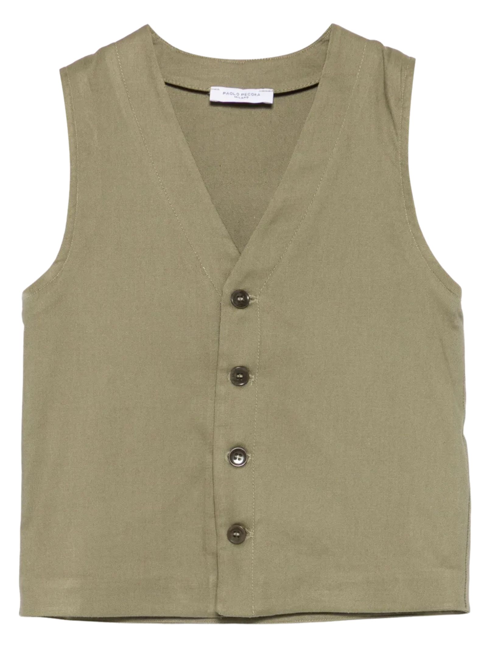 Paolo Pecora Kids green vest with button closure, V-neck, and regular fit. Composition: 40% viscose, 33% linen, 26% cotton, 1% elastane. Made in Italy.