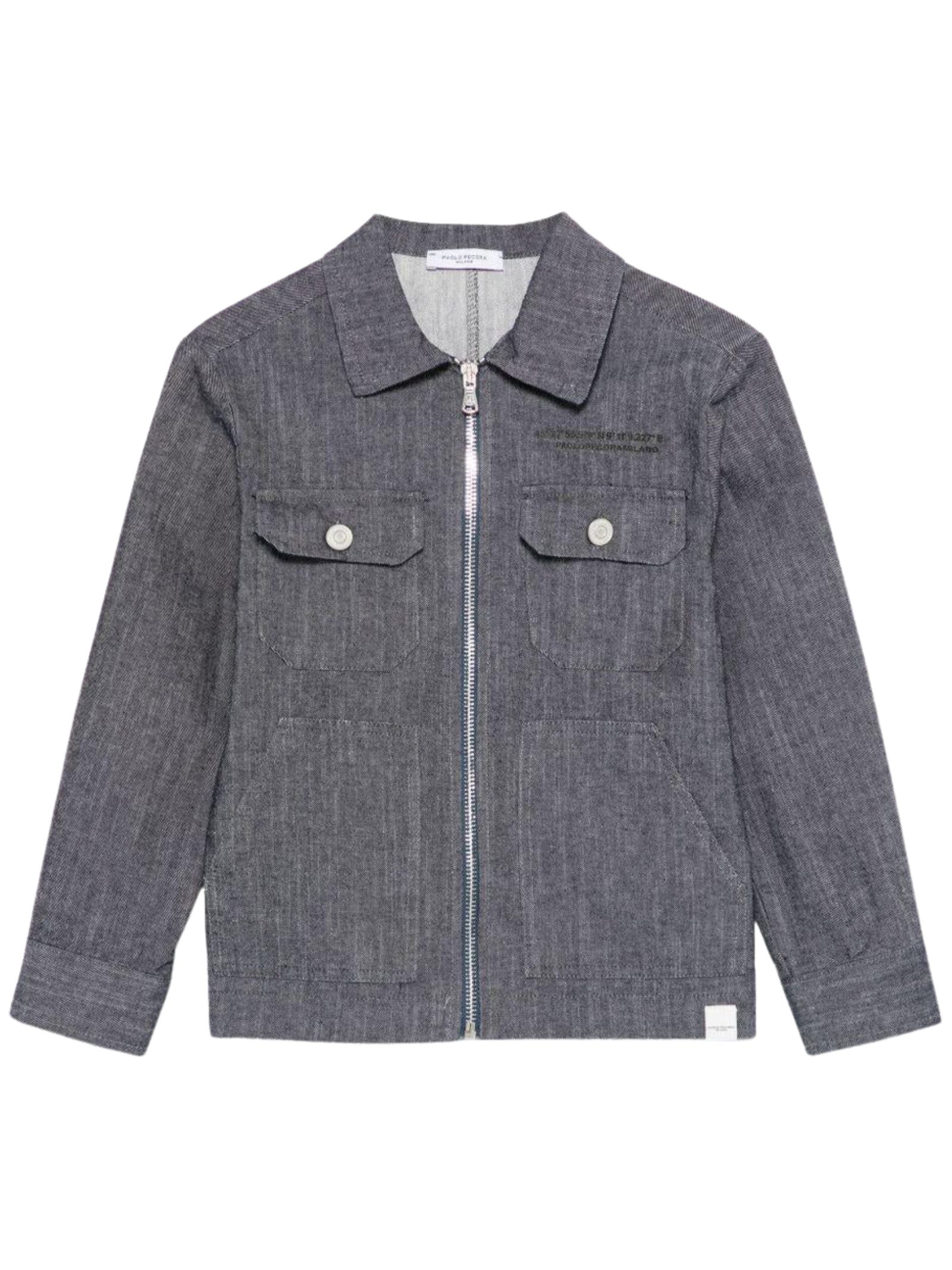 Paolo Pecora Kids lightweight cotton denim jacket, front zip closure, two chest flap pockets, two front kangaroo pockets, adjustable waistband, regular fit. Composition: 100% cotton. Made in Italy.