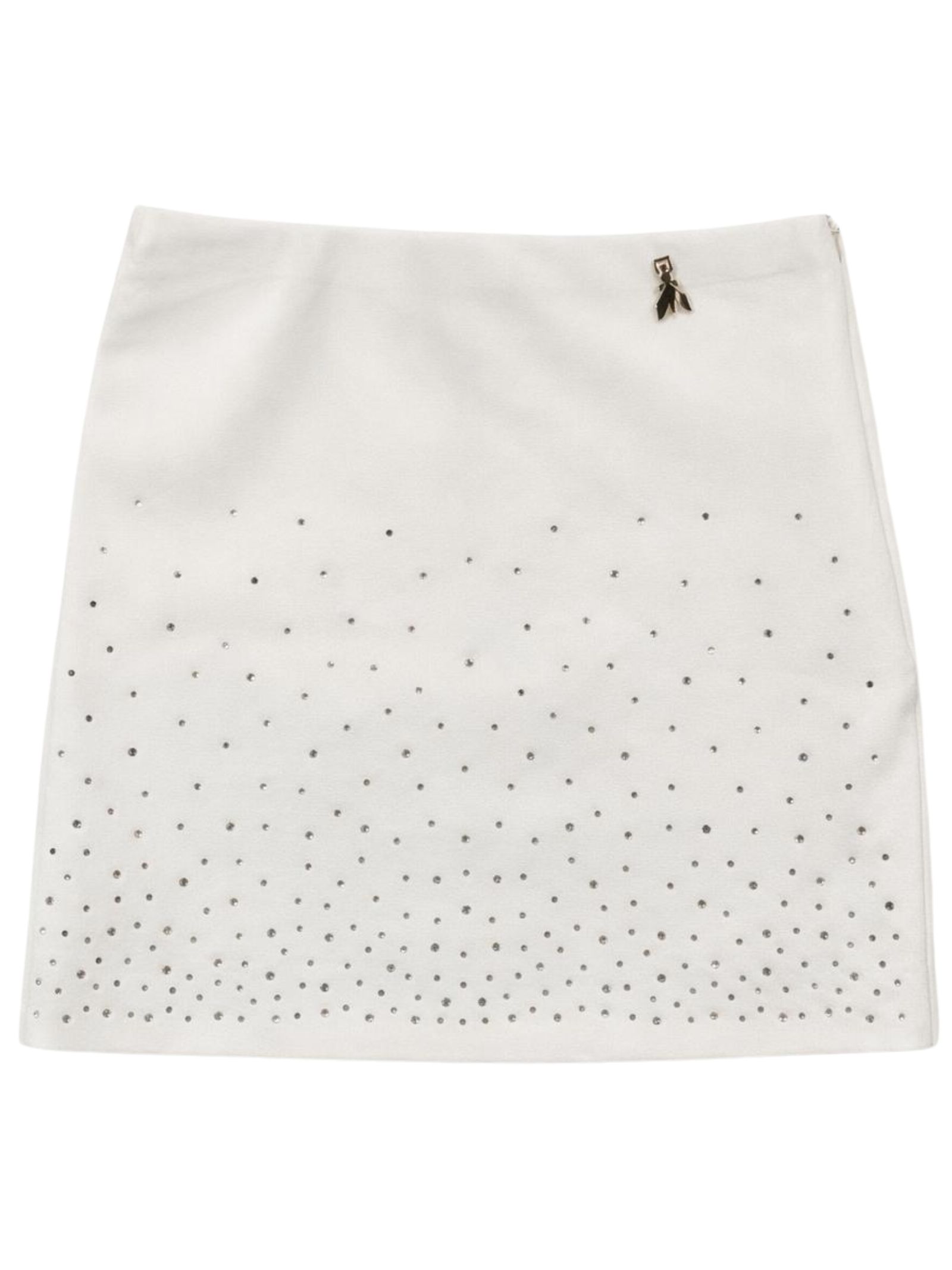 With a regular waist, featuring a contrasting rhinestone appliqué, a side zip, a metal logo appliqué, and a regular fit. Composition: 95% polyester, 5% elastane. Made in Italy.