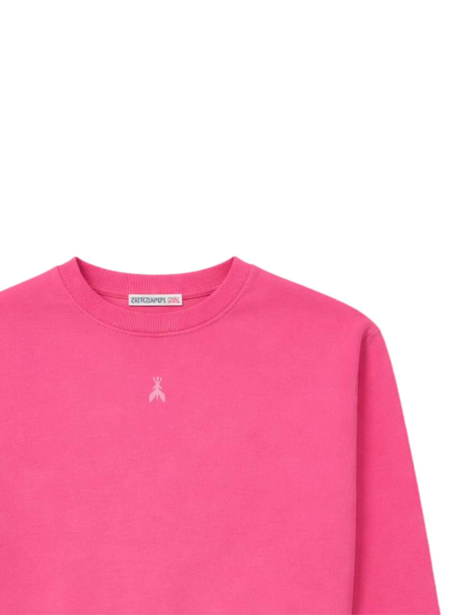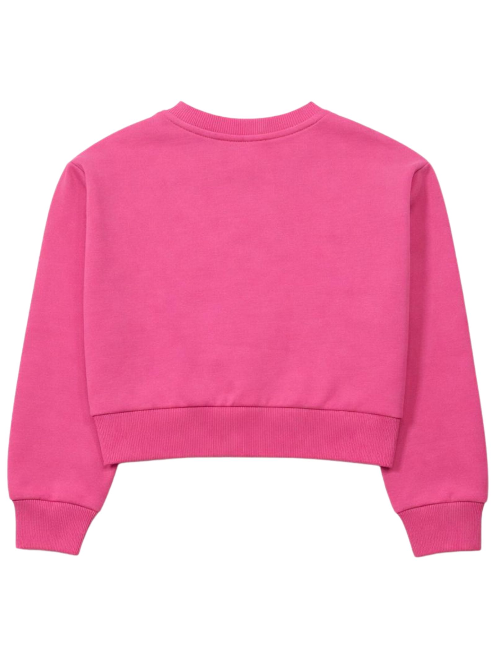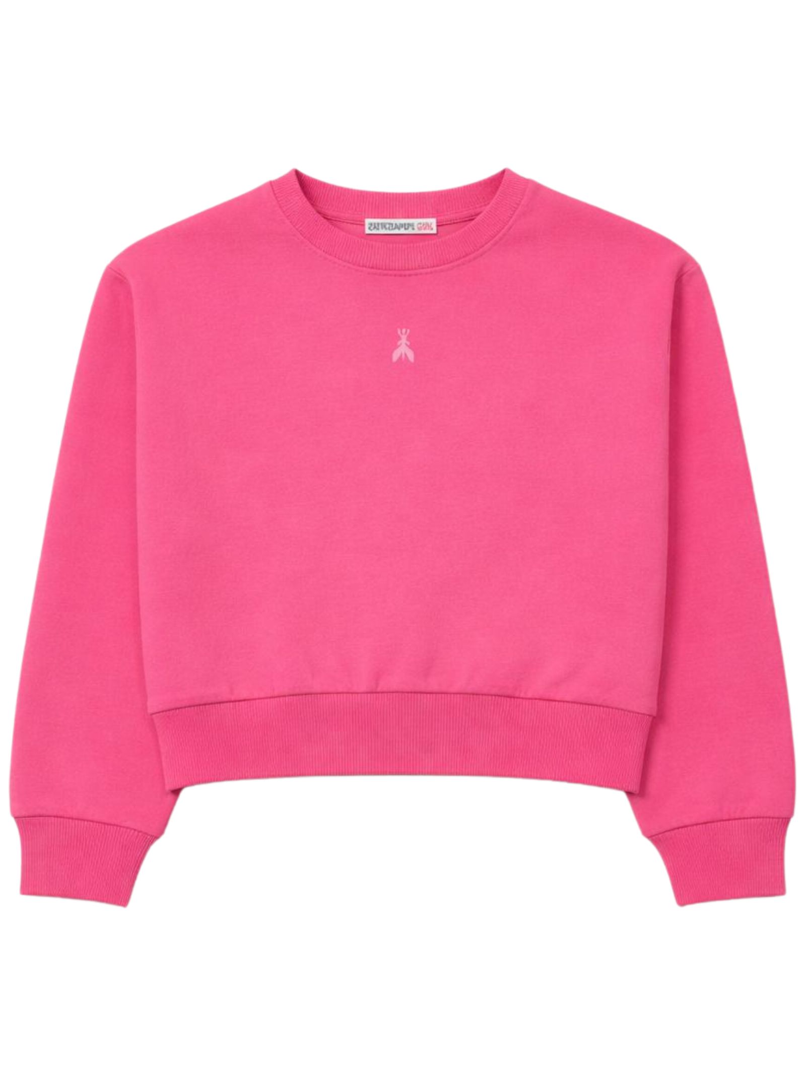 Patrizia Pepe Kids neon pink sweatshirt, cropped, crew neck, long sleeves, featuring a contrasting central logo print, ribbed cuffs, and a regular fit. Composition: 100% cotton. Made in Italy.