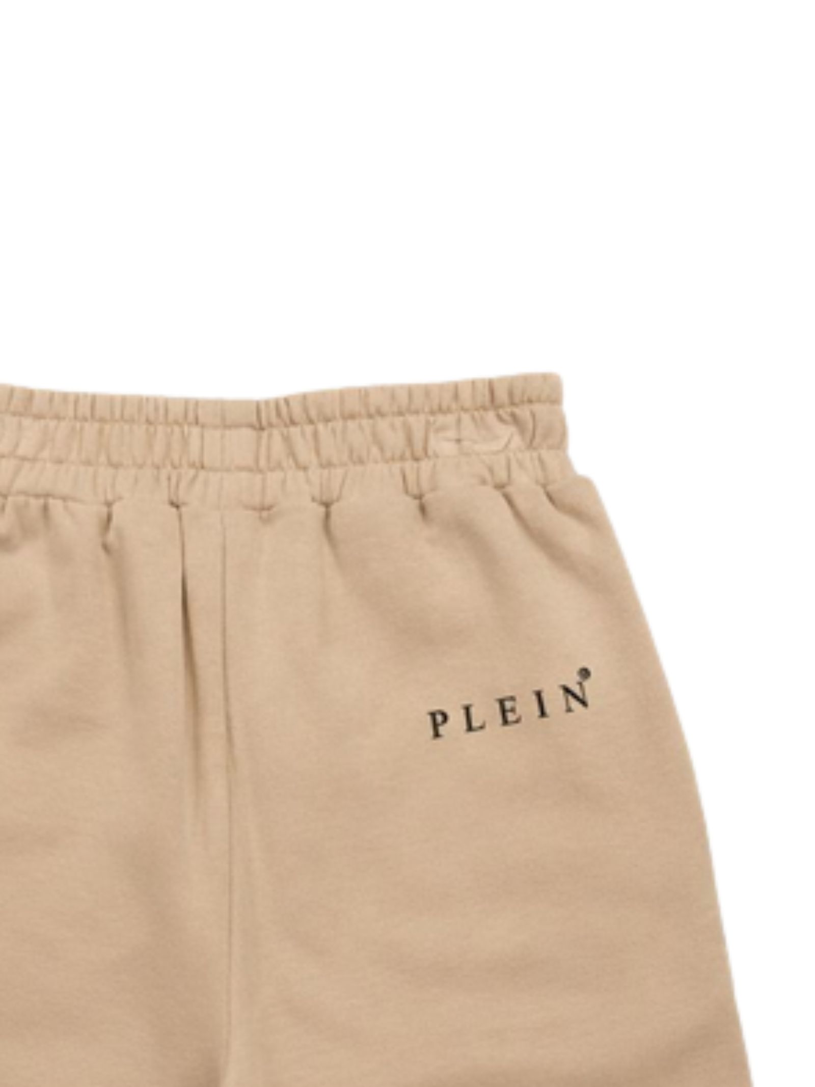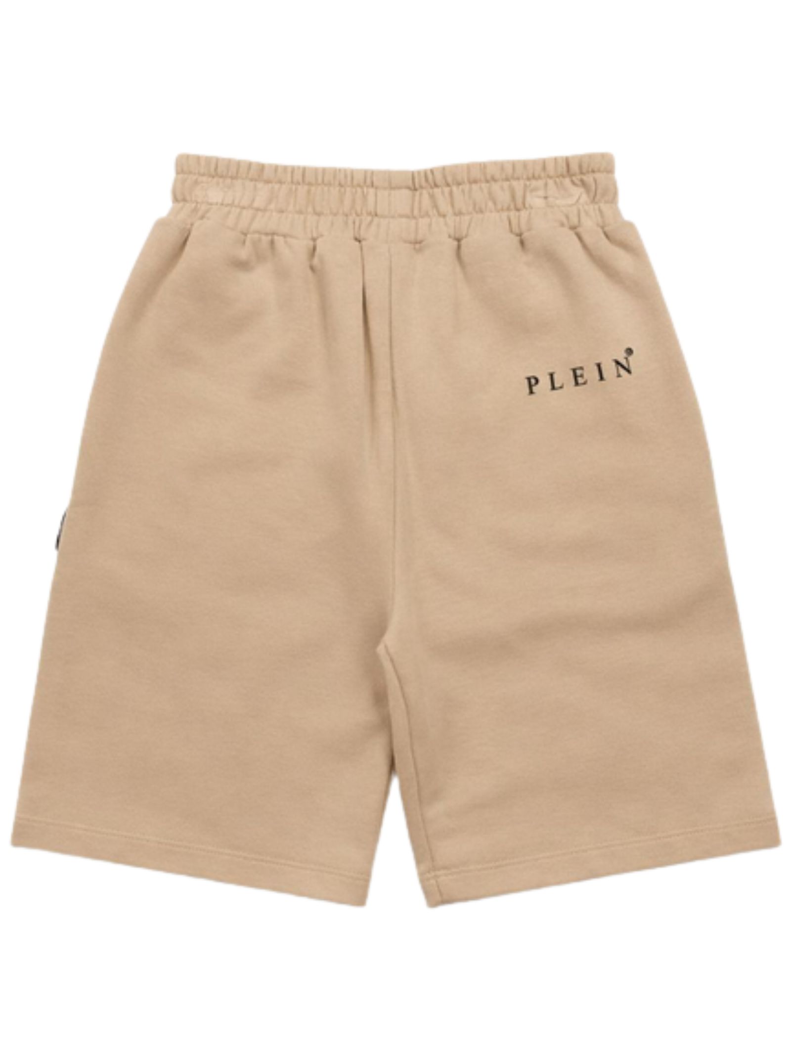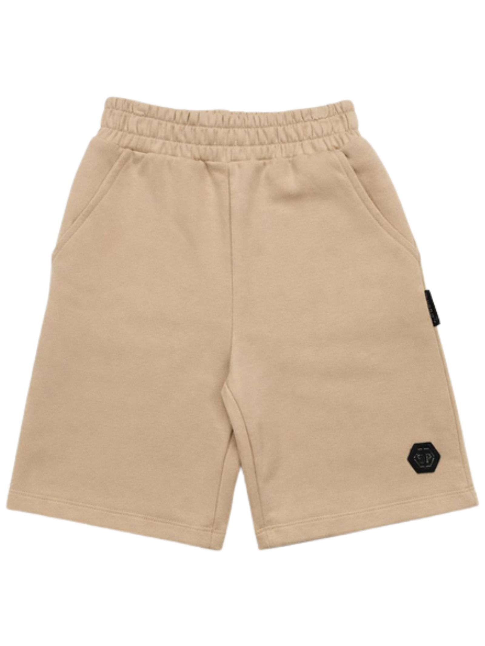 Philipp Plein Kids sand-colored Bermuda shorts with an elastic waistband, two side pockets, a logo patch, and a regular fit. Composition: 100% cotton.