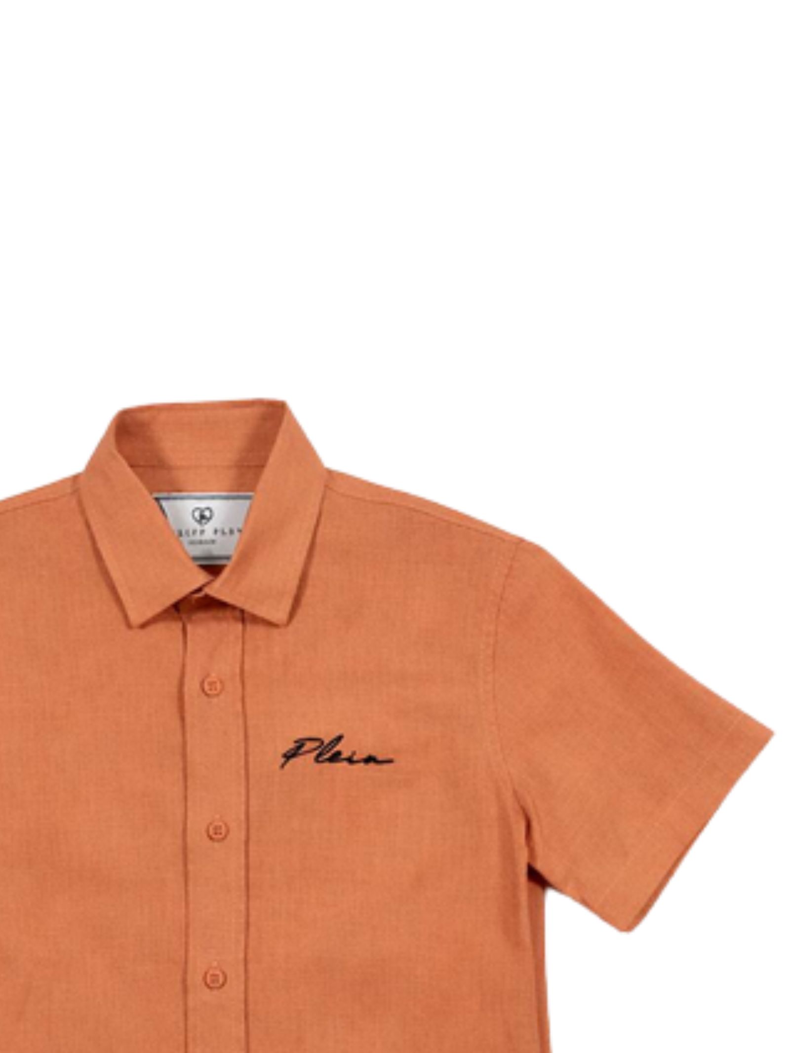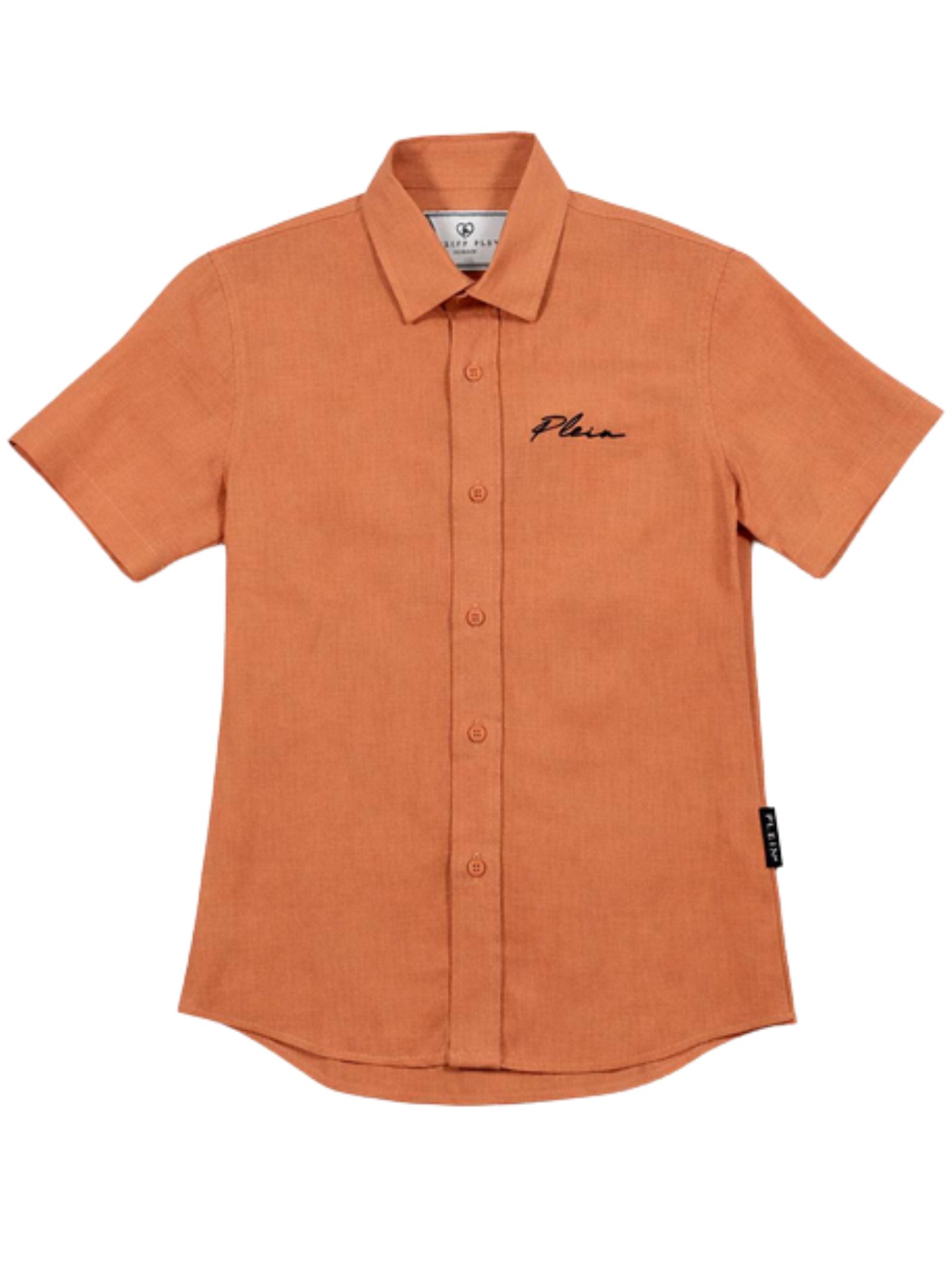 Philipp Plein Kids peach shirt, logo embroidery on the chest, short sleeves, curved hem, regular fit. Composition: 100% linen. Made in Italy.