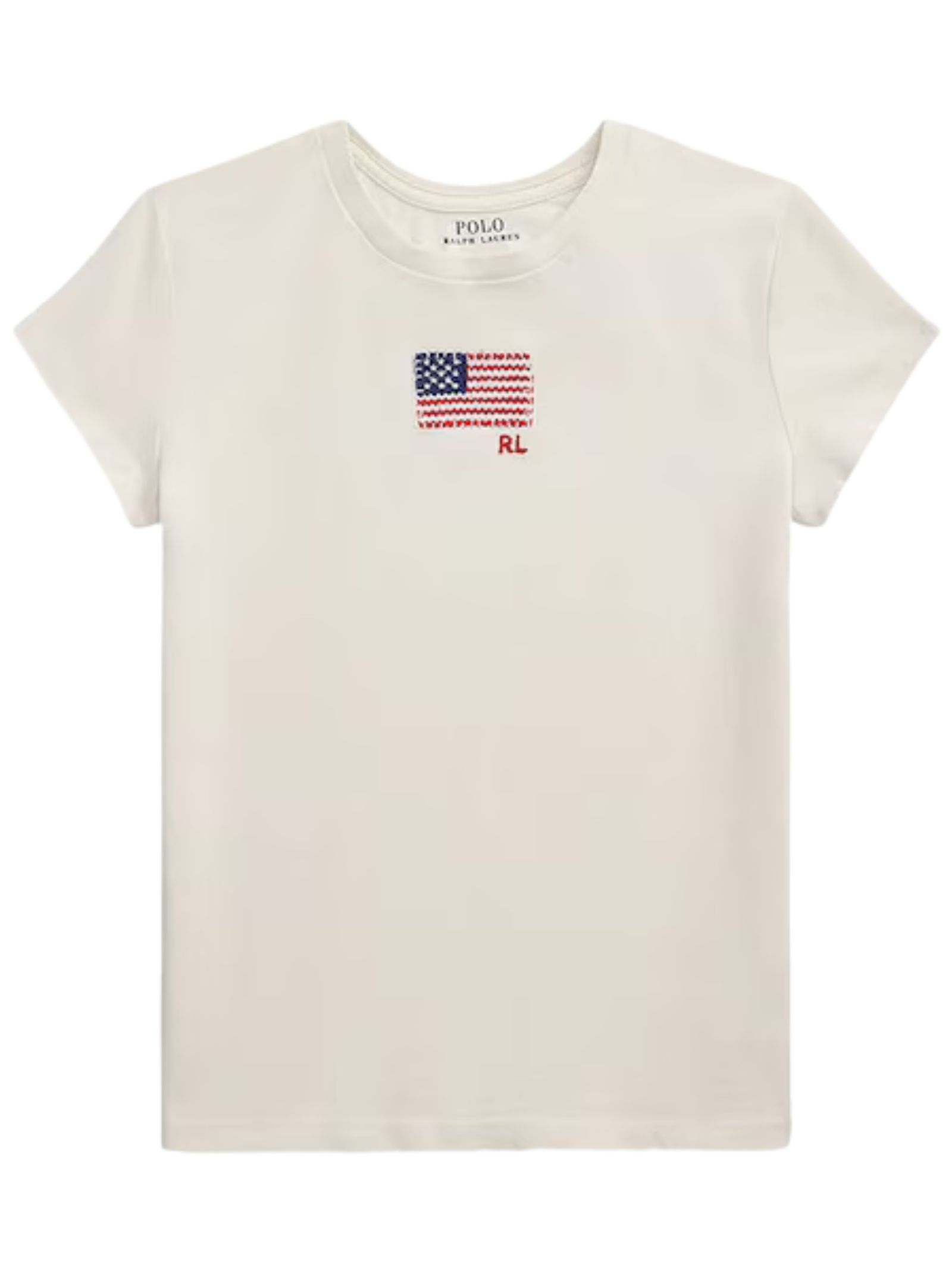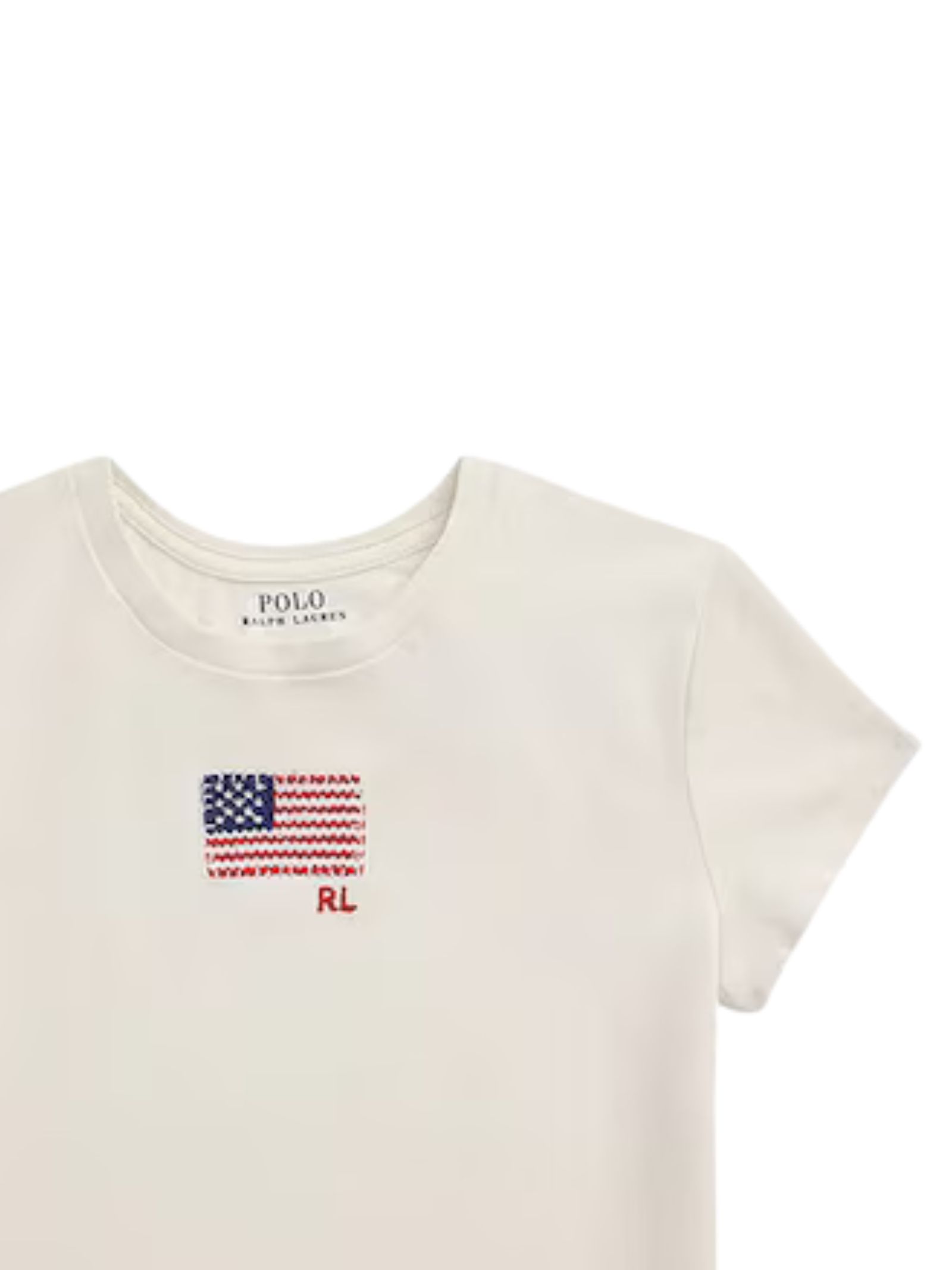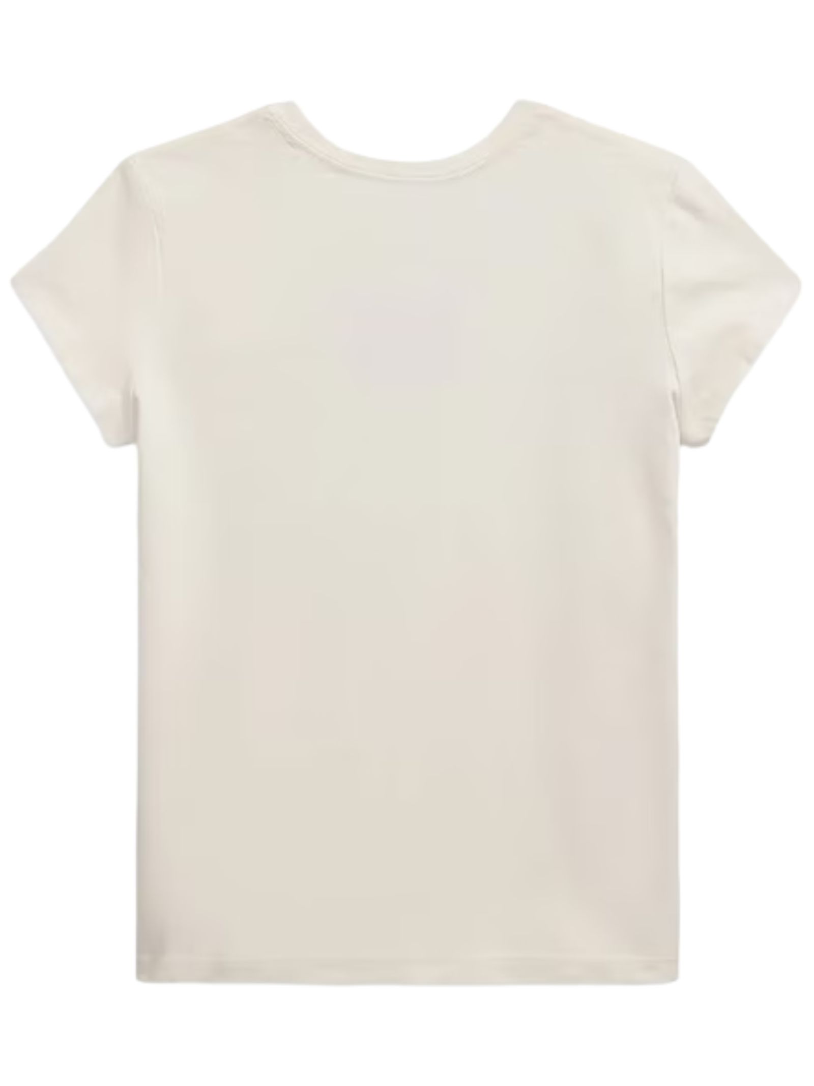 Ralph Lauren Kids white T-shirt, crew neck, short sleeves, contrasting central logo embroidery, straight hem, regular fit. Composition: 100% cotton.