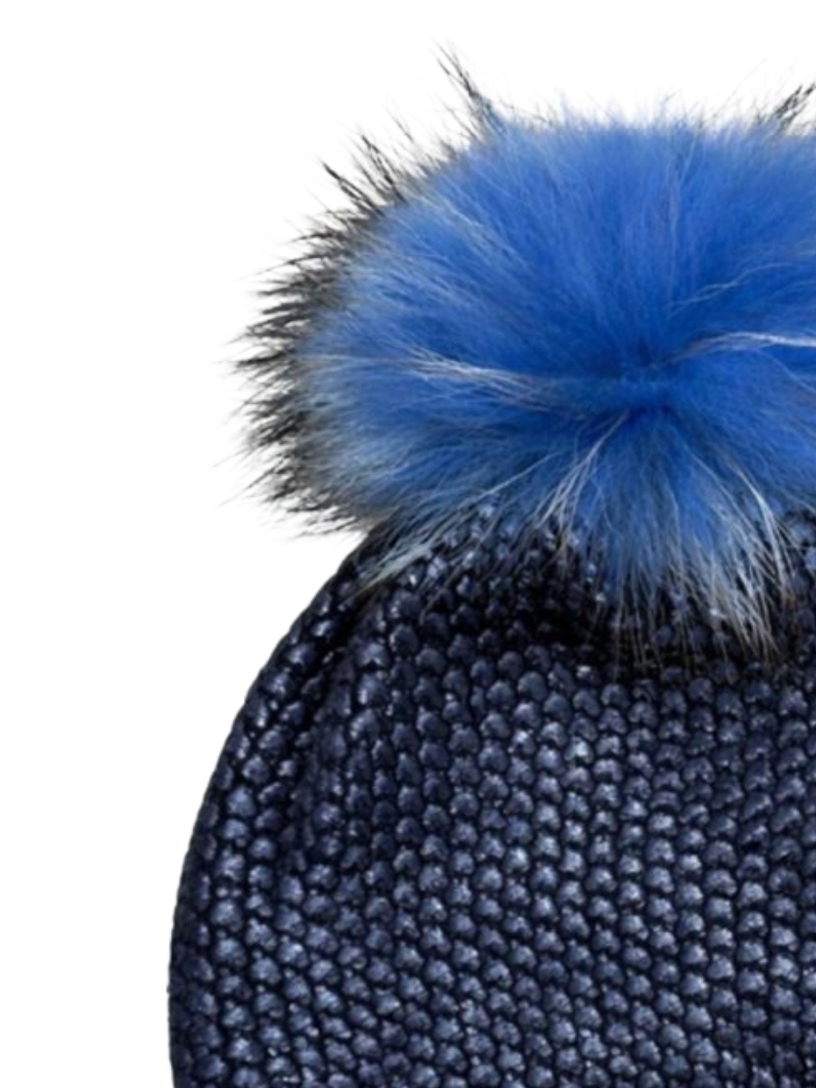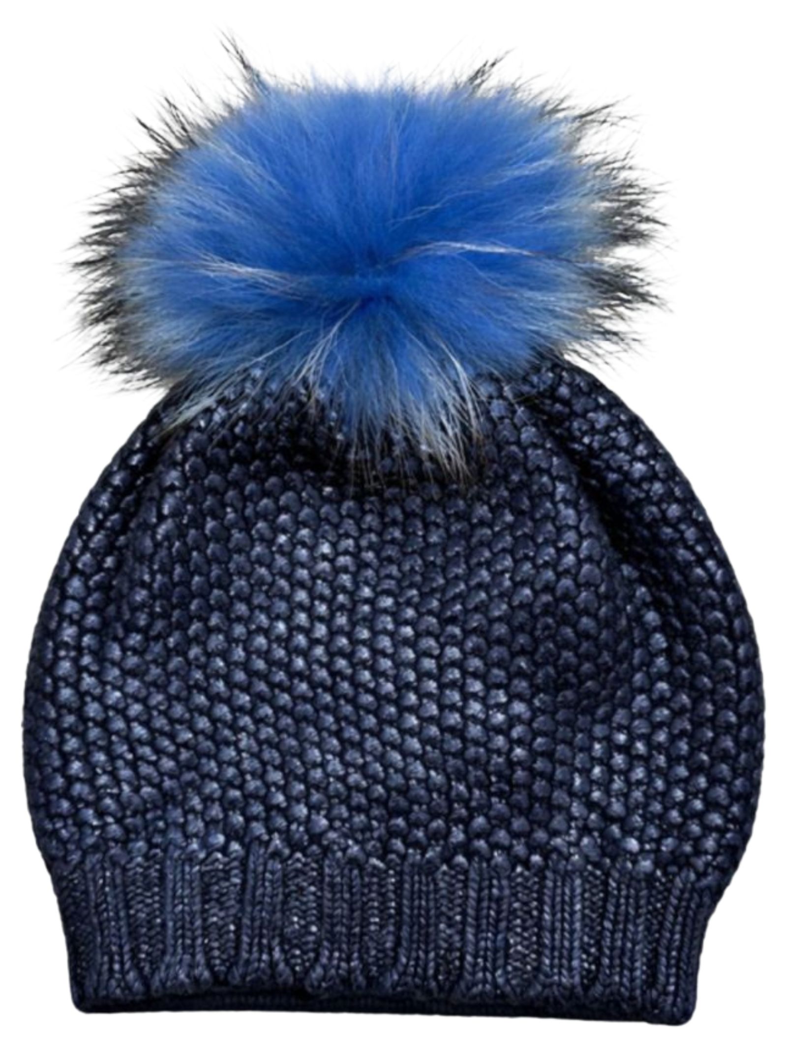 Regina Kids blue knitted hat with a beanie design, ribbed edges, and a pom pom appliqué. Composition: 70% wool, 30% cashmere.
