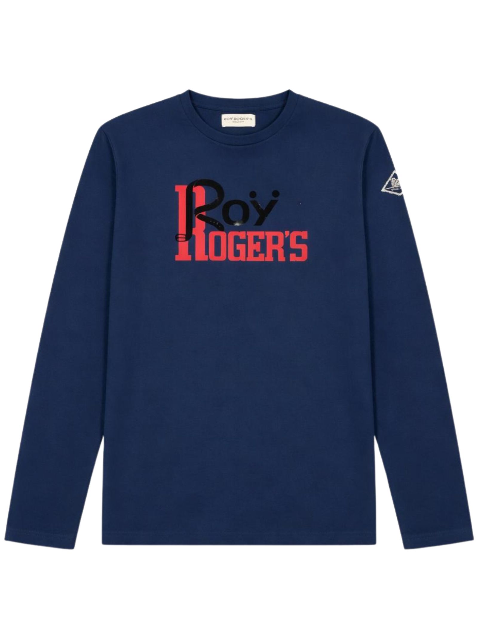Roy Roger's Kids blue T-shirt, crew neck, long sleeves, contrasting central logo print, regular fit, straight hem. Composition: 100% cotton