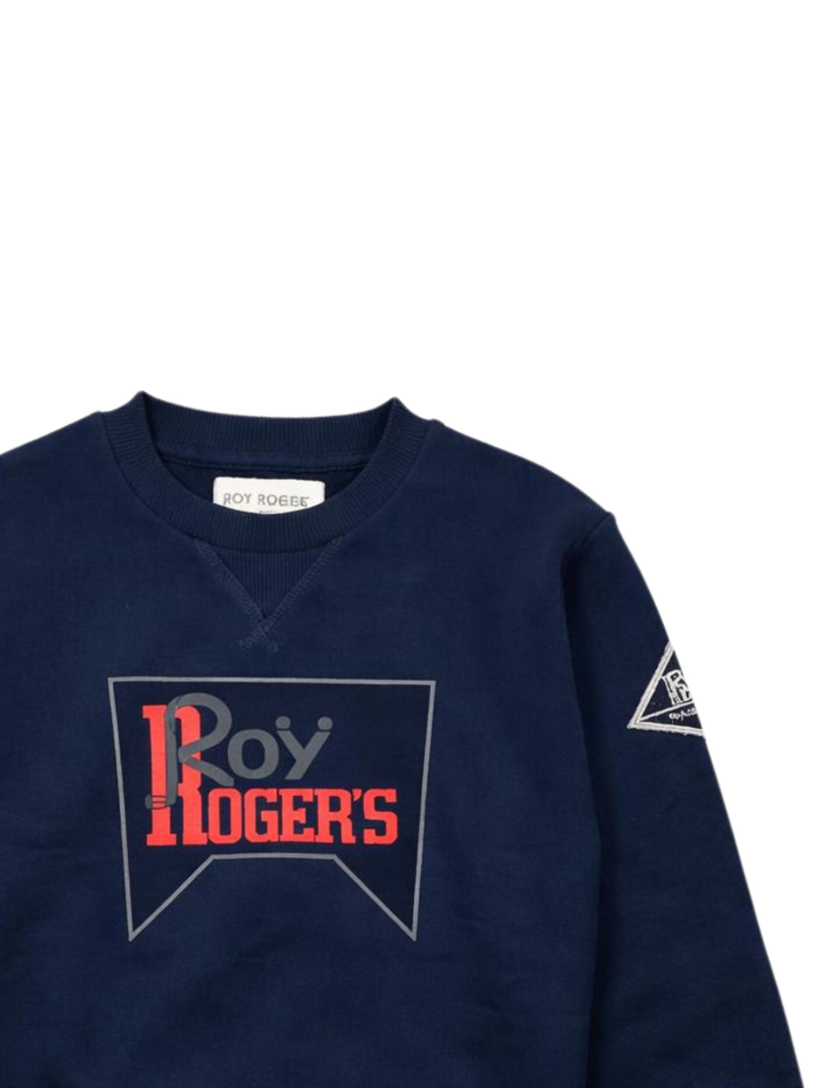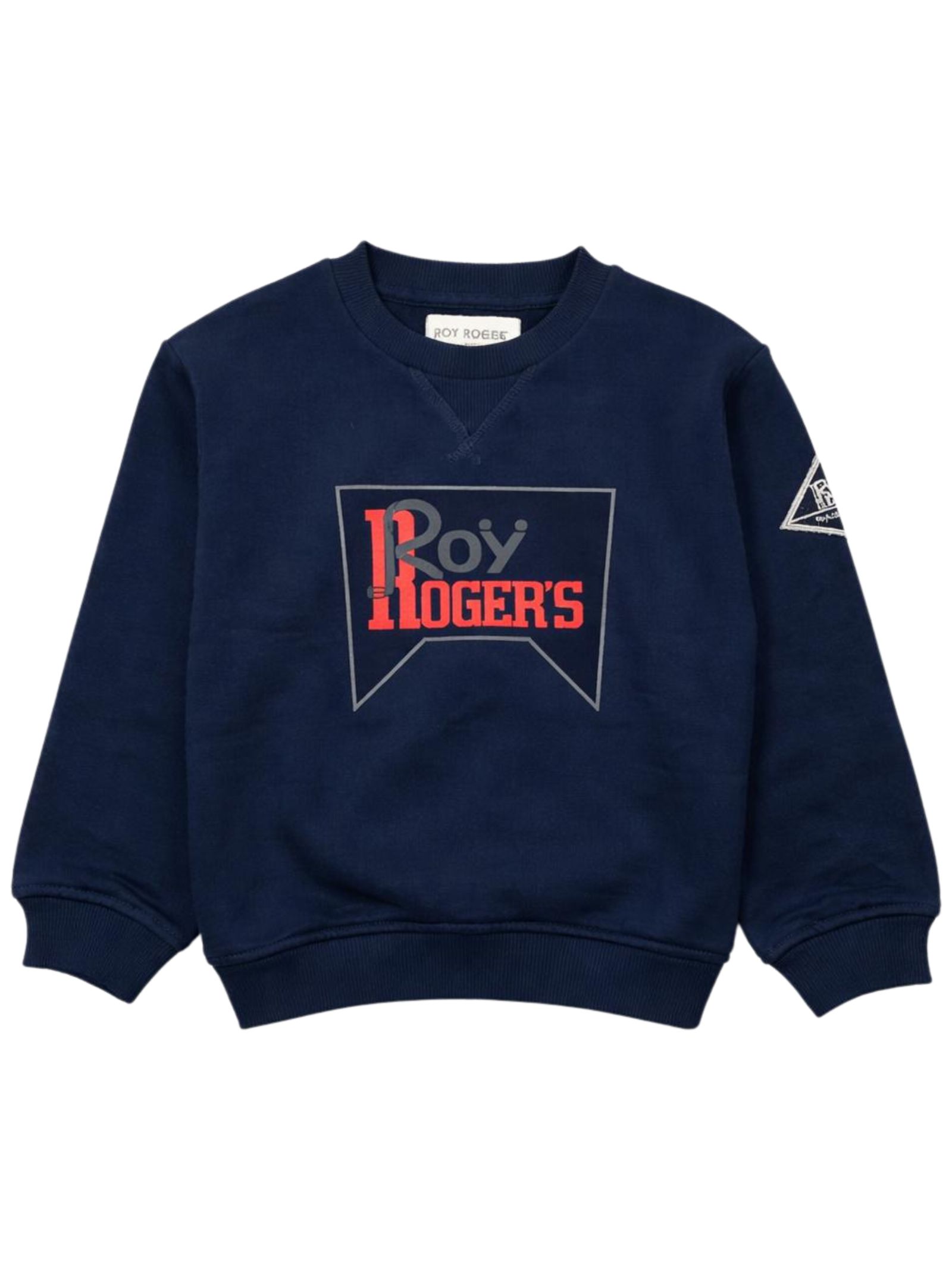 Roy Roger's Kids blue sweatshirt, crew neck, contrasting central logo print, ribbed cuffs, regular fit. Composition: 100% warm cotton.