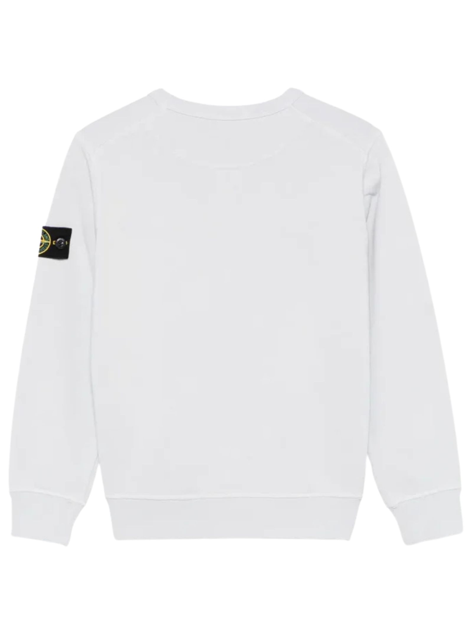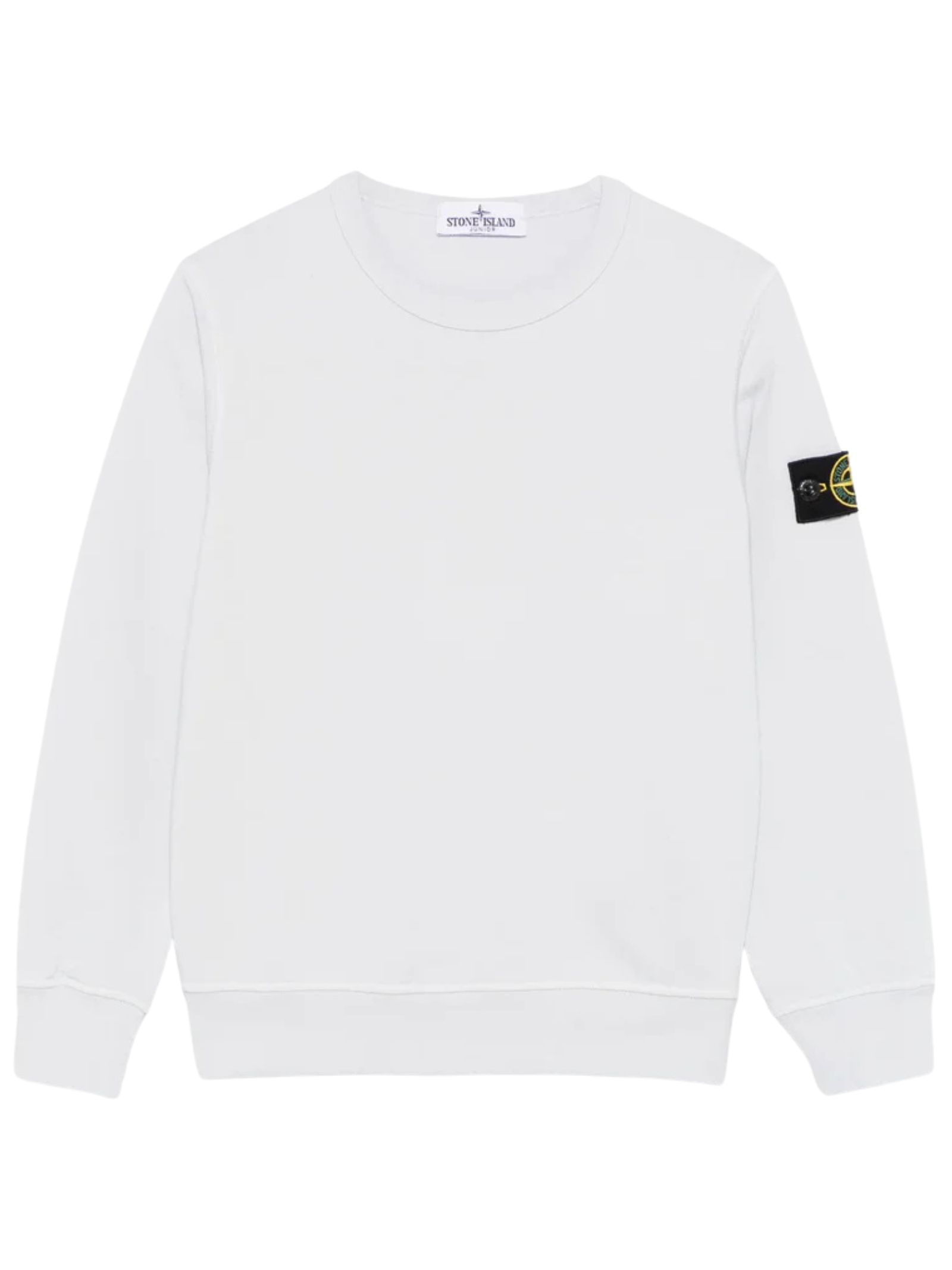 STONE ISLAND Junior light blue sweatshirt, crew neck, long sleeves, logo applique on the arm, regular fit. Composition: 100% cotton