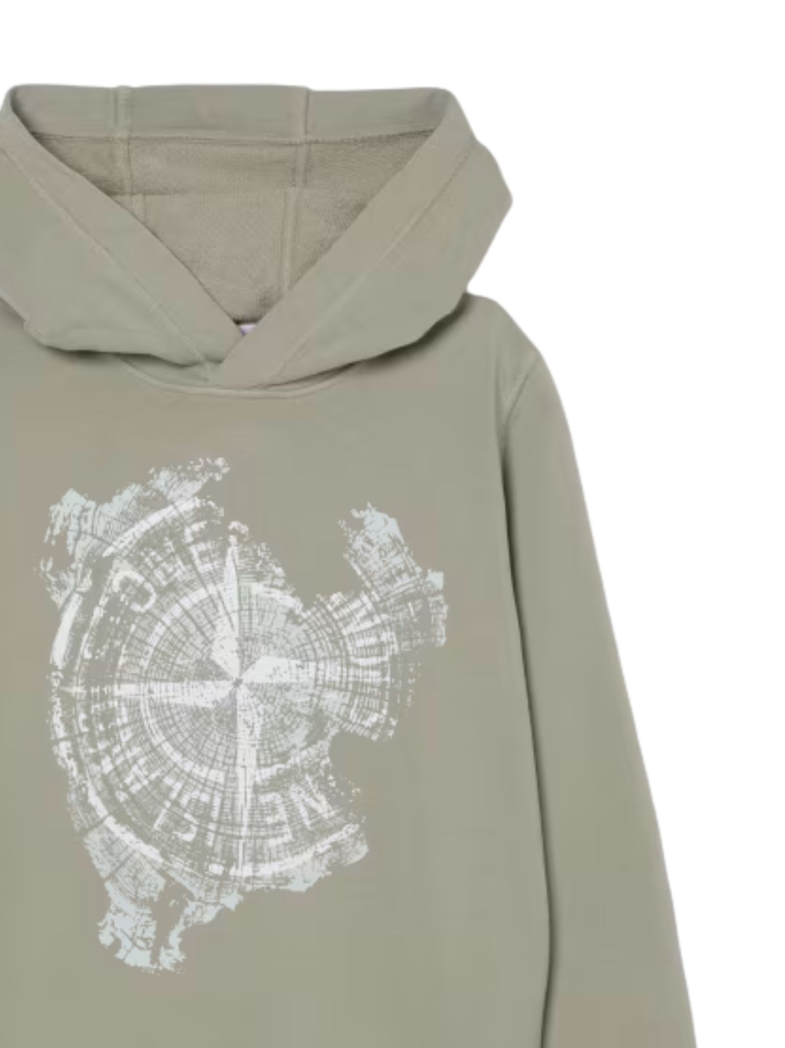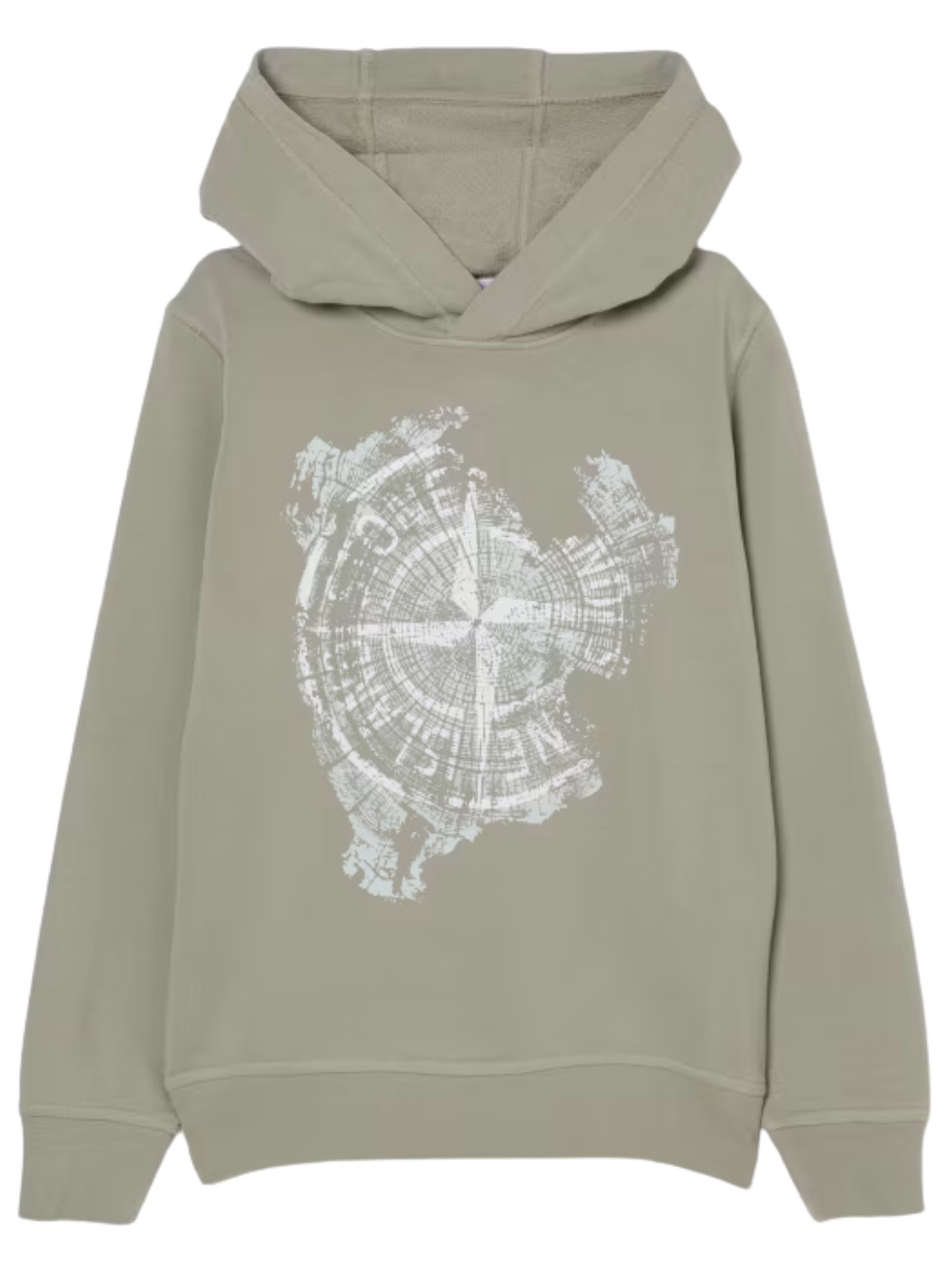 STONE ISLAND Junior green sweatshirt, contrasting central logo print, hood, long sleeves, straight hem, ribbed cuffs. Composition: 100% cotton