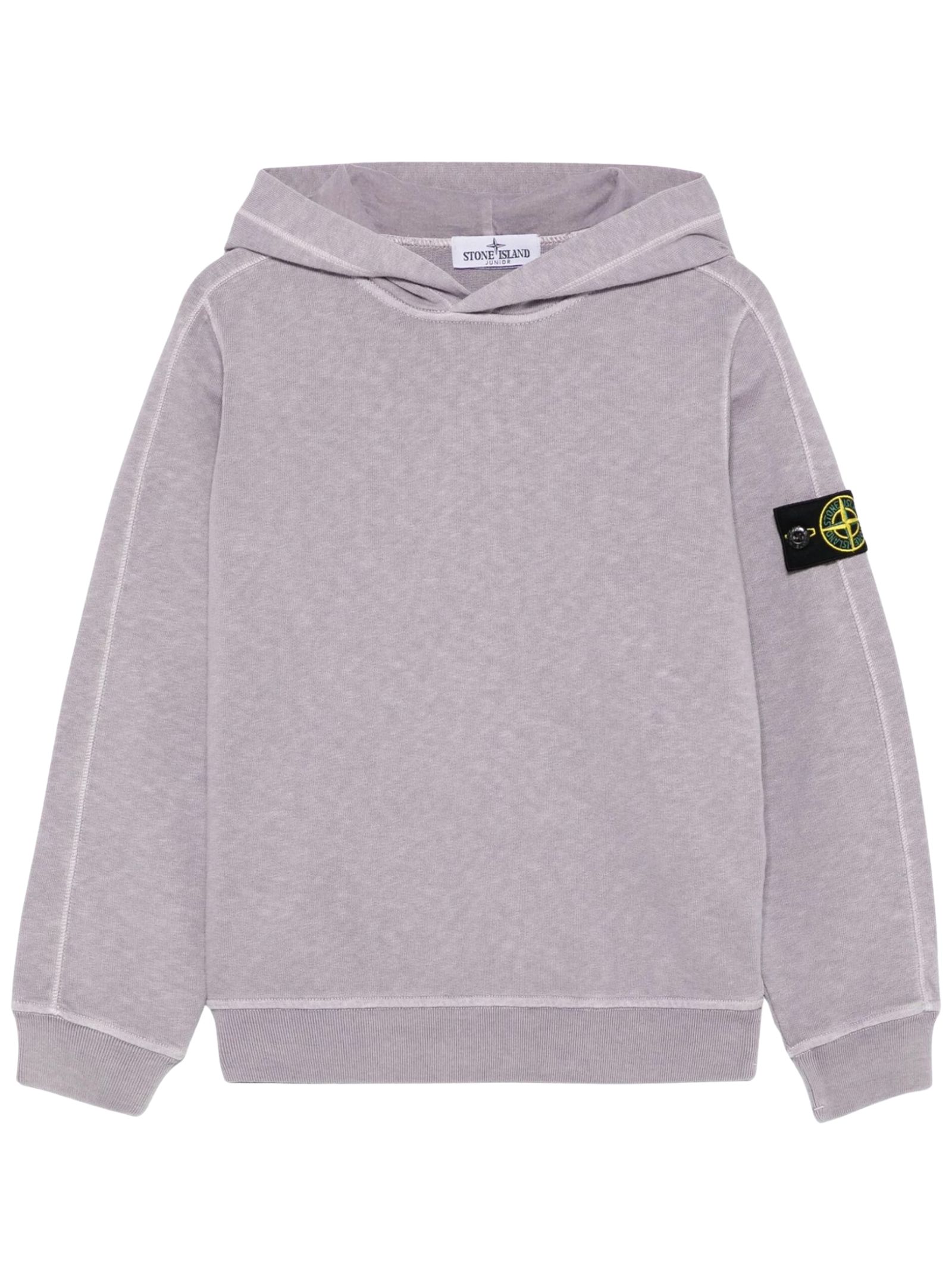 STONE ISLAND Junior lilac sweatshirt, logo patch on the sleeve, hood, long sleeves, straight hem, ribbed cuffs. Composition: 100% cotton