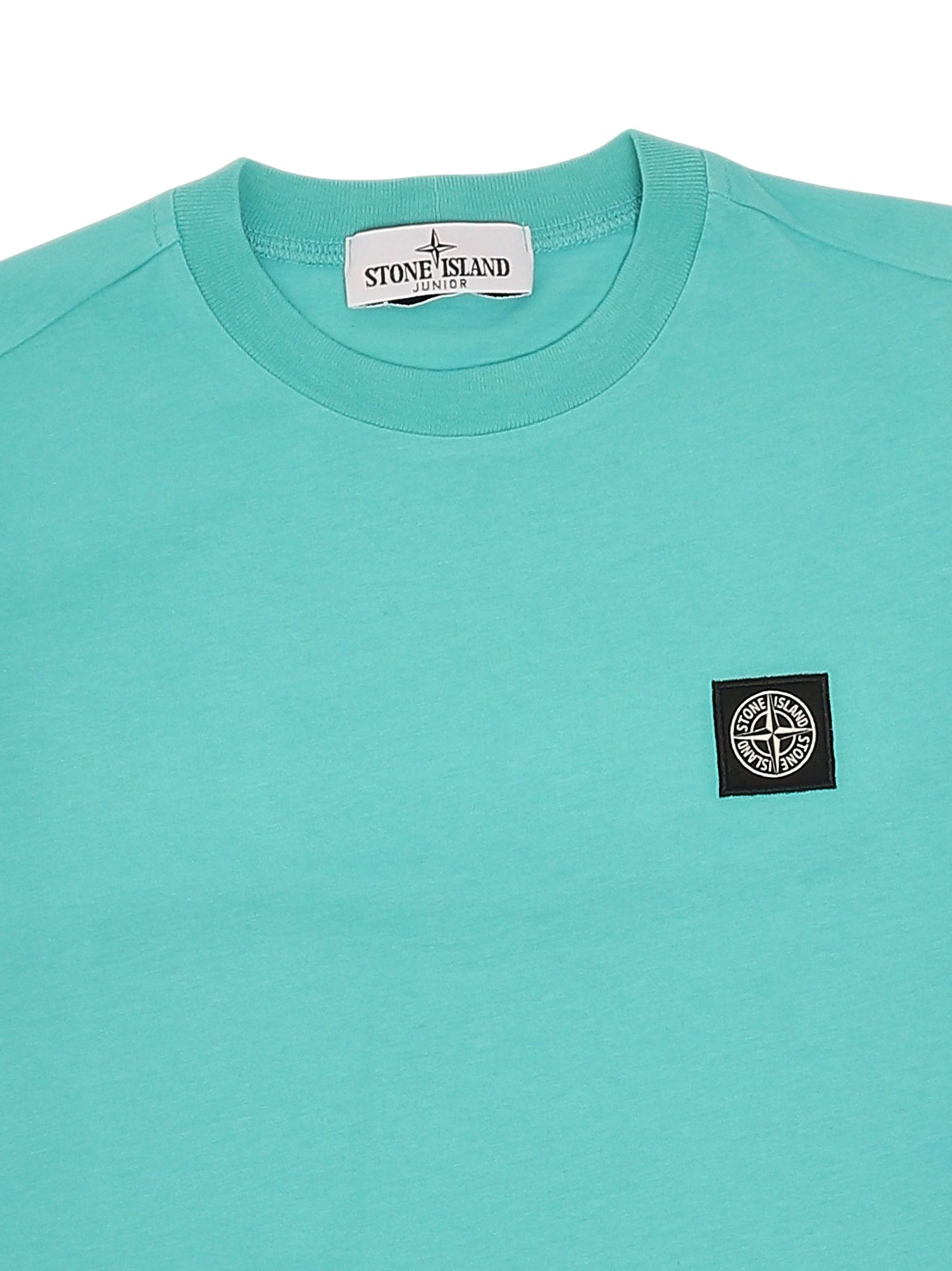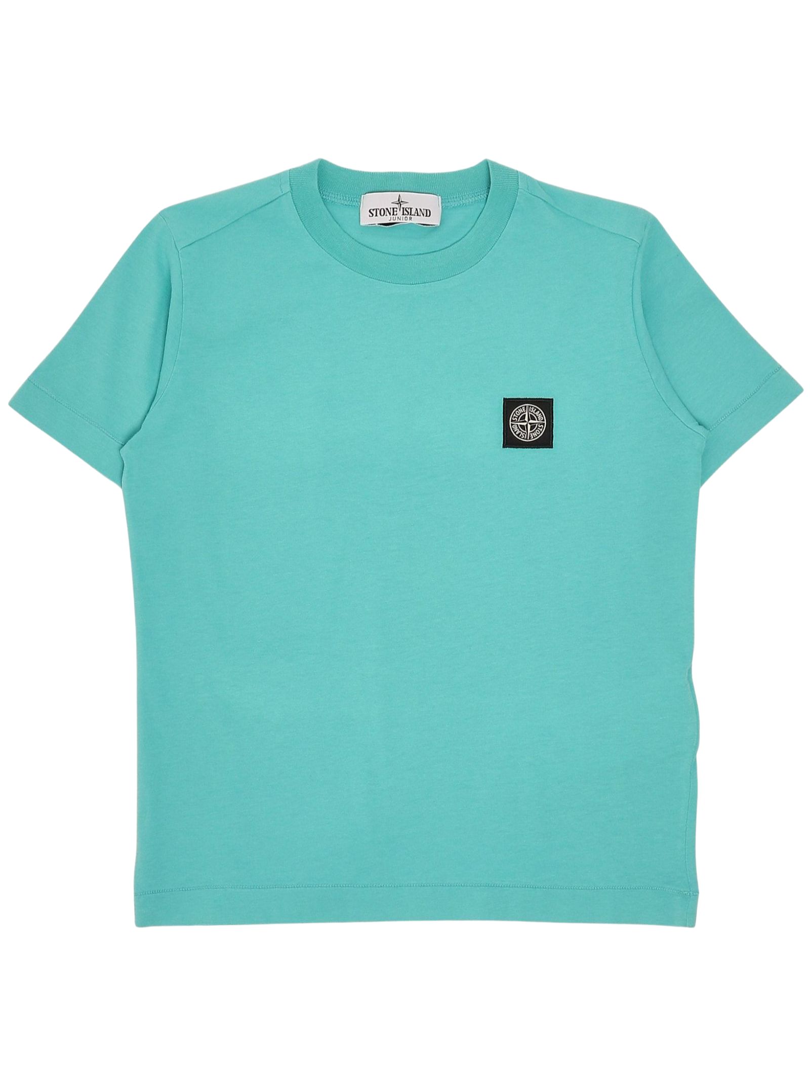 STONE ISLAND Junior emerald green T-shirt, crew neck, short sleeves, contrasting logo patch on the chest, regular fit. Composition: 100% cotton.