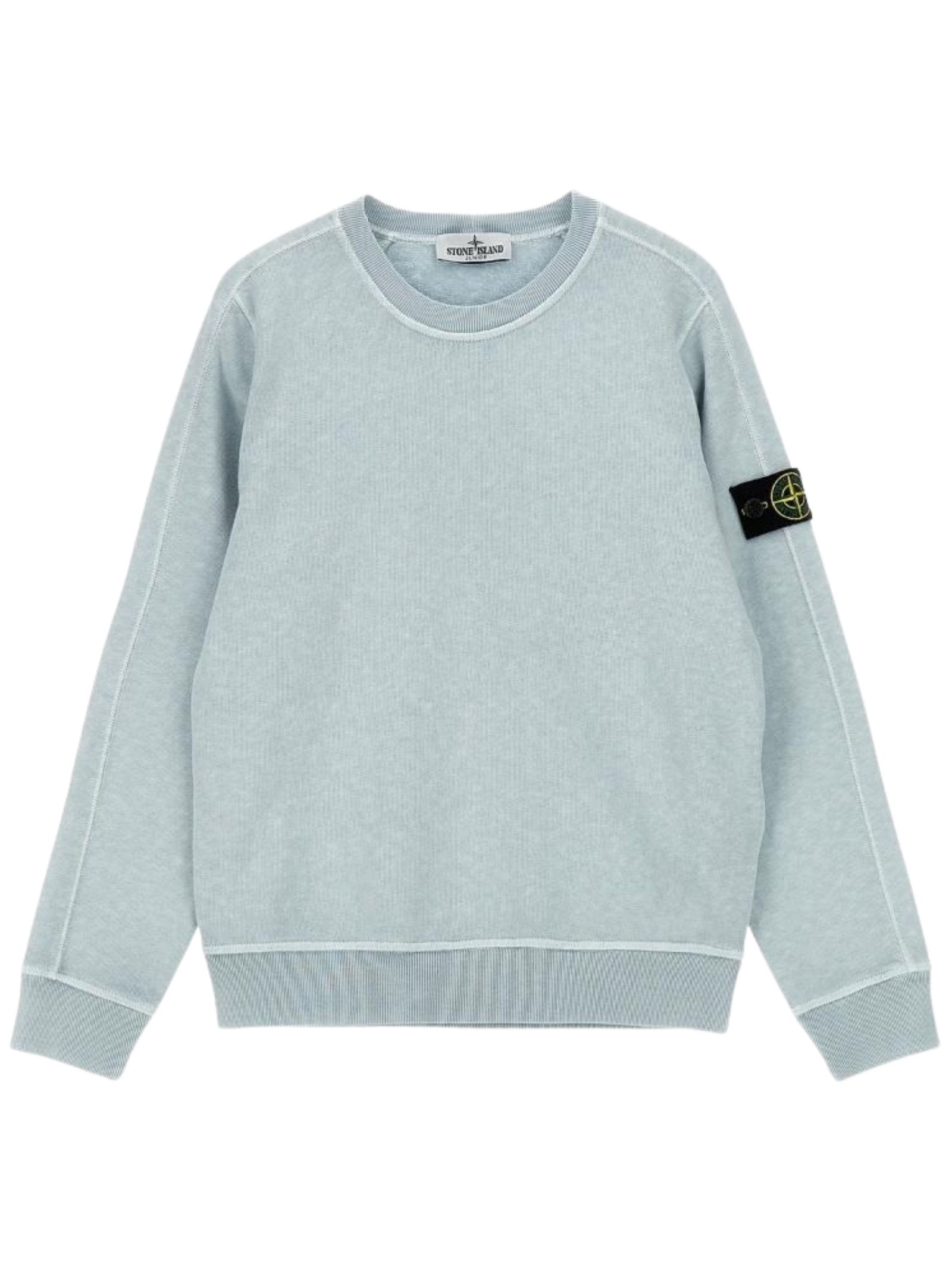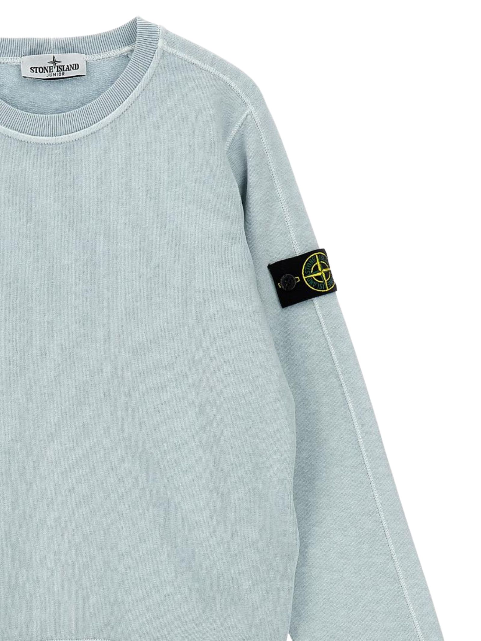 STONE ISLAND Junior sweatshirt in light grey, logo patch on the sleeve, crew neck, long sleeves, ribbed cuffs, regular fit. Composition: 100% cotton