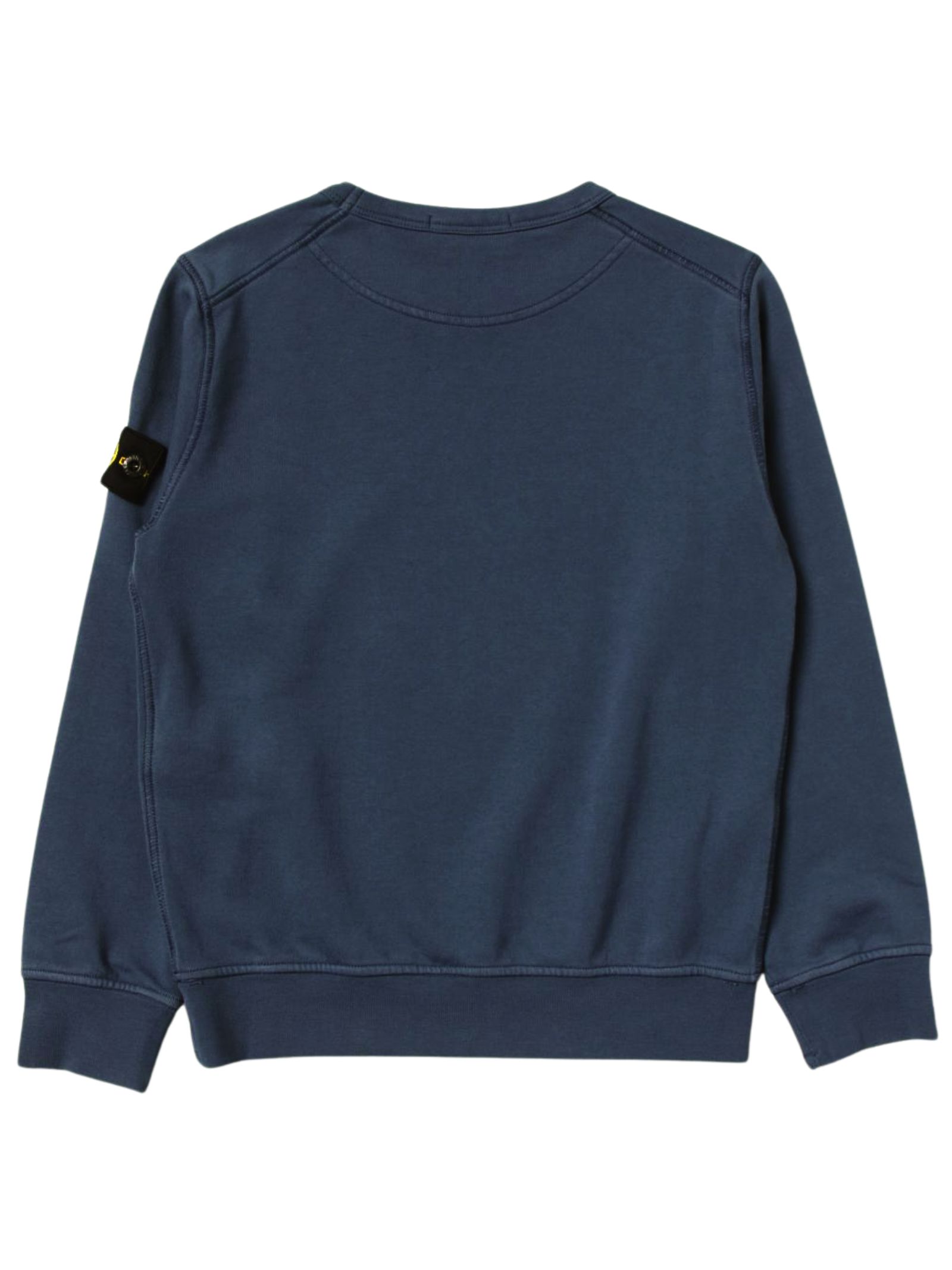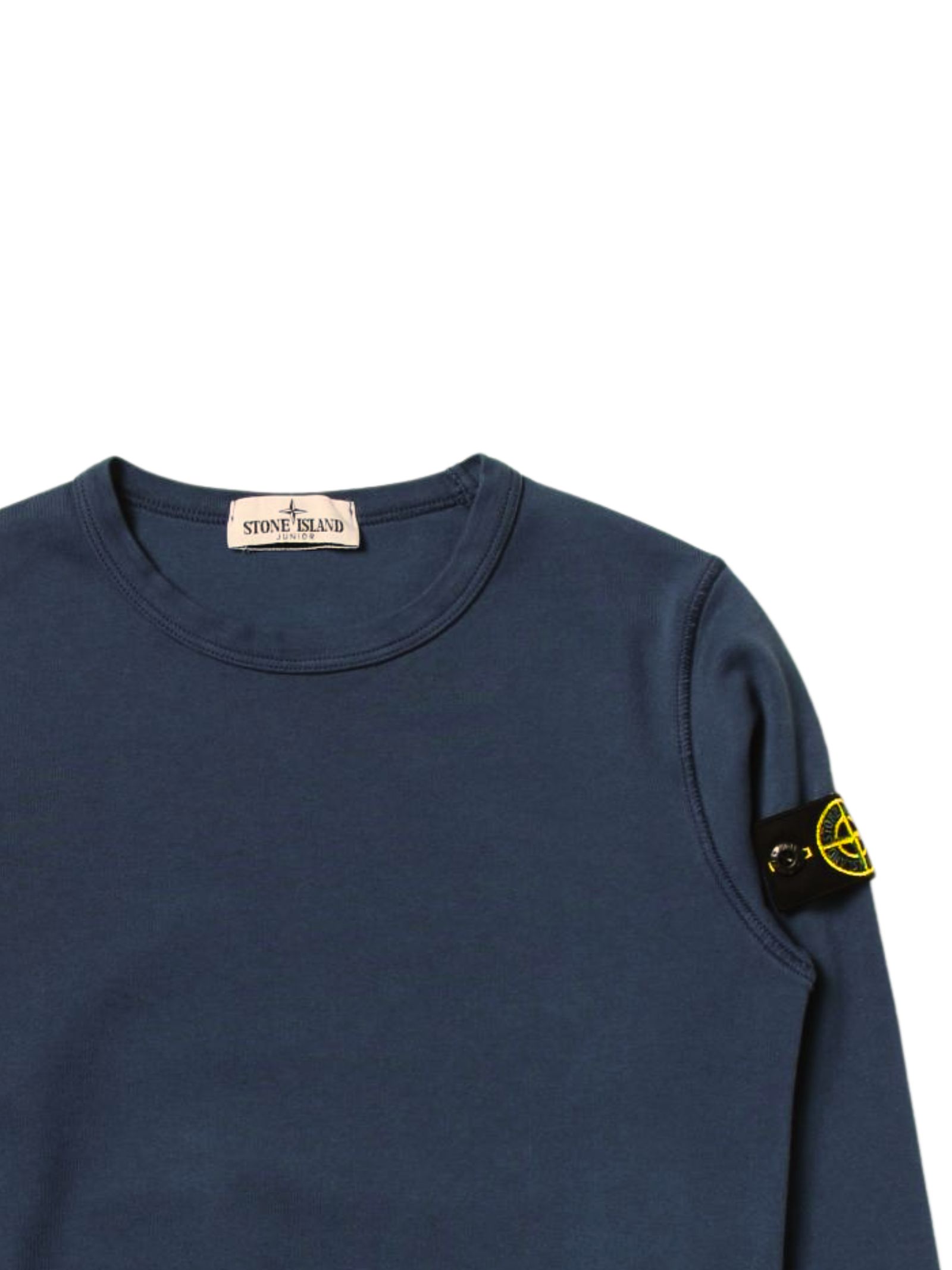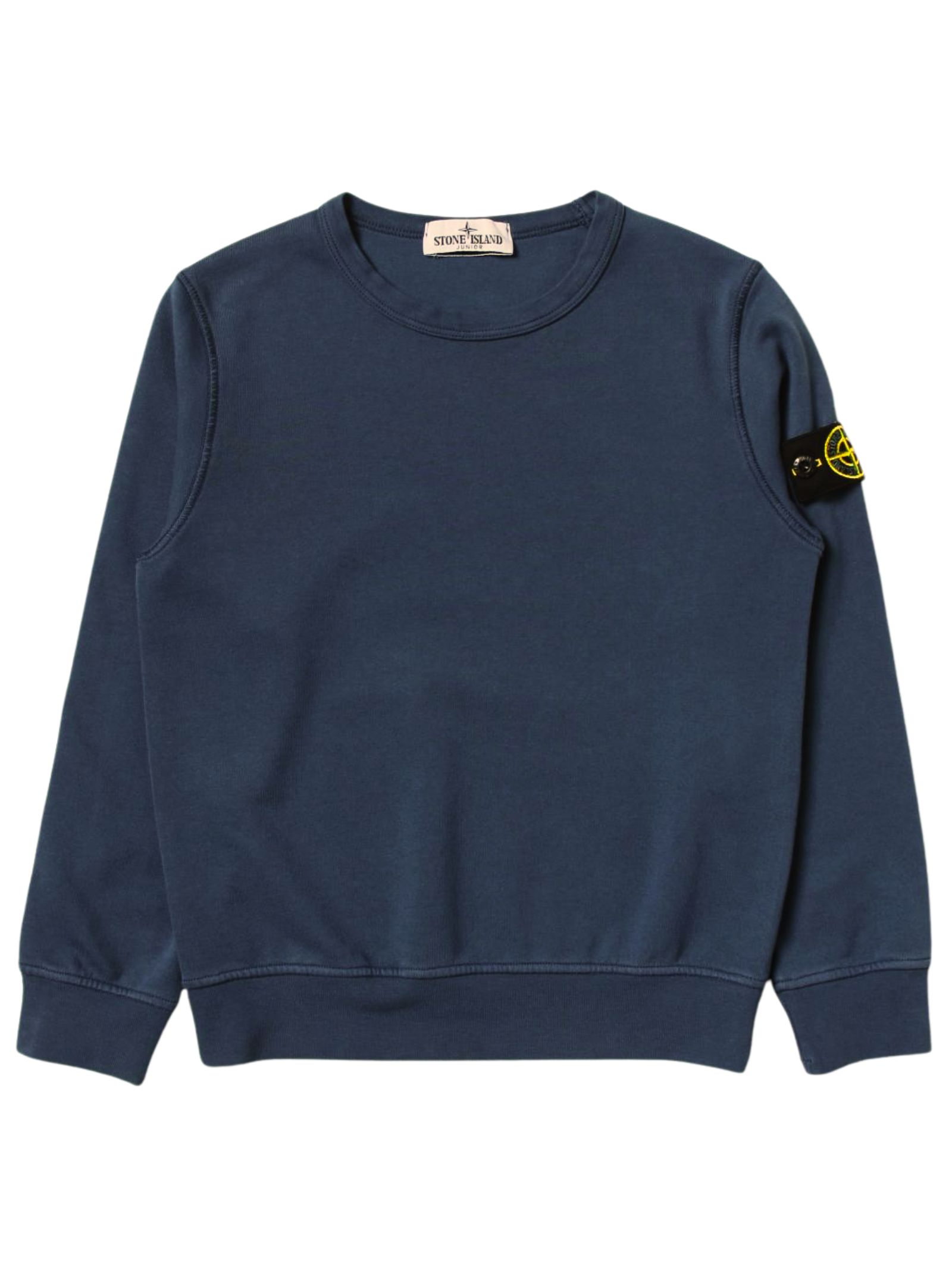 STONE ISLAND Junior sweatshirt in blue, logo patch on the sleeve, crew neck, long sleeves, ribbed cuffs, regular fit. Composition: 100% cotton