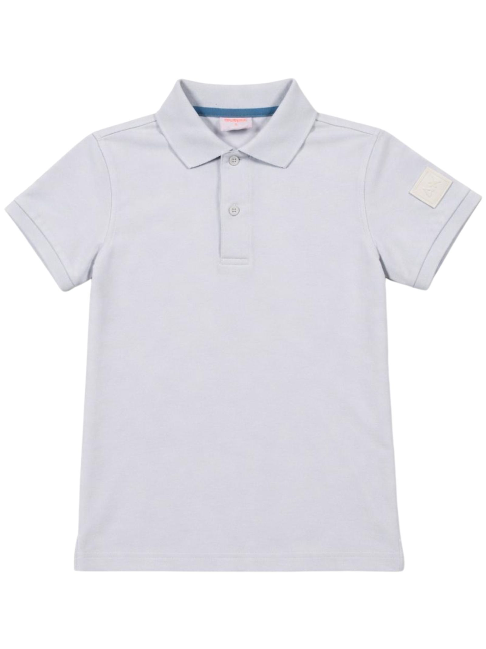 Sun68 Kids white polo shirt, made of pique cotton, short sleeves, featuring a contrasting logo embroidery on the chest, a rubberized logo appliqué on the arm, a straight hem, side vents, and a regular fit. Composition: 95% cotton, 5% elastane.