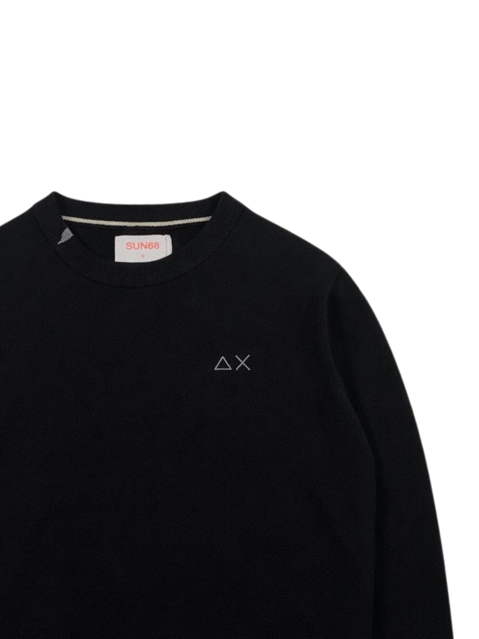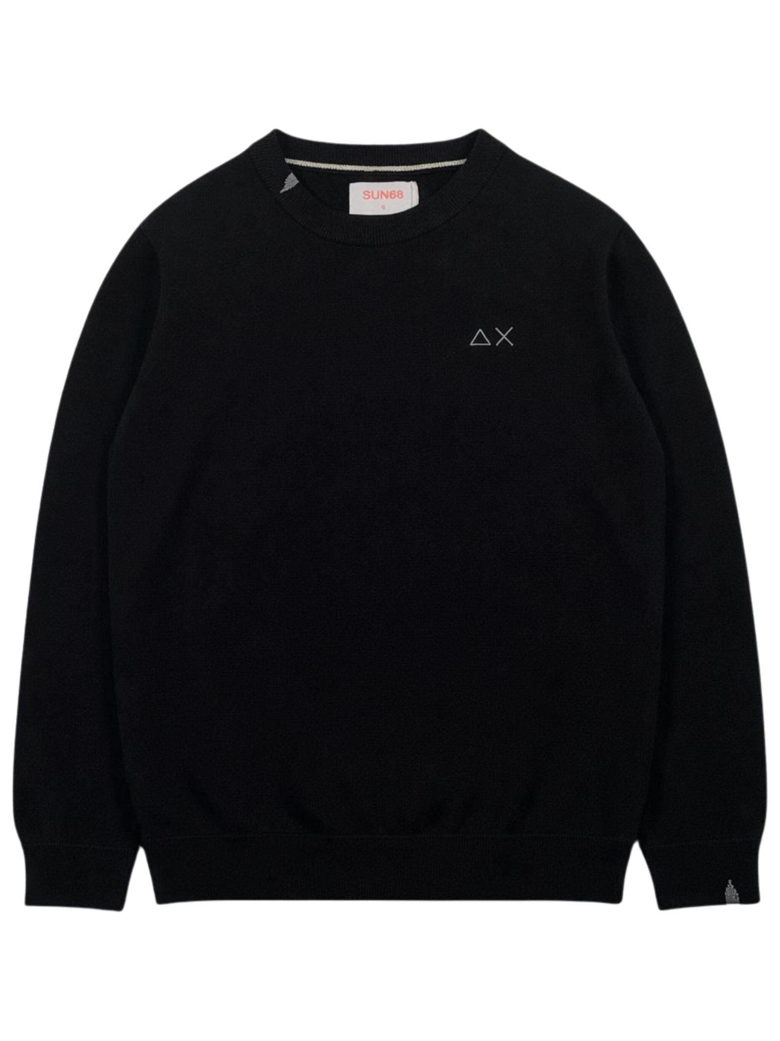 Sun68 Kids black sweater, made of fine knit, crew neck, long sleeves, featuring contrasting logo embroidery on the chest, ribbed cuffs, regular fit. Composition: 100% cotton