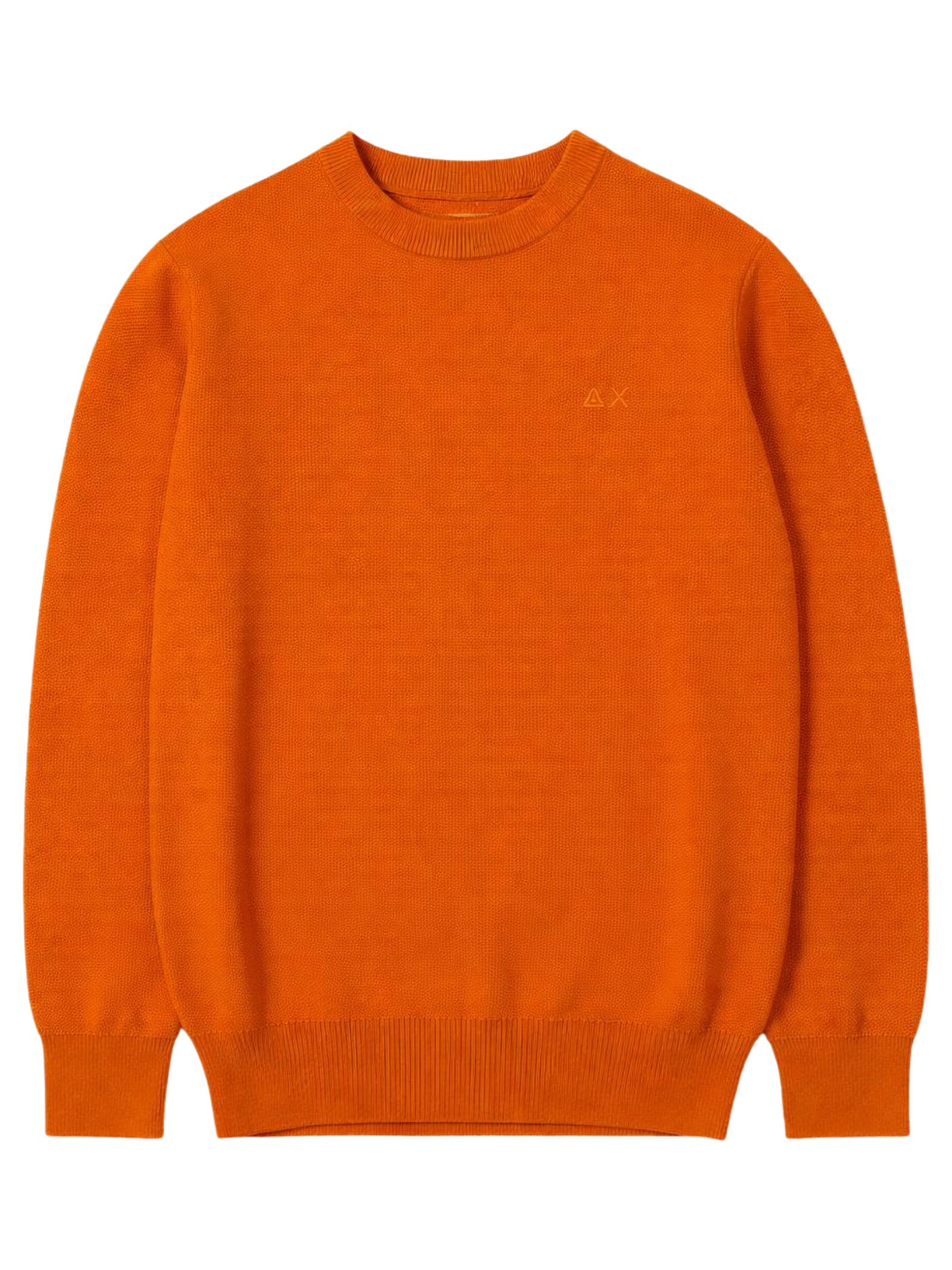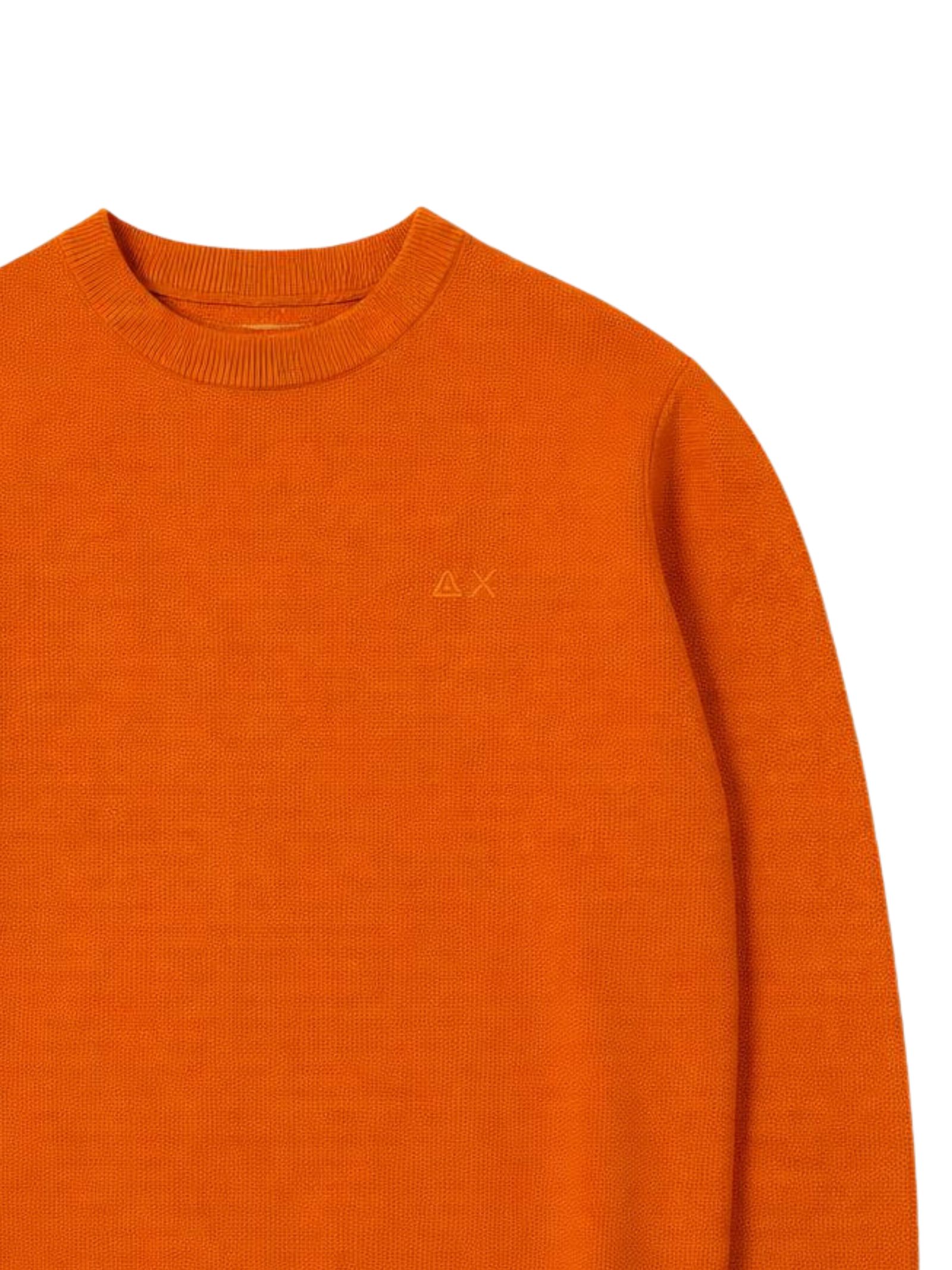 Sun68 Kids rust-colored sweater, made of thin cotton knit with a honeycomb effect, crew neck, long sleeves, featuring a contrasting logo embroidery on the chest, ribbed cuffs, regular fit. Composition: 100% cotton