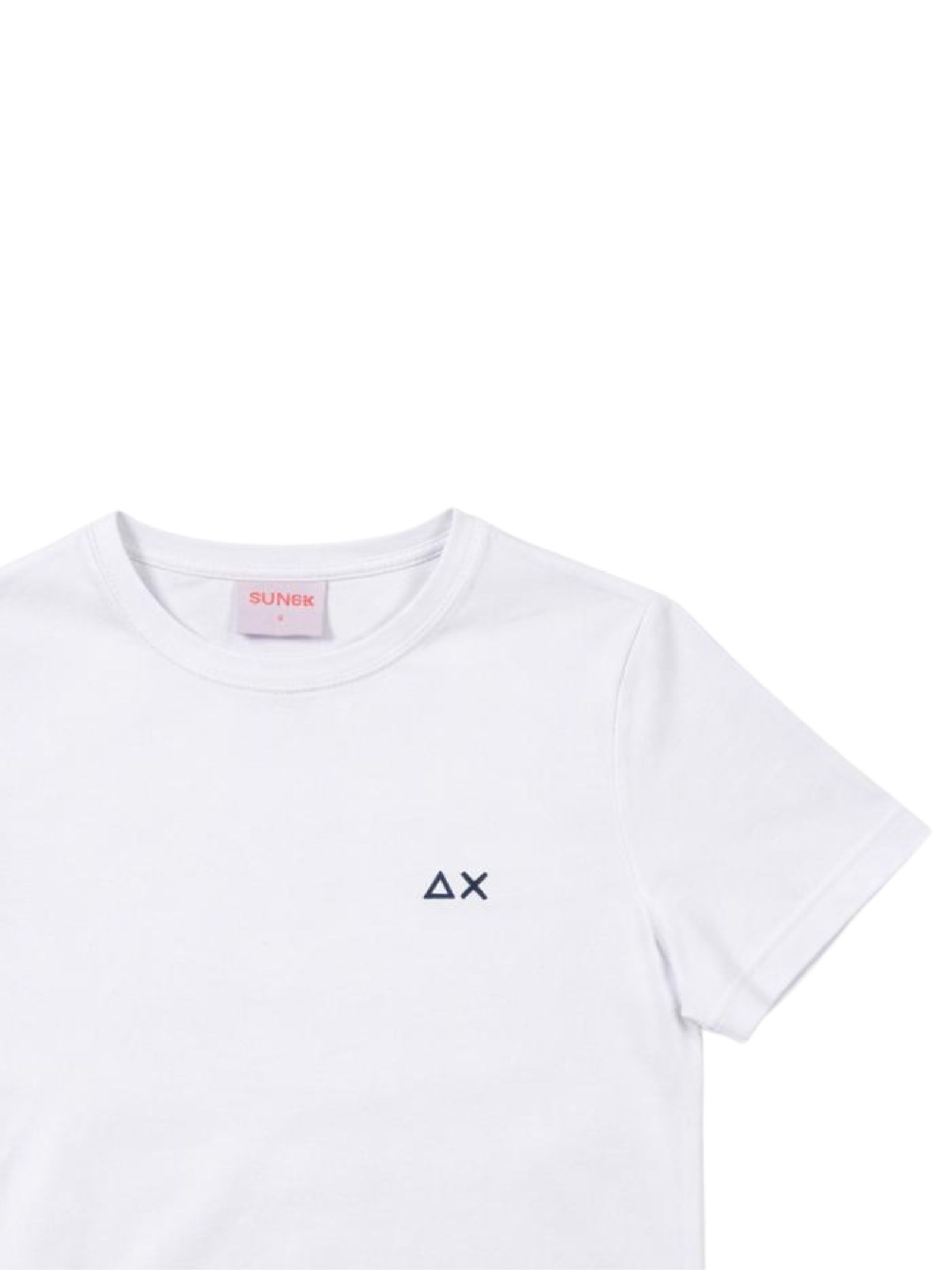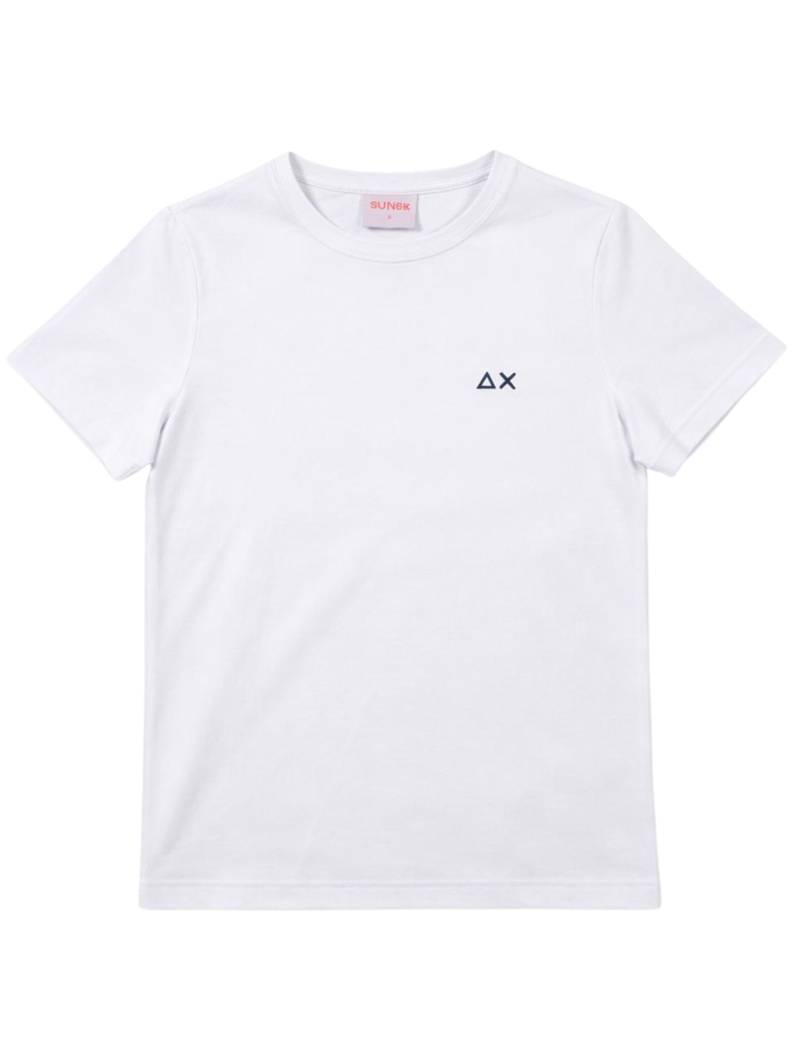 Sun68 Kids white T-shirt, crew neck, short sleeves, contrasting logo embroidery on the chest, straight hem, regular fit. Composition: 100% cotton.