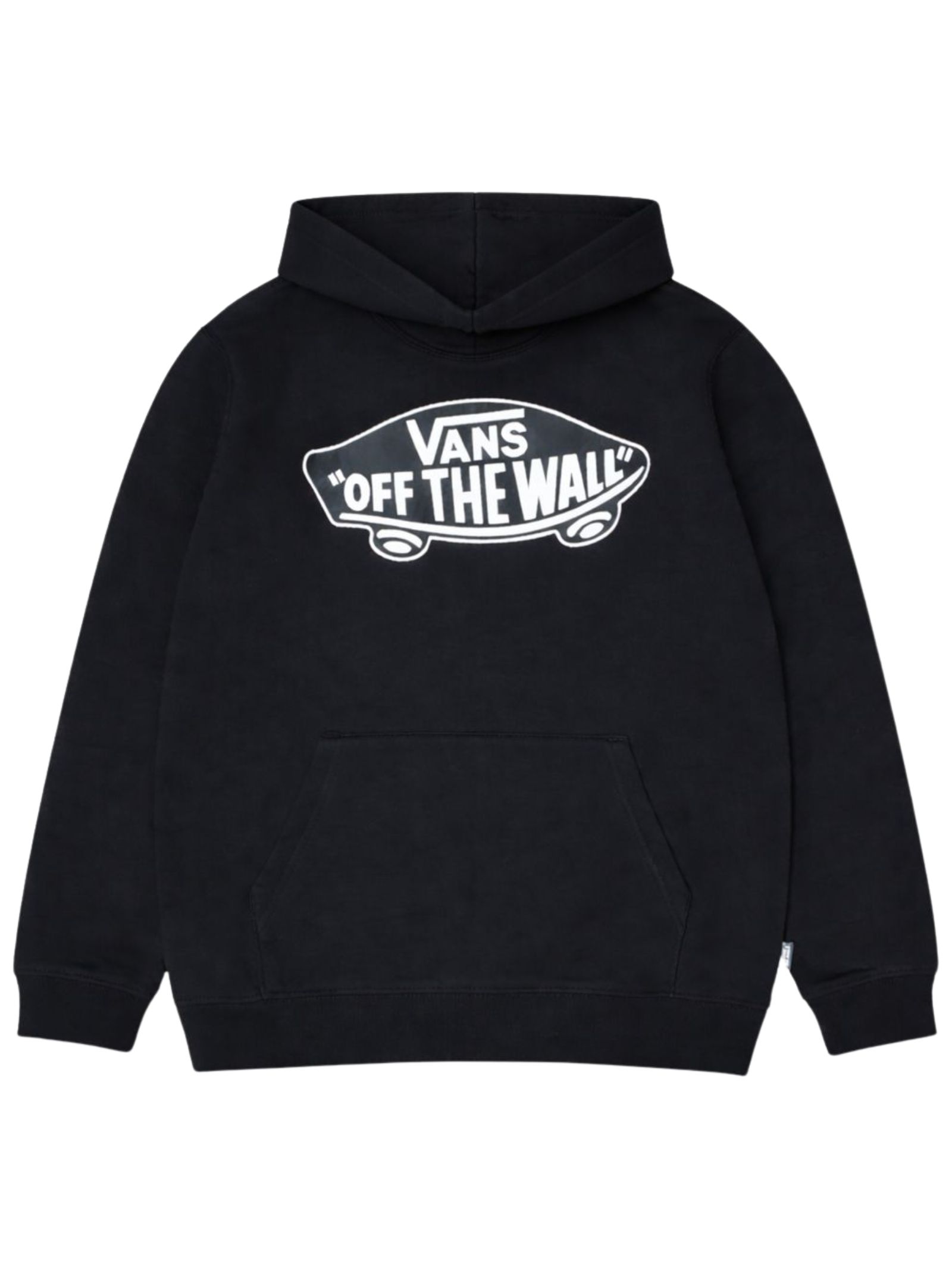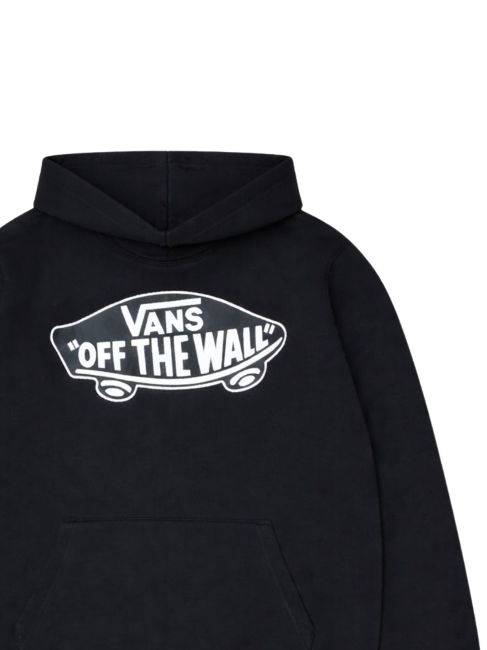 Vans Kids black hoodie, long sleeves, contrasting white logo print, two side pockets, regular fit. Composition: 70% warm cotton 30% polyester.