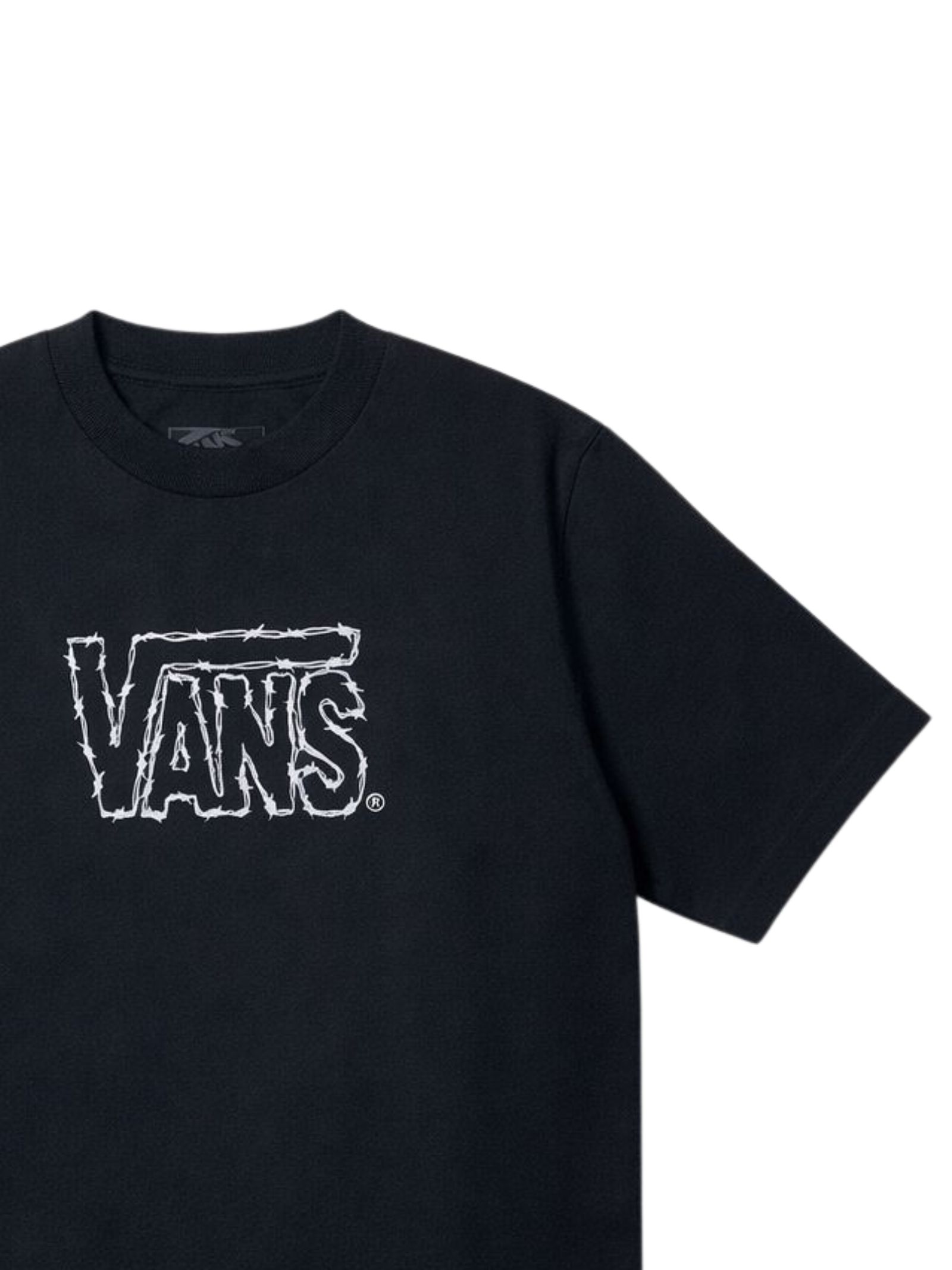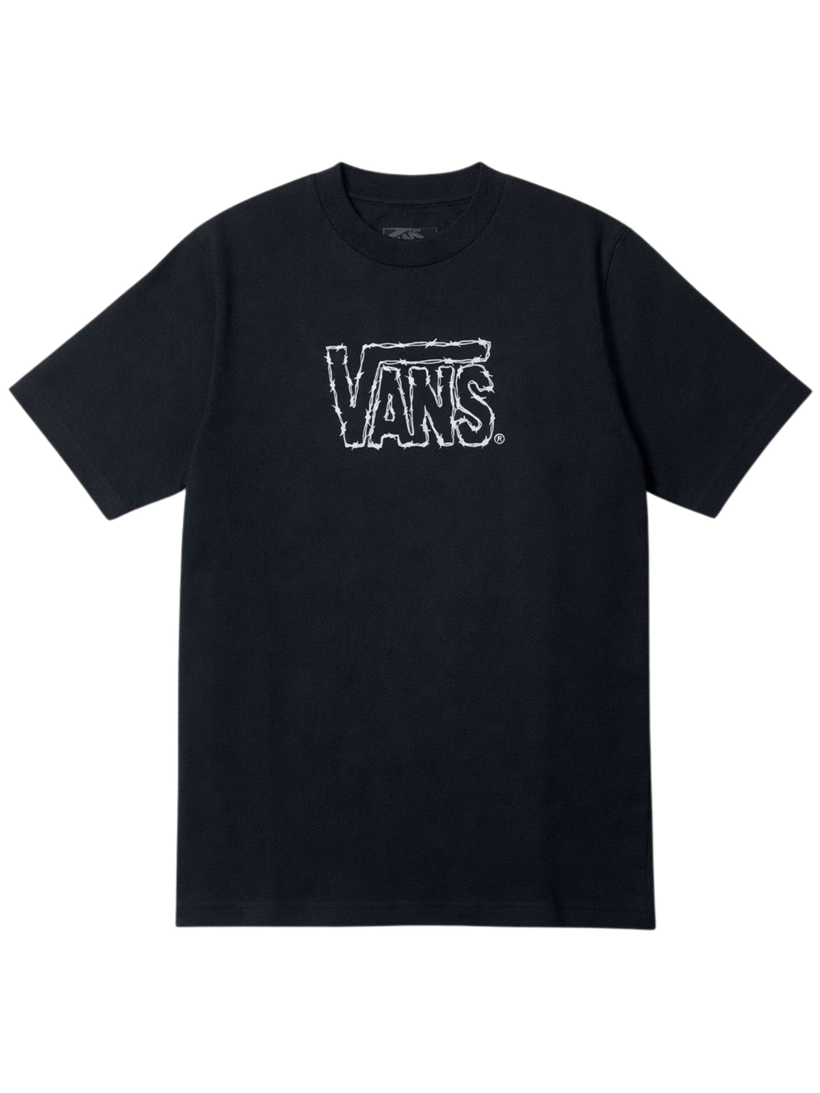 Vans Kids black T-shirt, crew neck, short sleeves, contrasting white central logo print, regular fit. Composition: 100% cotton.