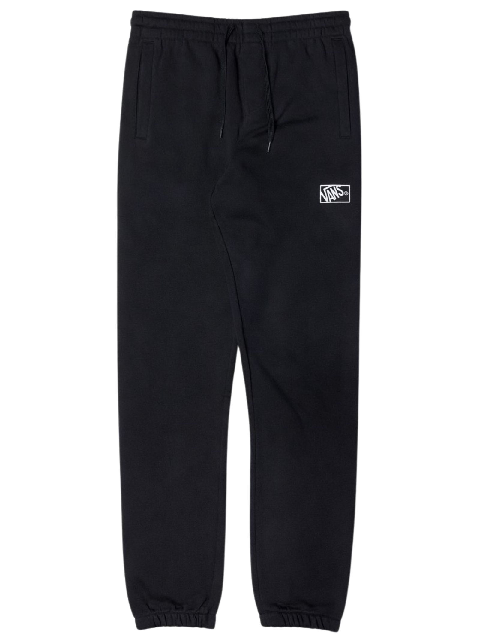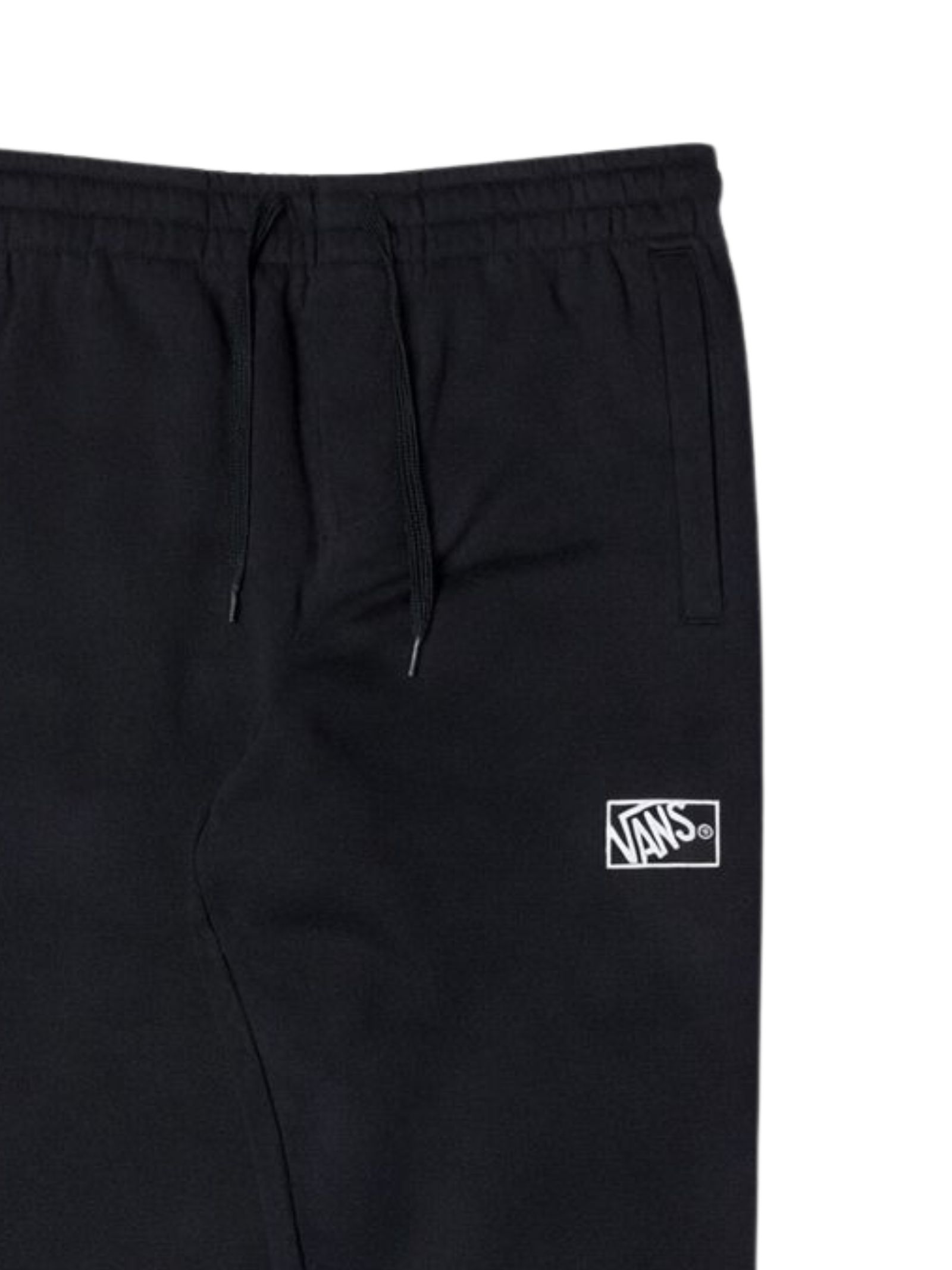 Vans Kids black trousers with an elastic waistband and drawstring, two side pockets, one back pocket, contrasting logo embroidery, elastic ankles, regular fit. Composition: 70% Cotton 30% Polyester