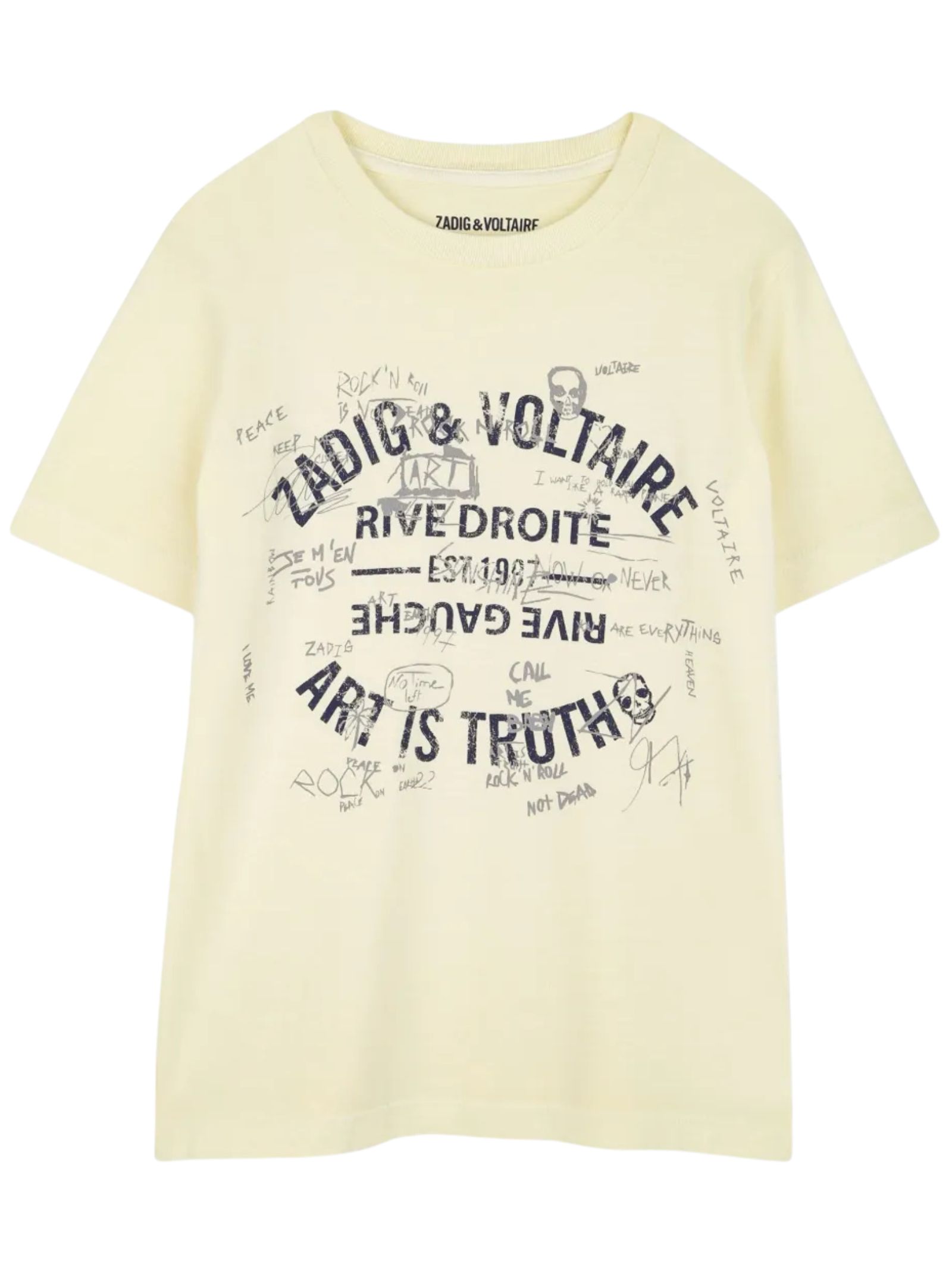 Zadig & Voltaire Kids yellow T-shirt, crew neck, short sleeves, contrasting central logo print, regular fit. Composition: 100% cotton.