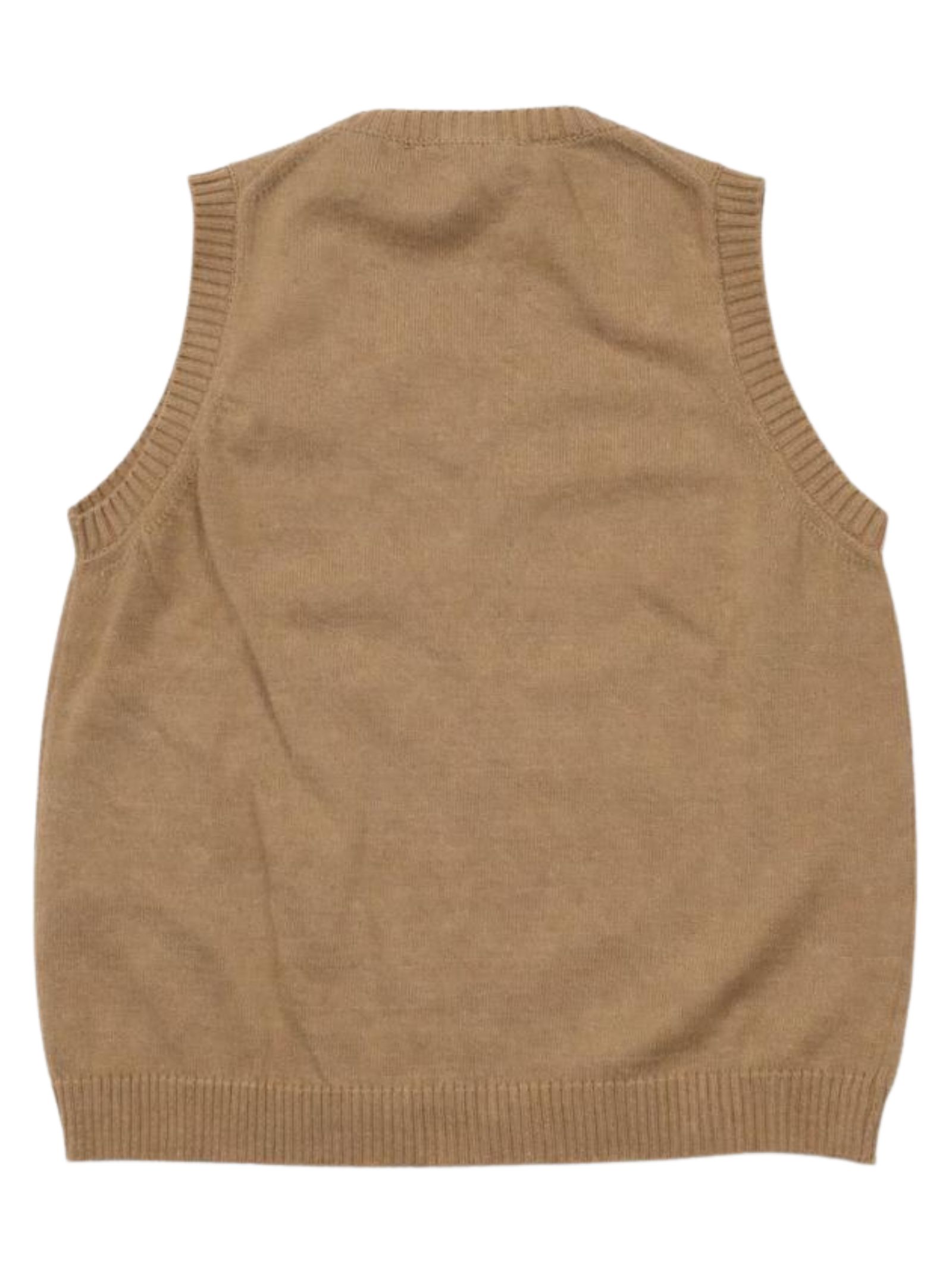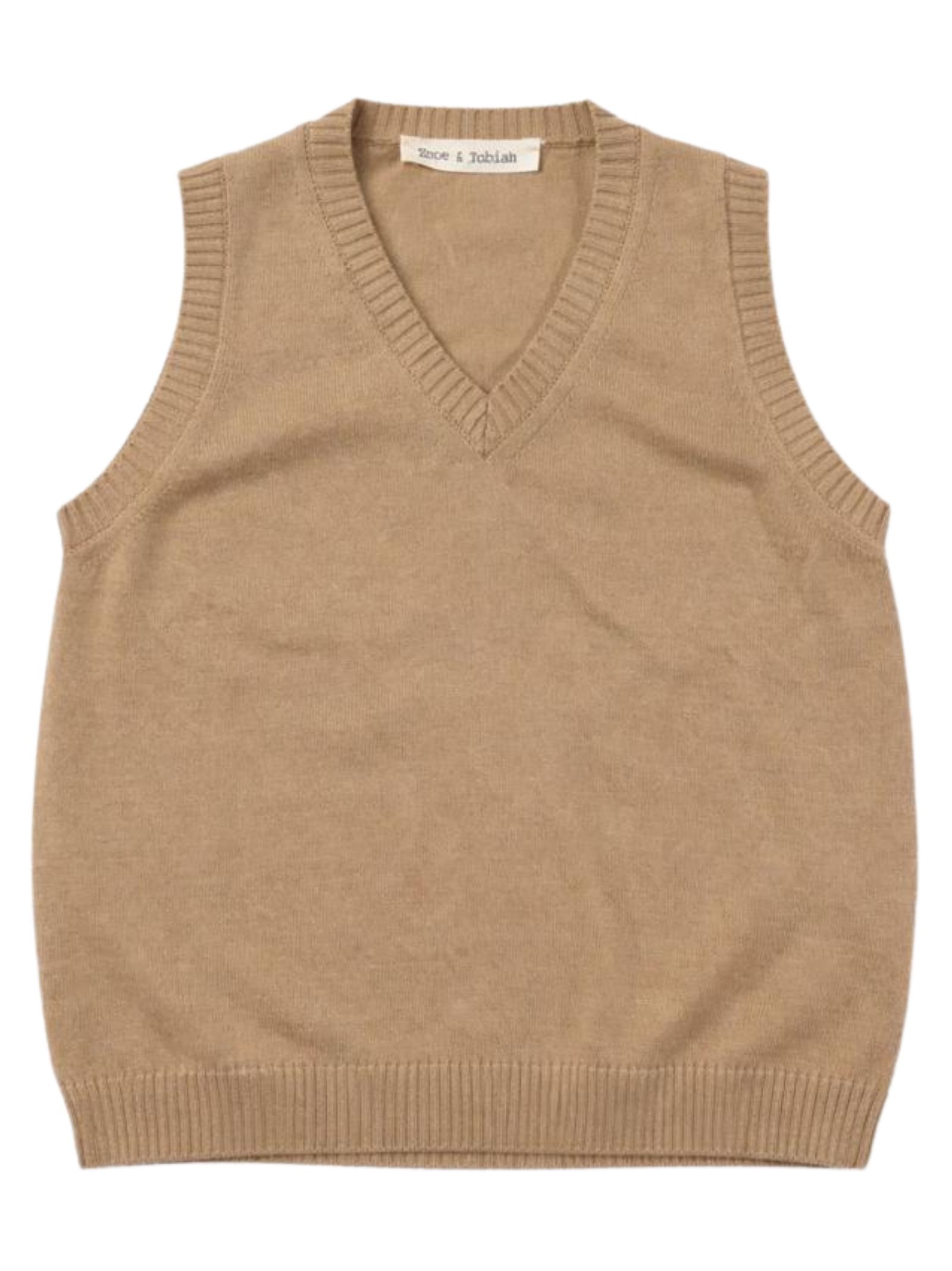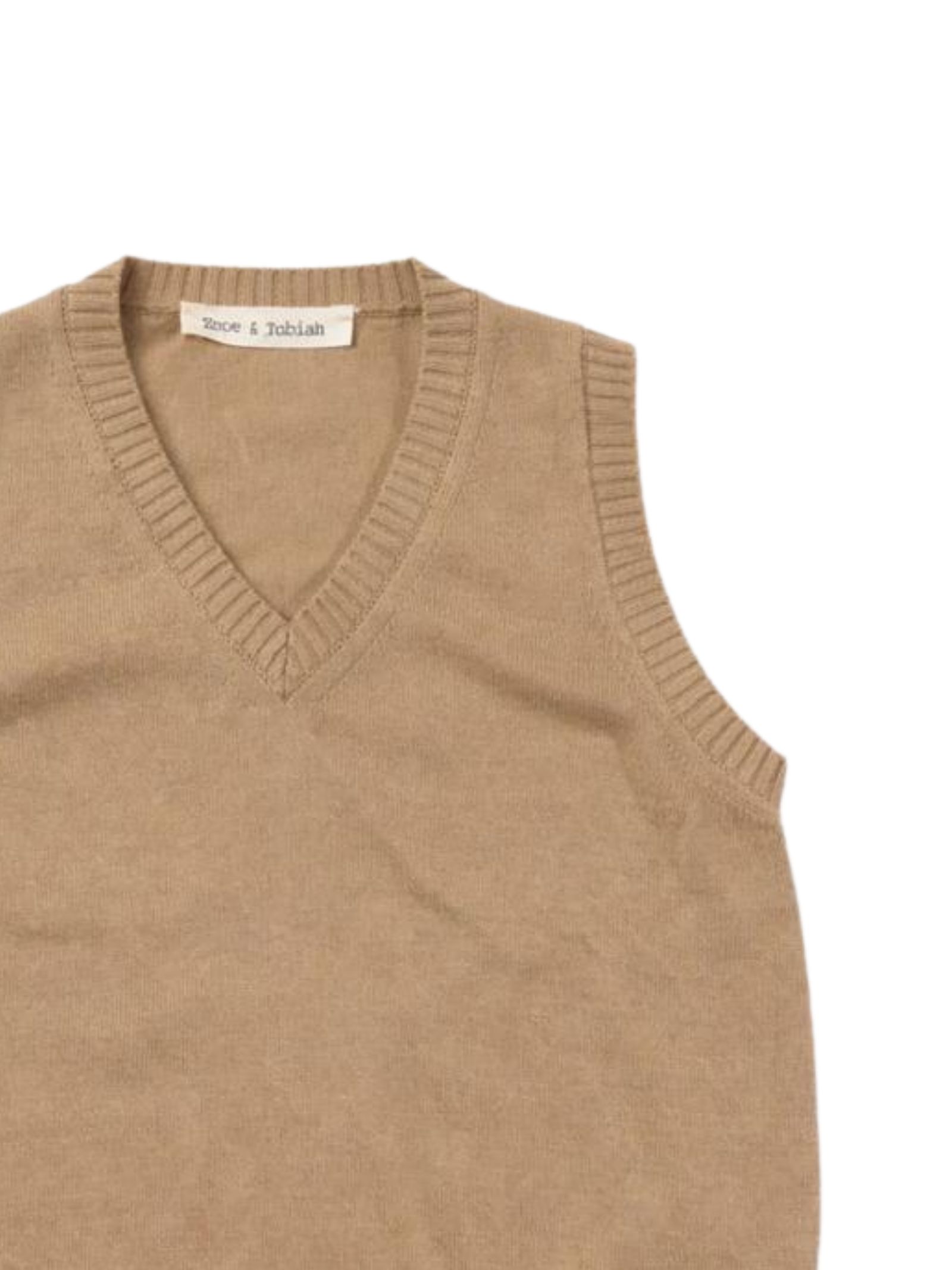Zhoe & Tobiah Kids beige sweater, sleeveless design, V-neck, fine knit, ribbed cuffs. Composition: 100% cotton. Made in Italy.