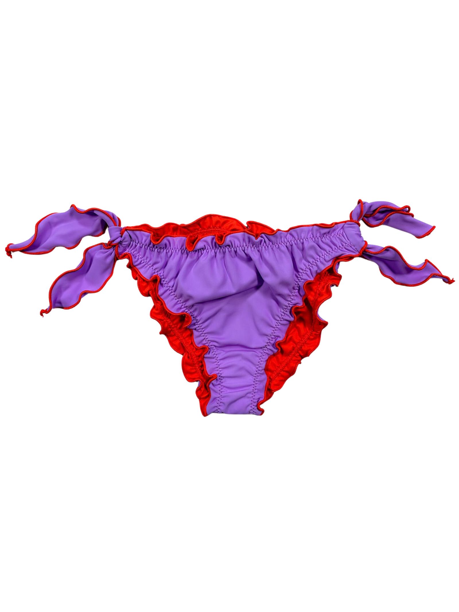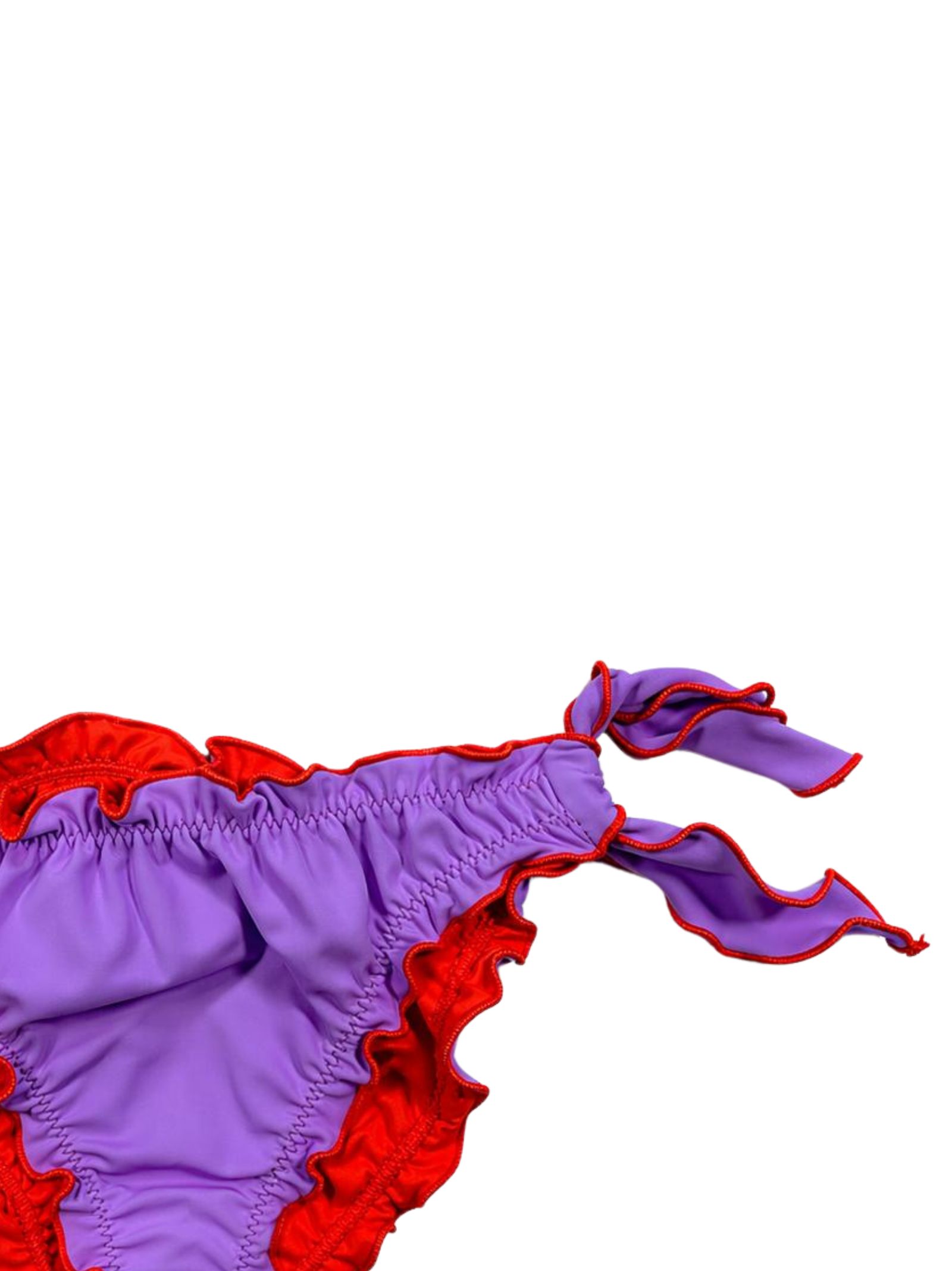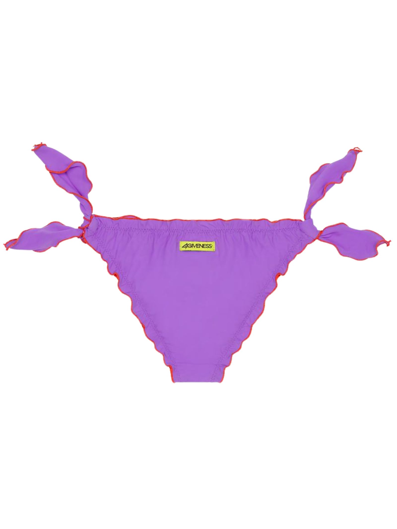 4GIVENESS Kids costume da bagno modello slip di colore vila/arancio fluo, design con fiocchetti laterali, dettaglio bordi arricciati, patch con logo sul retro. Composizione: 80% poliammide 20% elastan
