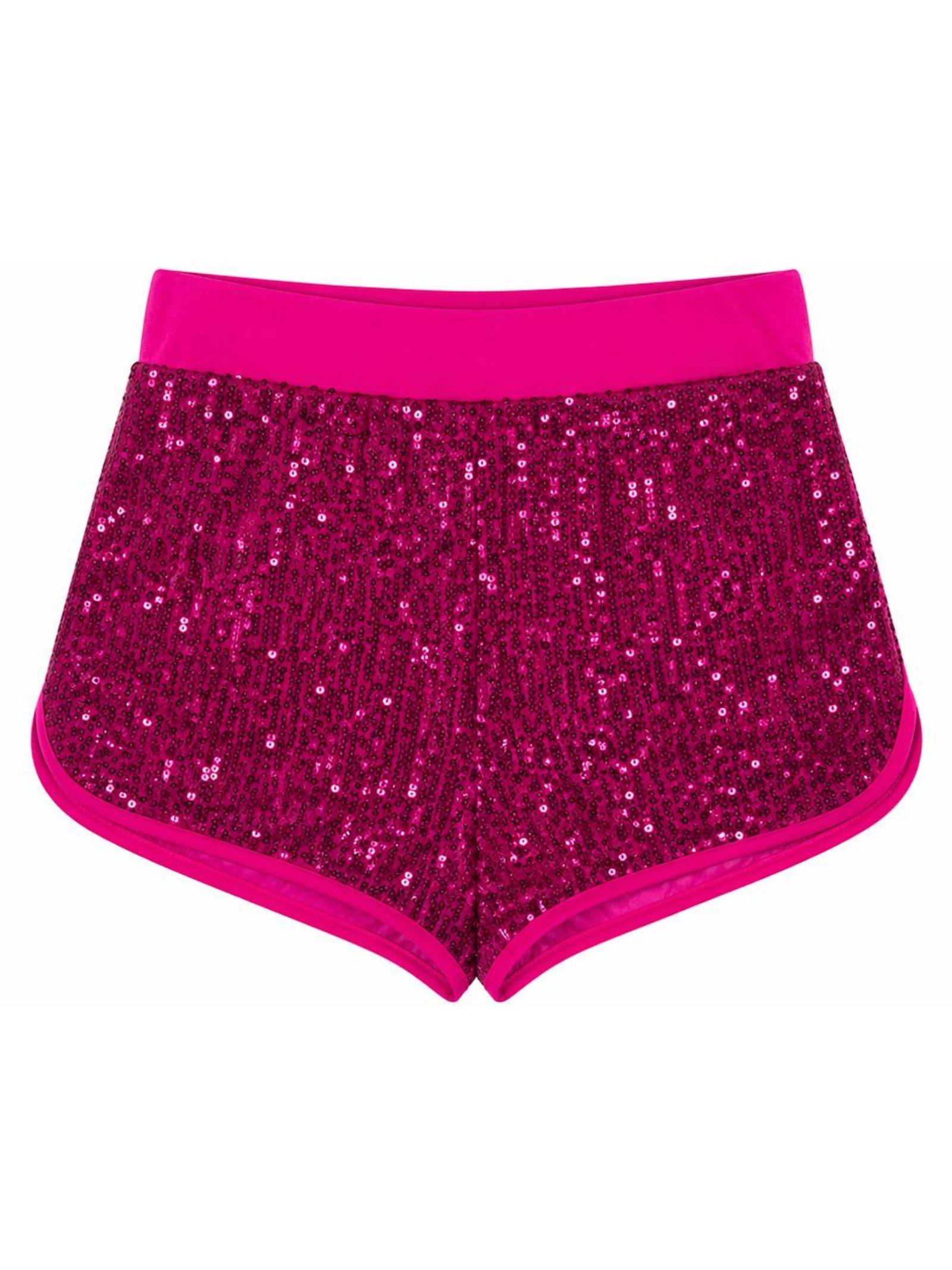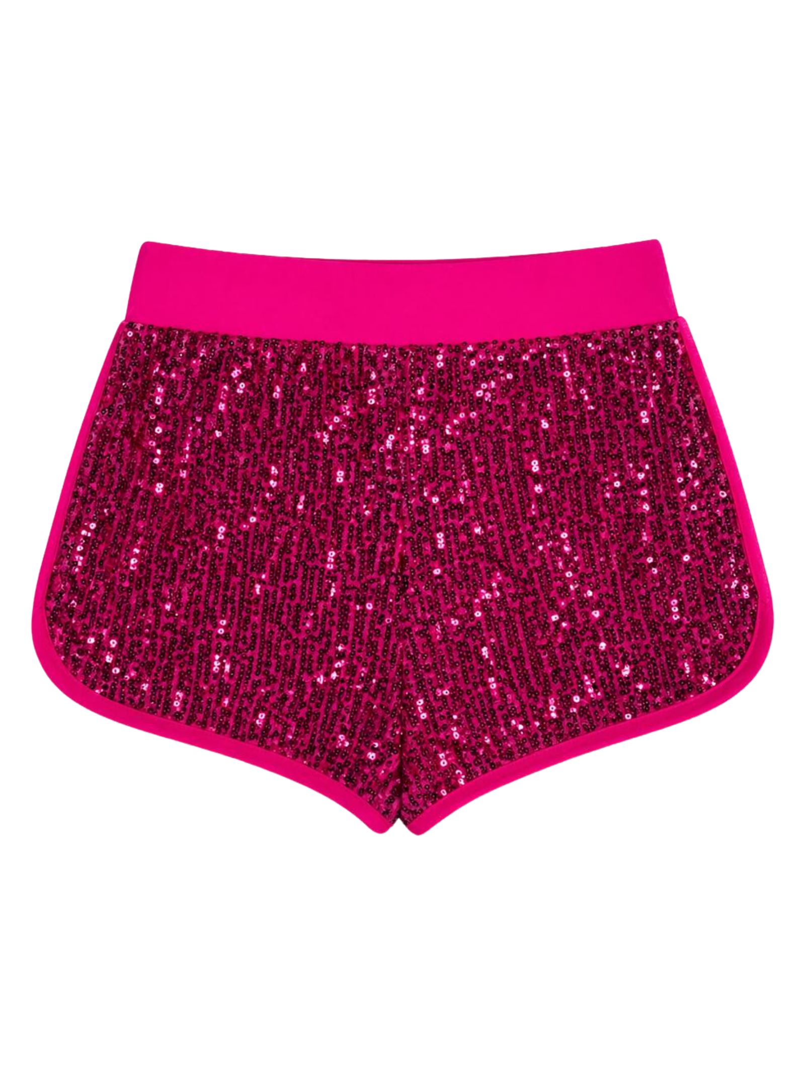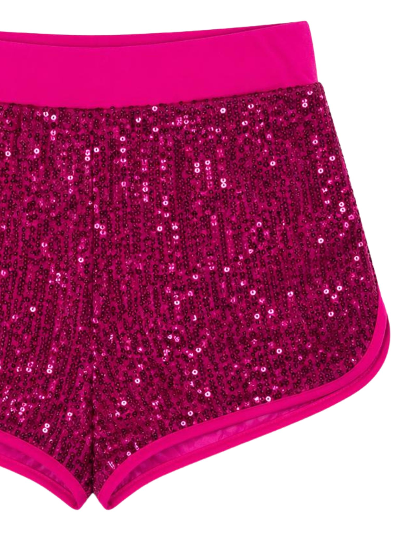 4GIVENESS Kids shorts copricostume di colore fucsia, ricoperto con paillettes su tutta la superficie, elastico in vita, spacchetti laterali, foderato, design aderente. Composizione: 97% poliestere 3% elastan