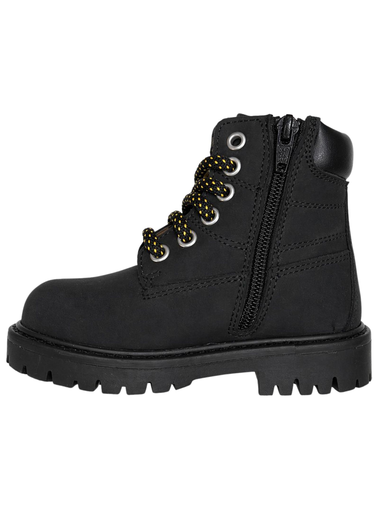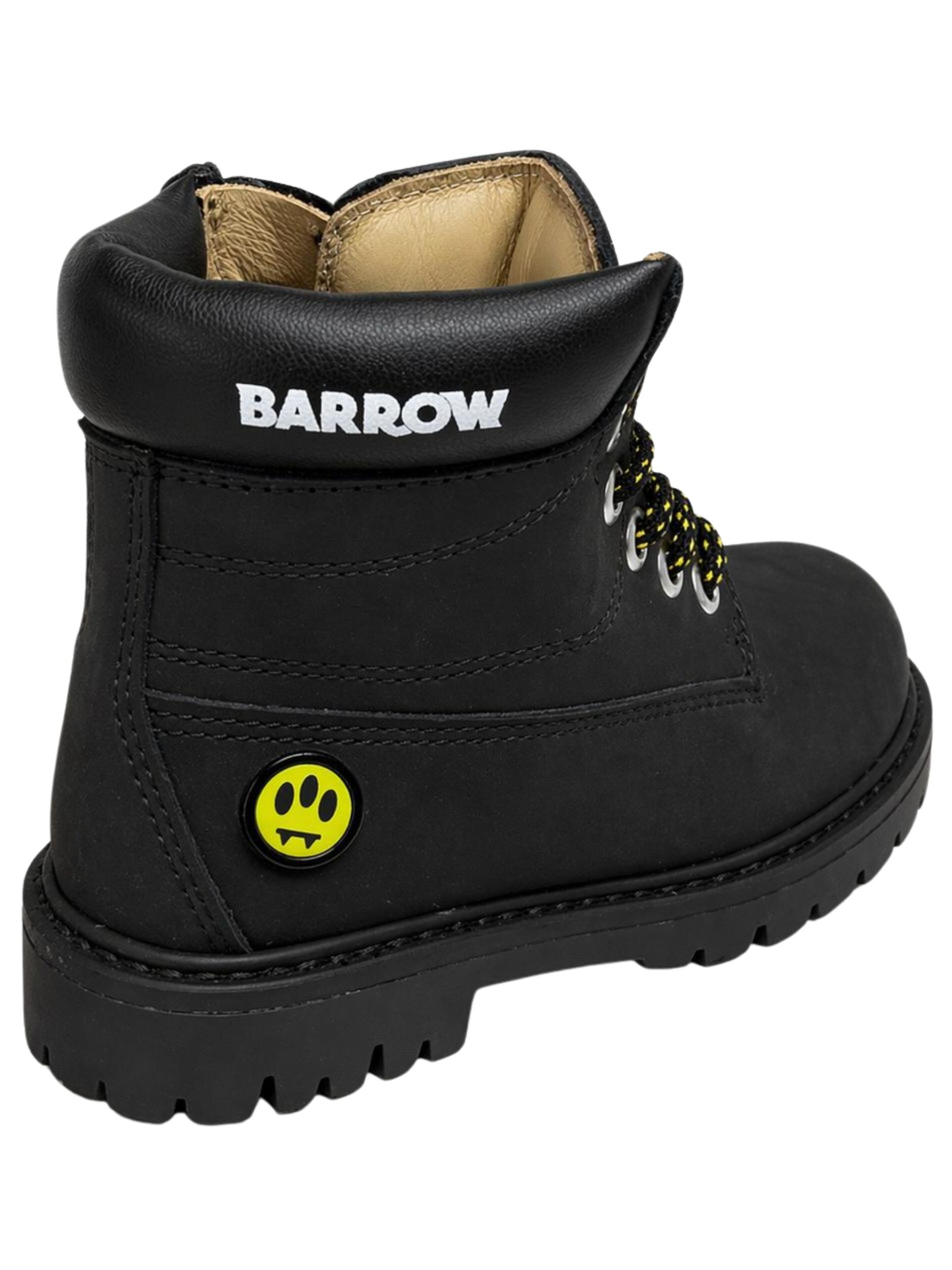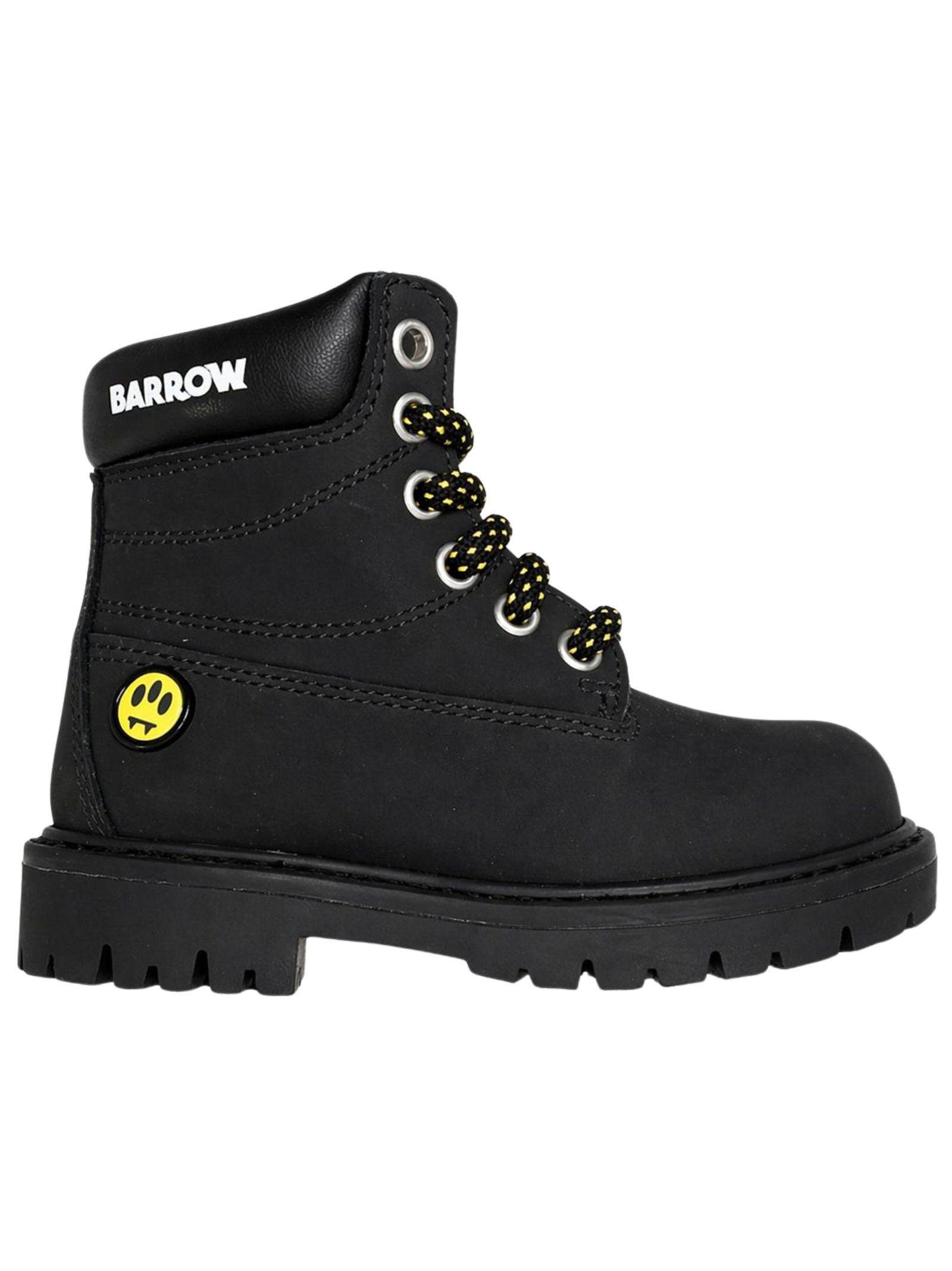 Barrow Kids scarpe di colore nero, realizzate in pelle scamosciata, occhielli metallici, chiusura frontale con lacci a contrasto, chiusura con zip laterale, stampa logo, applicazione smile, suola in gomma. Made in Italy