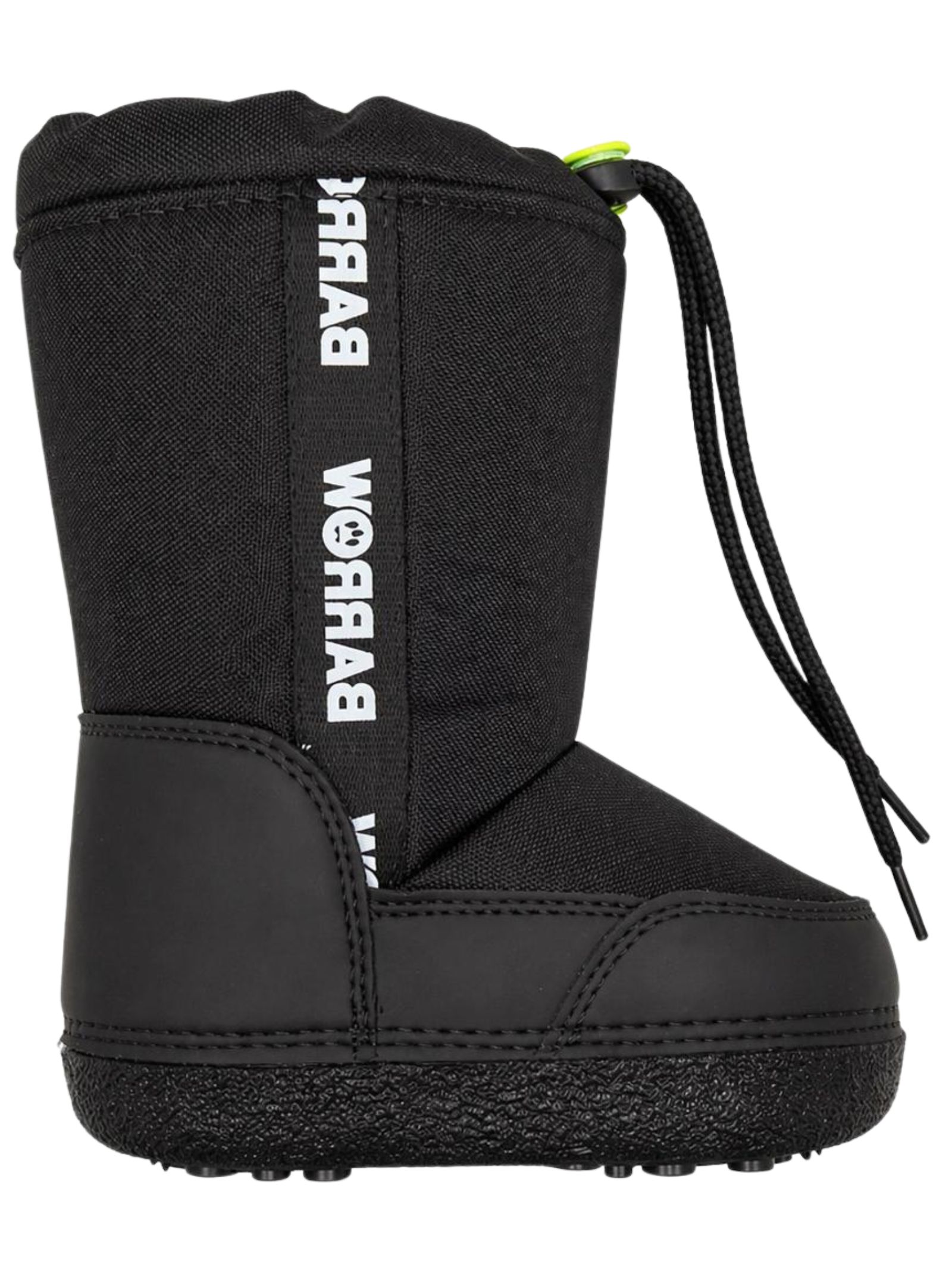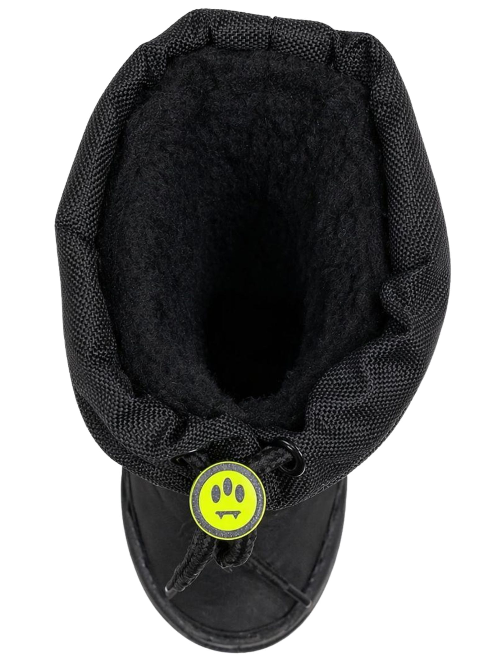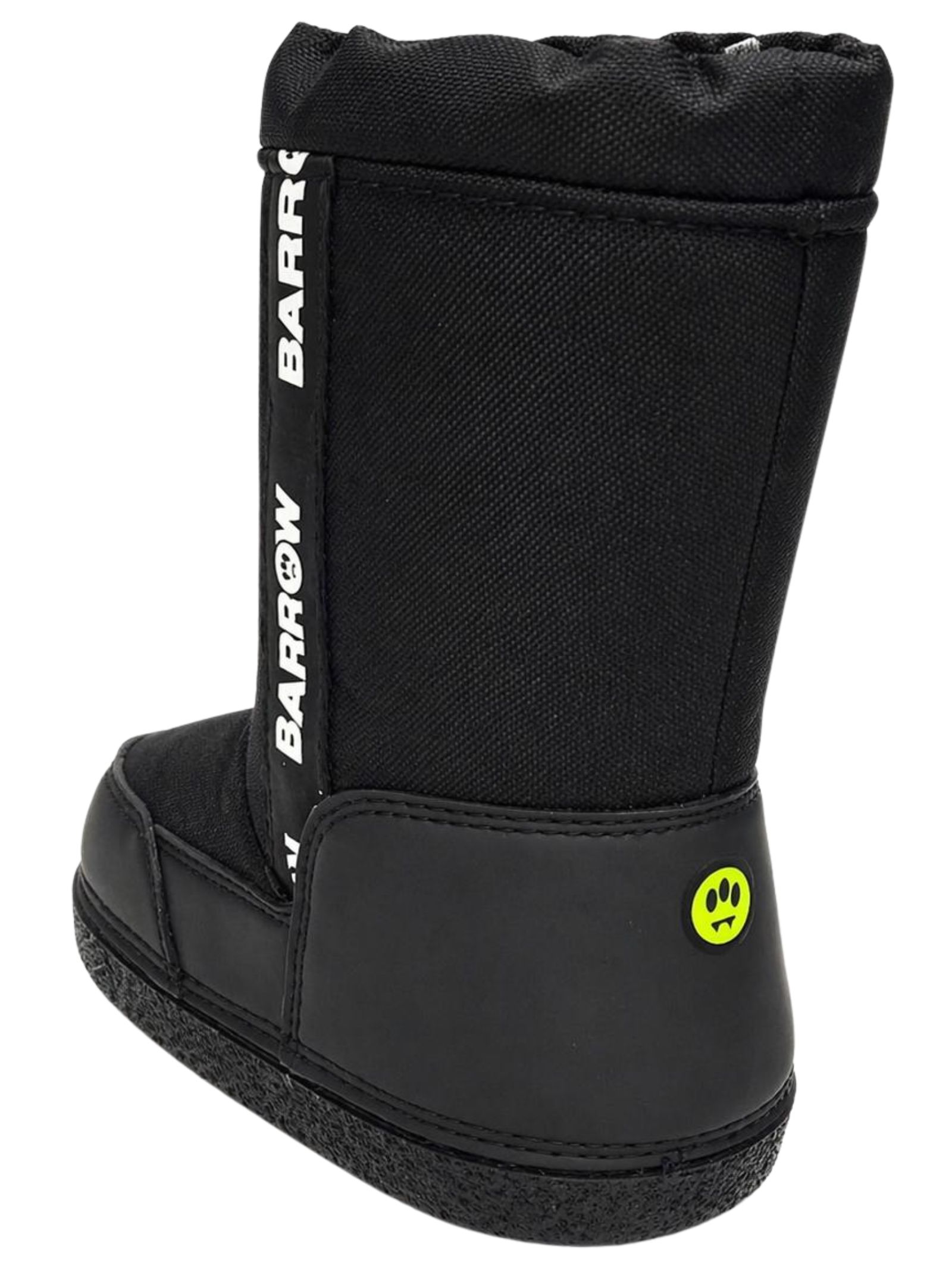 Barrow Kids scarponi da neve di colore nero, design stivale con punta tonda, banda con logo laterale a contrasto, chiusura con coulisse, applicazione smile, interno effetto pelliccia, suola di gomma. Tomaia: 85% Poliestere, 15% Poliuretano. Made in Italy