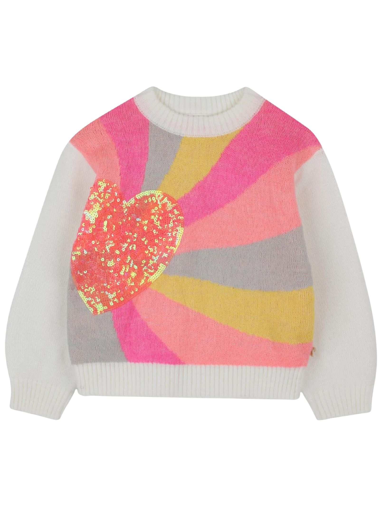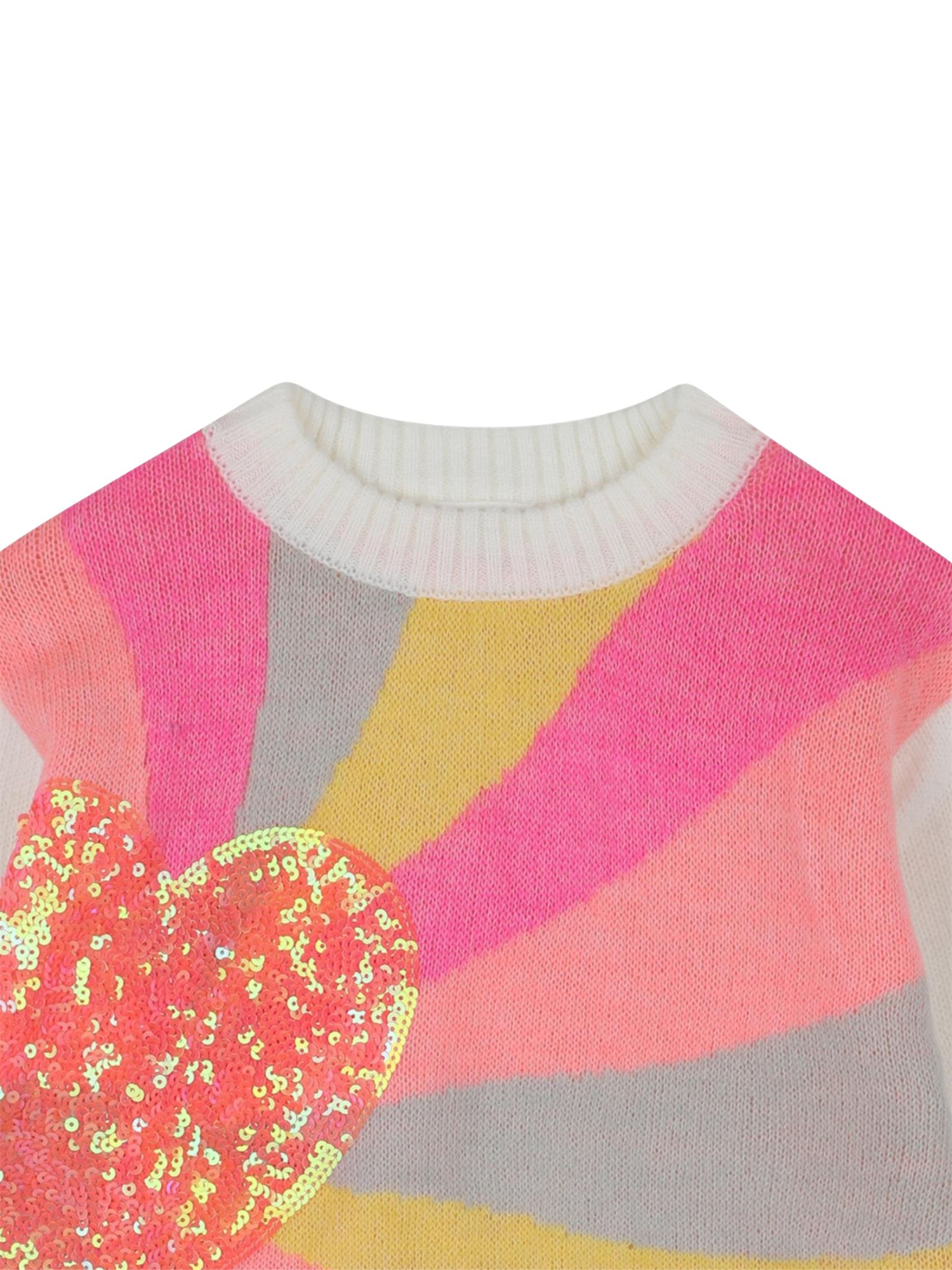 Billieblush Kids maglione in fantasia multicolor lavorato a maglia, modello girocollo, illustrazione cuore impreziosita da paillettes, vestibilità regolare. Composizione: 70% acrilica 30% poliestere