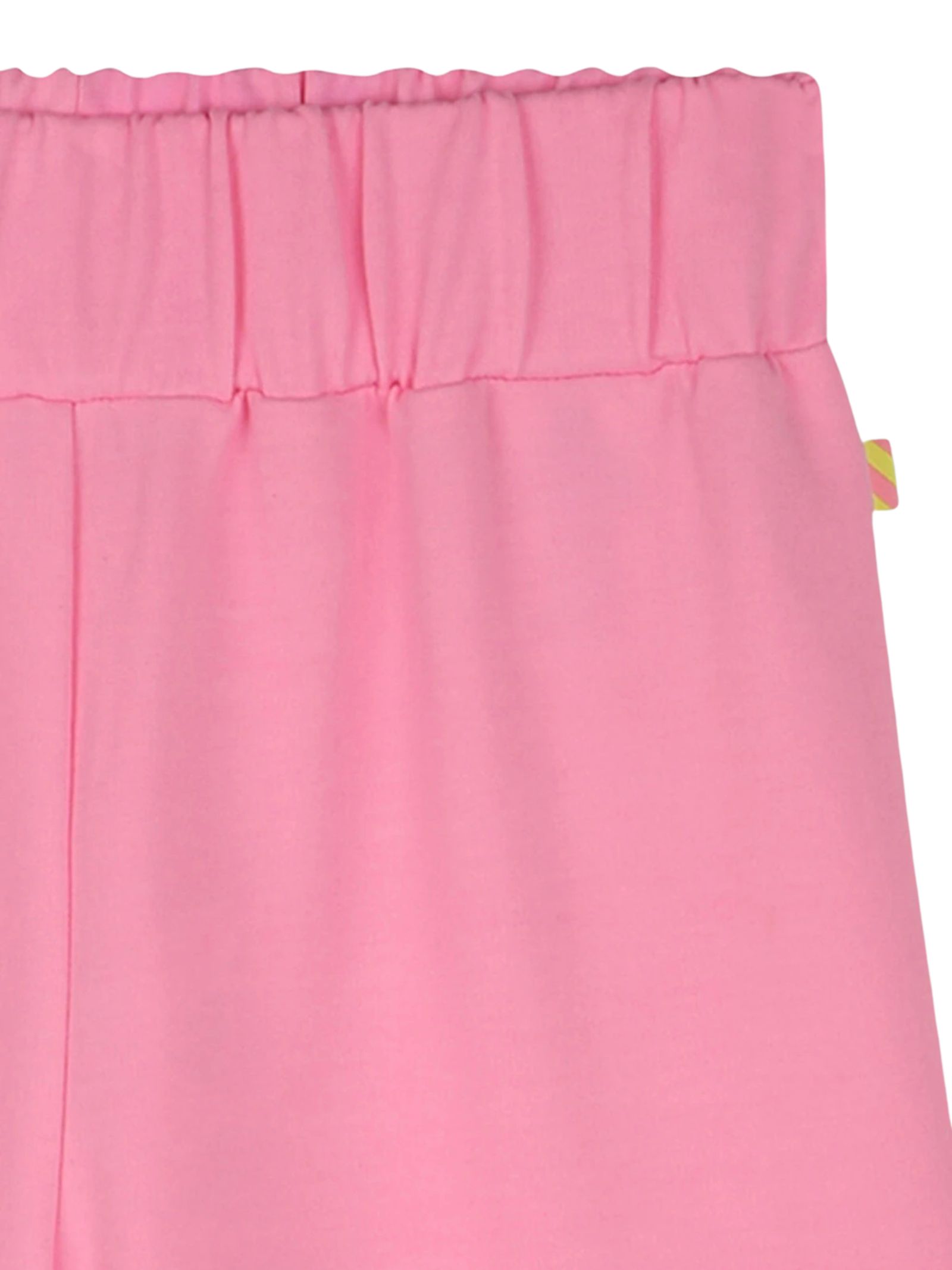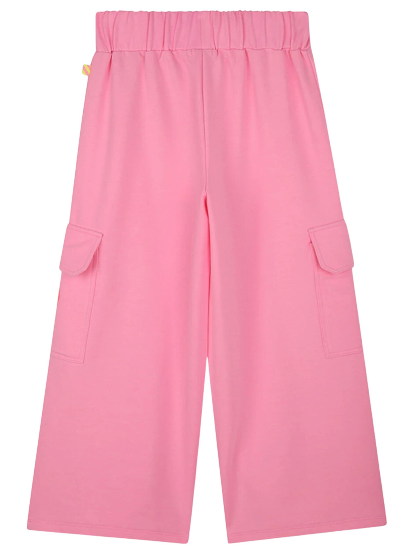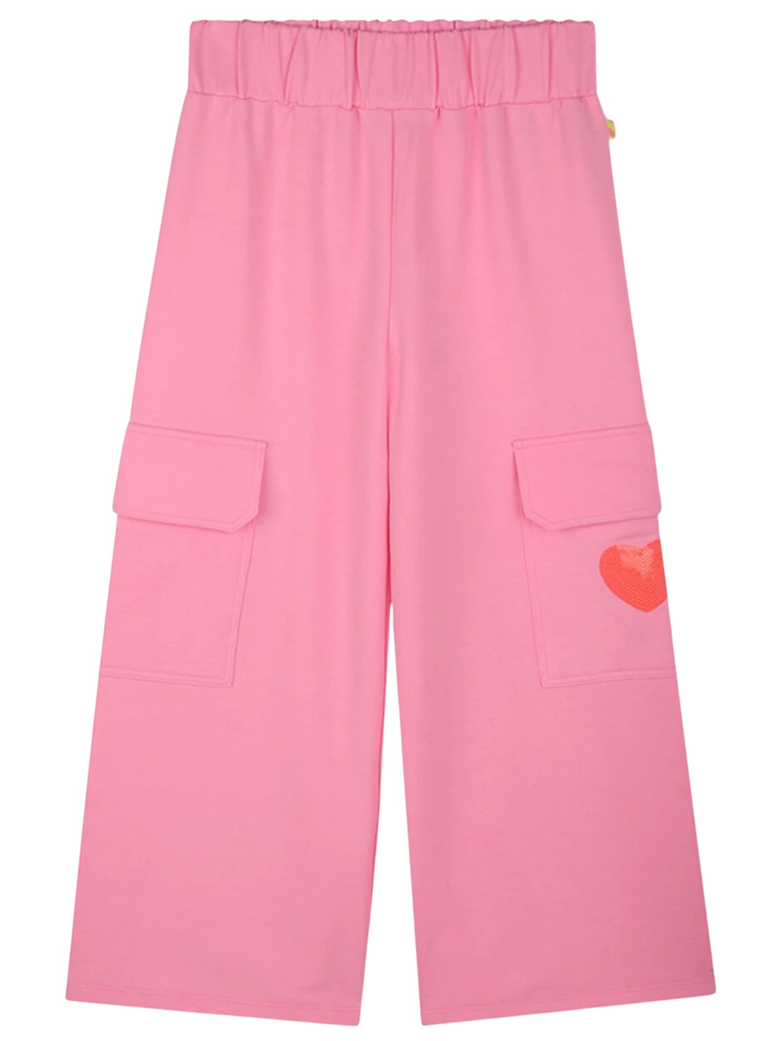 Billieblush Kids pantalone di colore rosa fluo, applicazione cuore glitter a contrasto, modello con vita elasticizzata, due tasconi laterali, vestibilità ampia. Composizione: 69% poliestere 26% cotone 5% elastan