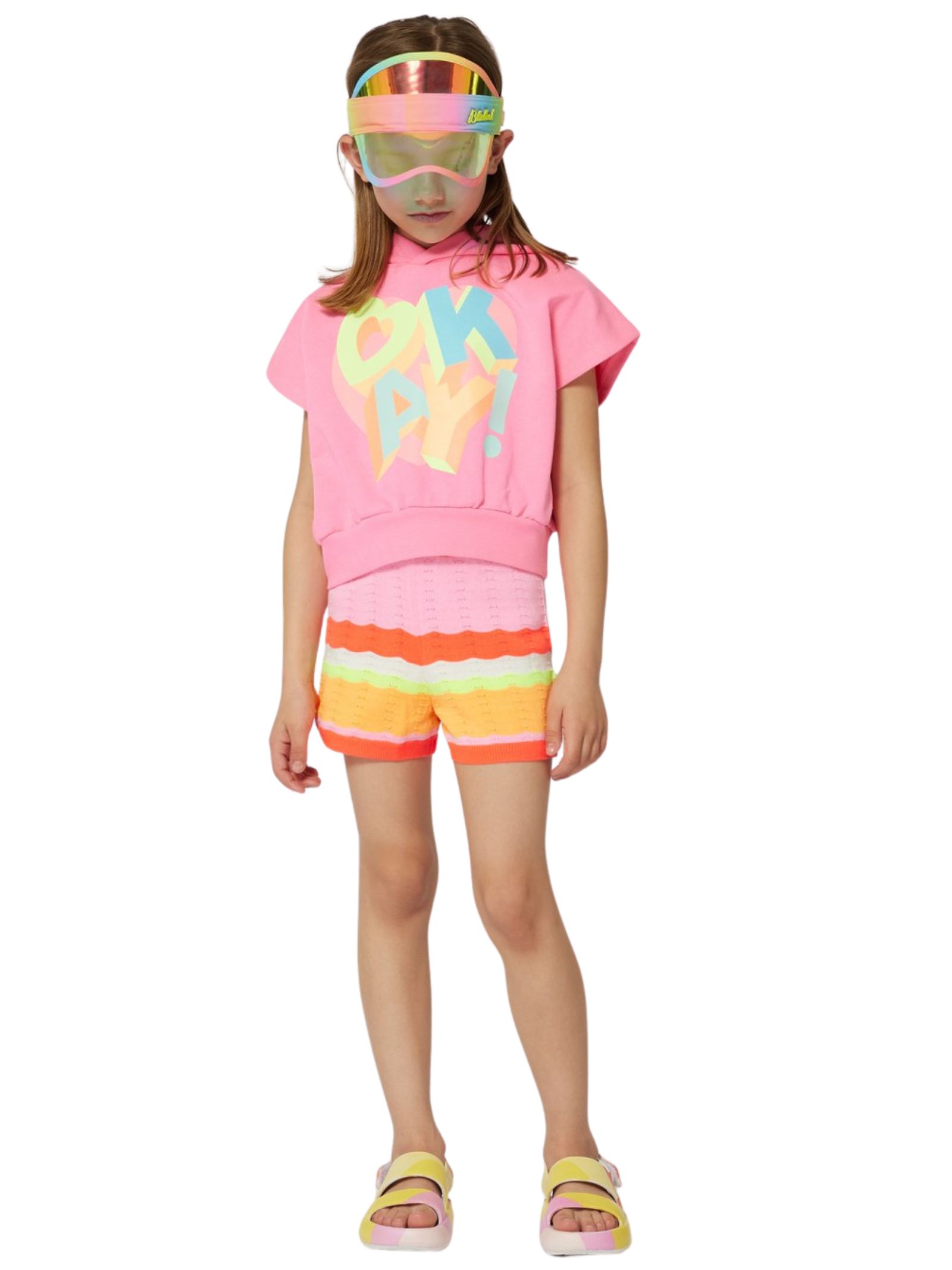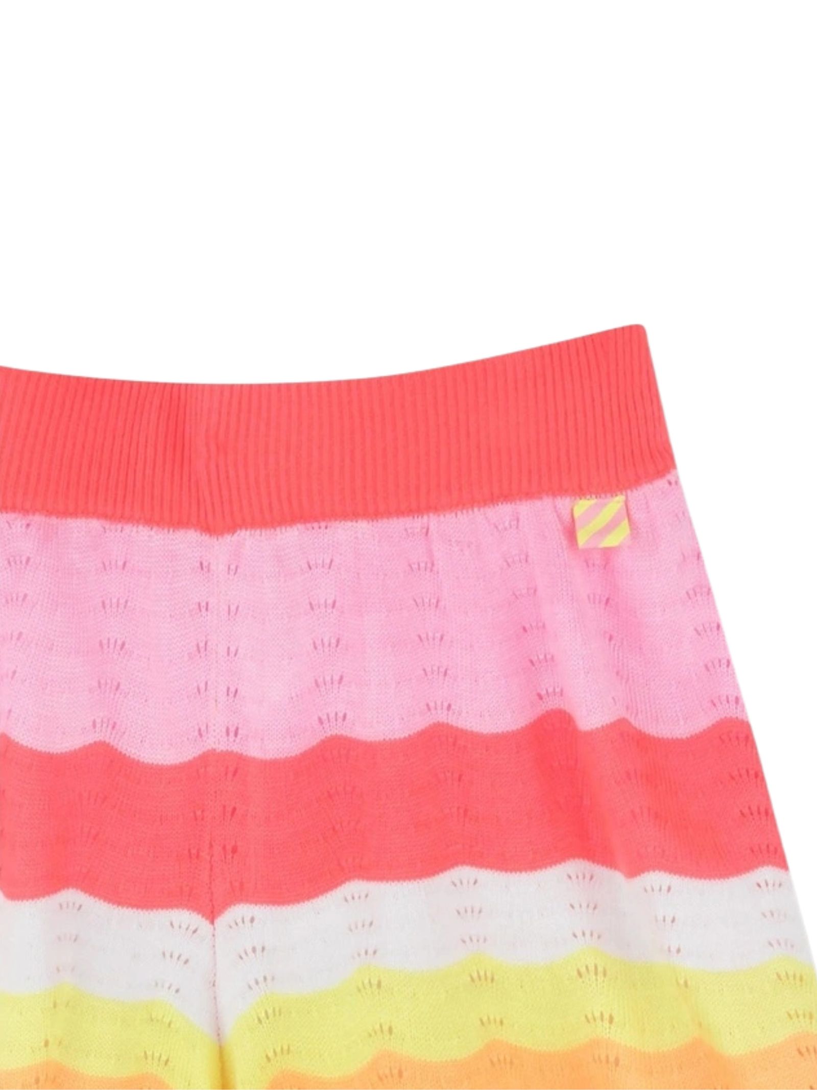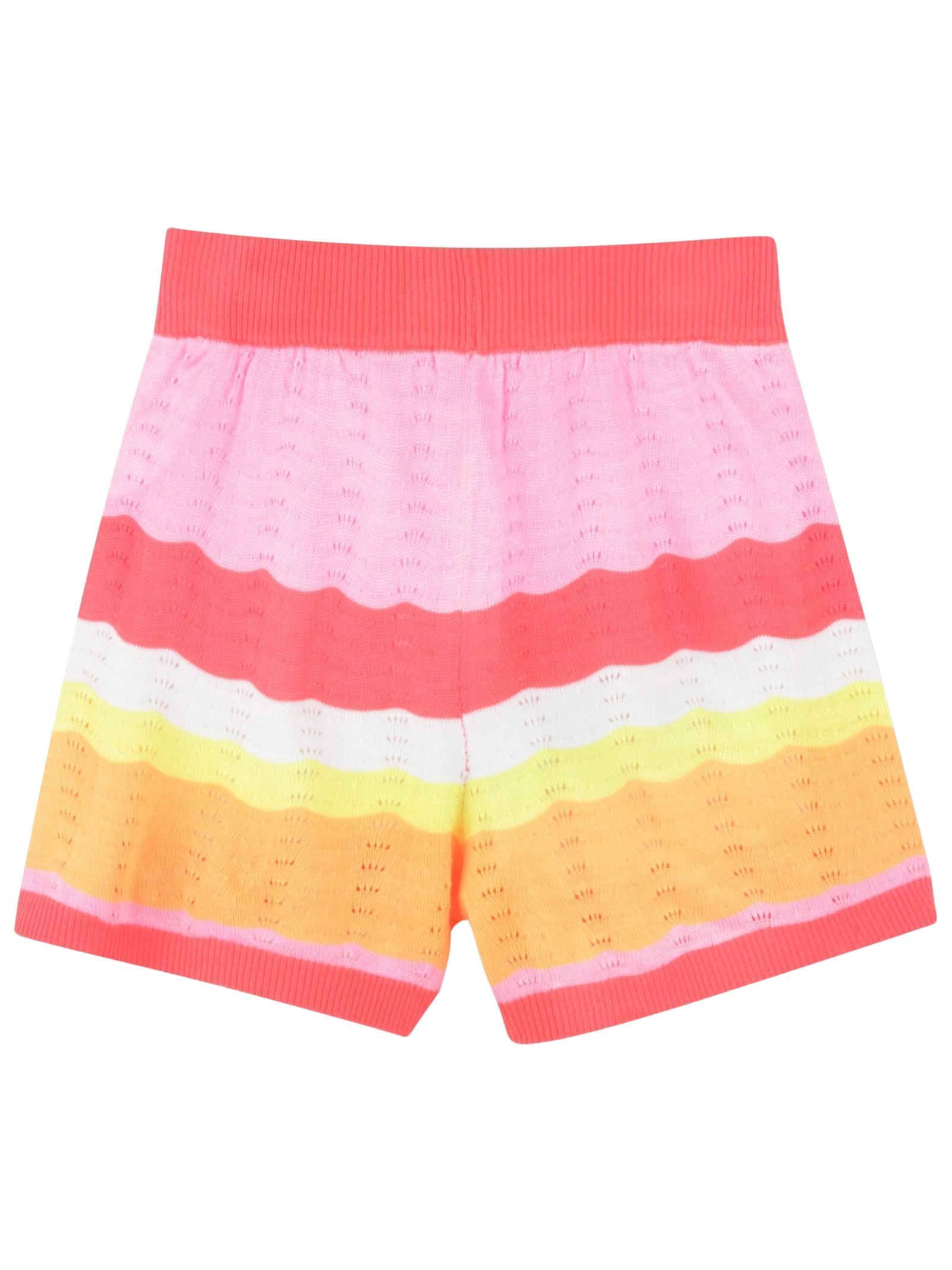 Billieblush Kids shorts a righe multicolor lavorato a maglia, traforato, elastico in vita, patch con logo laterale, orli a costine, vestibilità regolare. Composizione: 100% acrilica. Fodera: 100% cotone