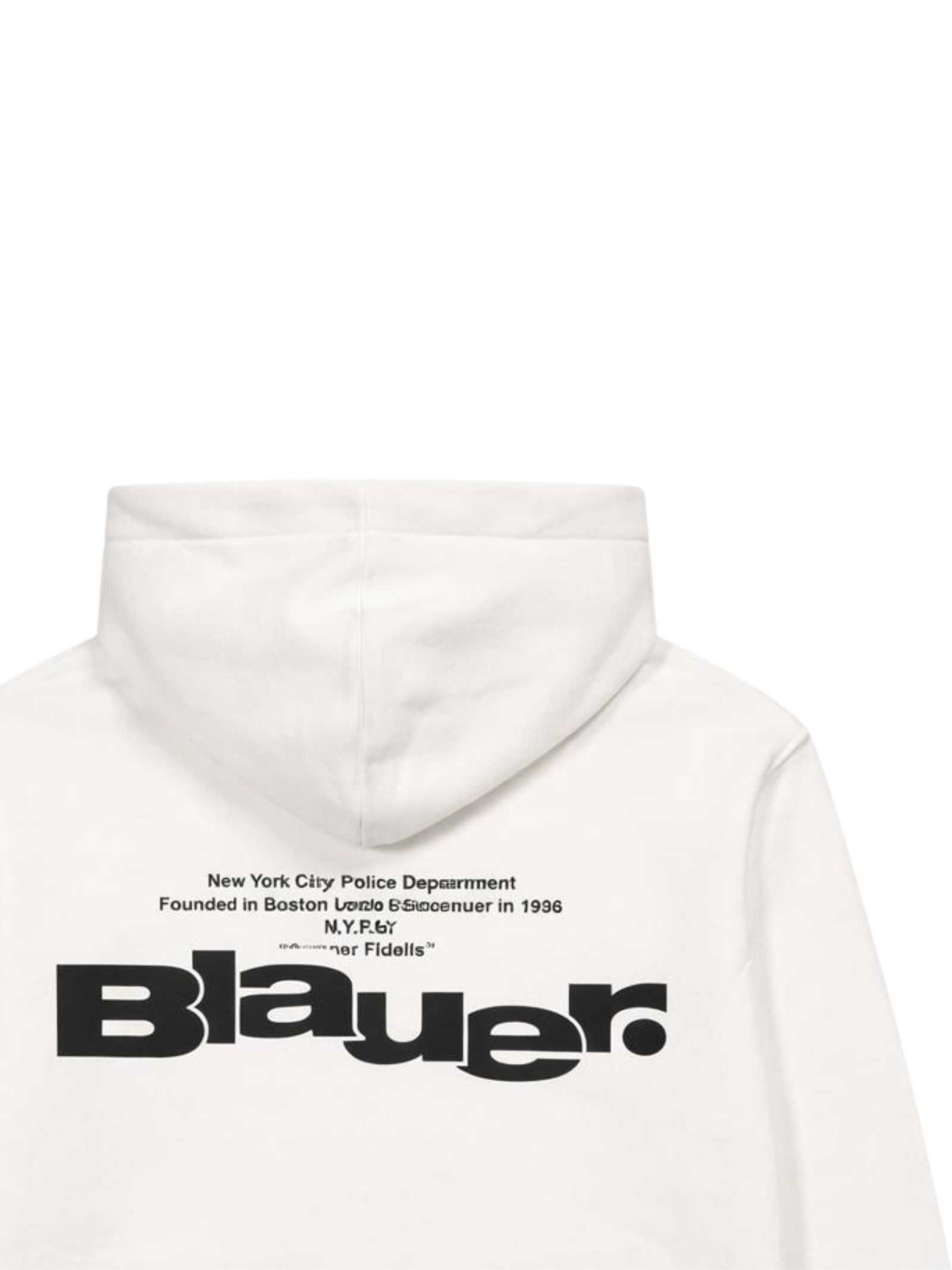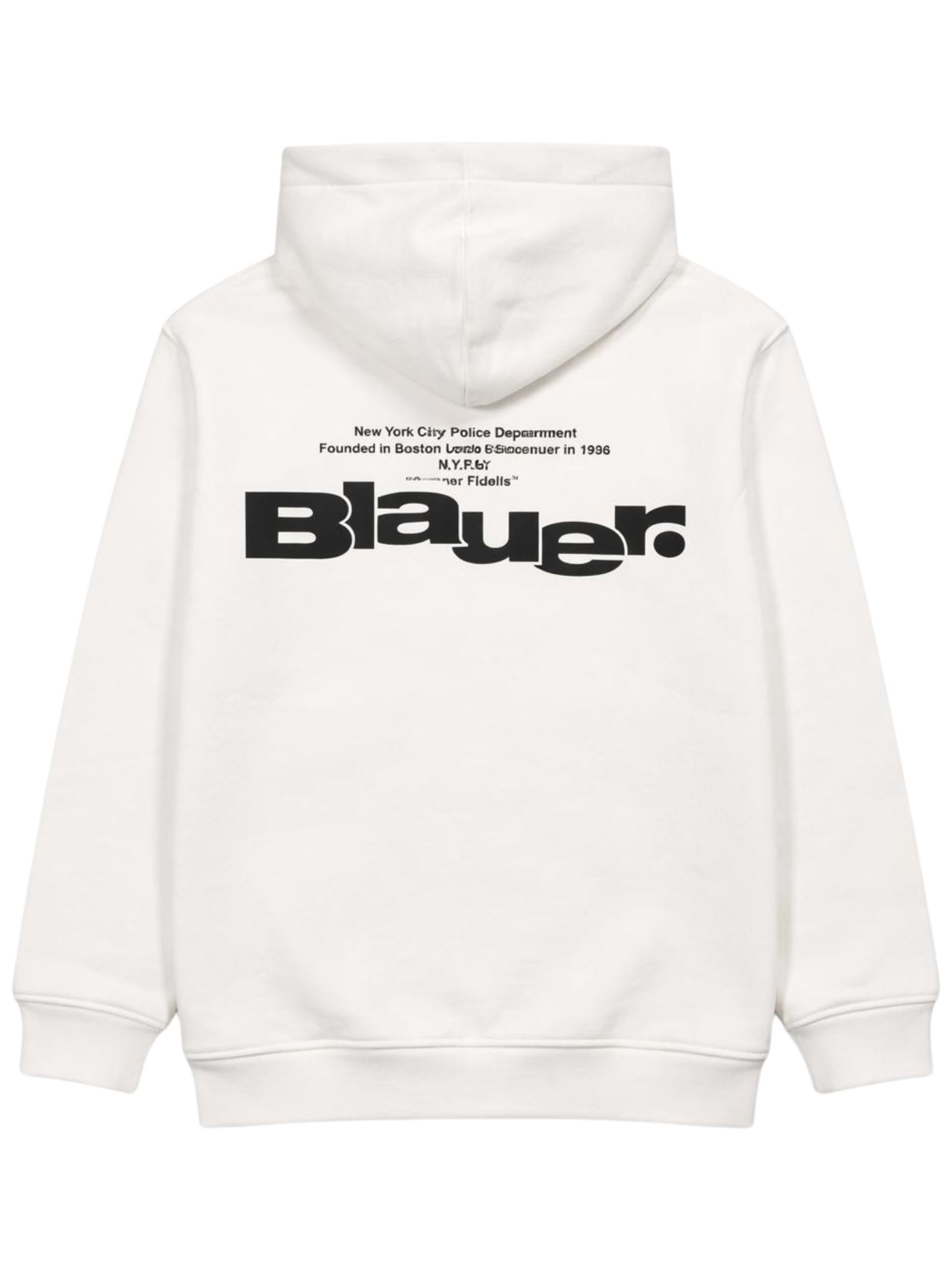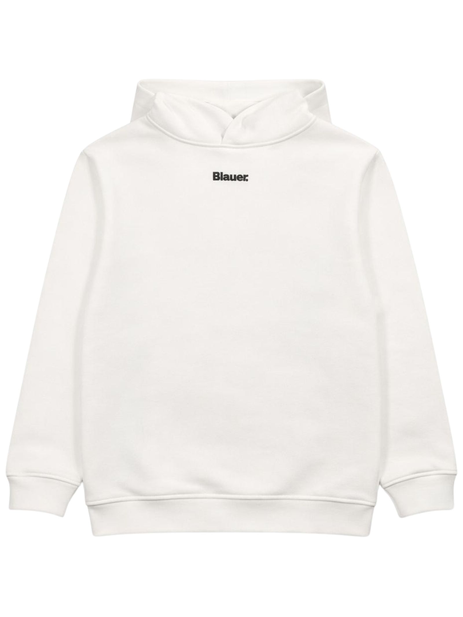 Blauer Kids felpa di colore bianco, modello con cappuccio, manica lunga con polsini a costine, ricamo logo frontale, stampa logo a contrasto sul retro, orlo dritto, vestibilità regolare. Composizione: 100% cotone