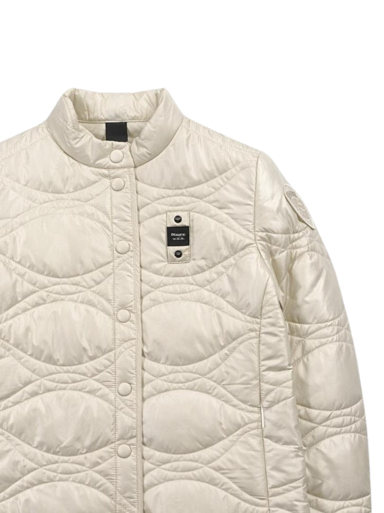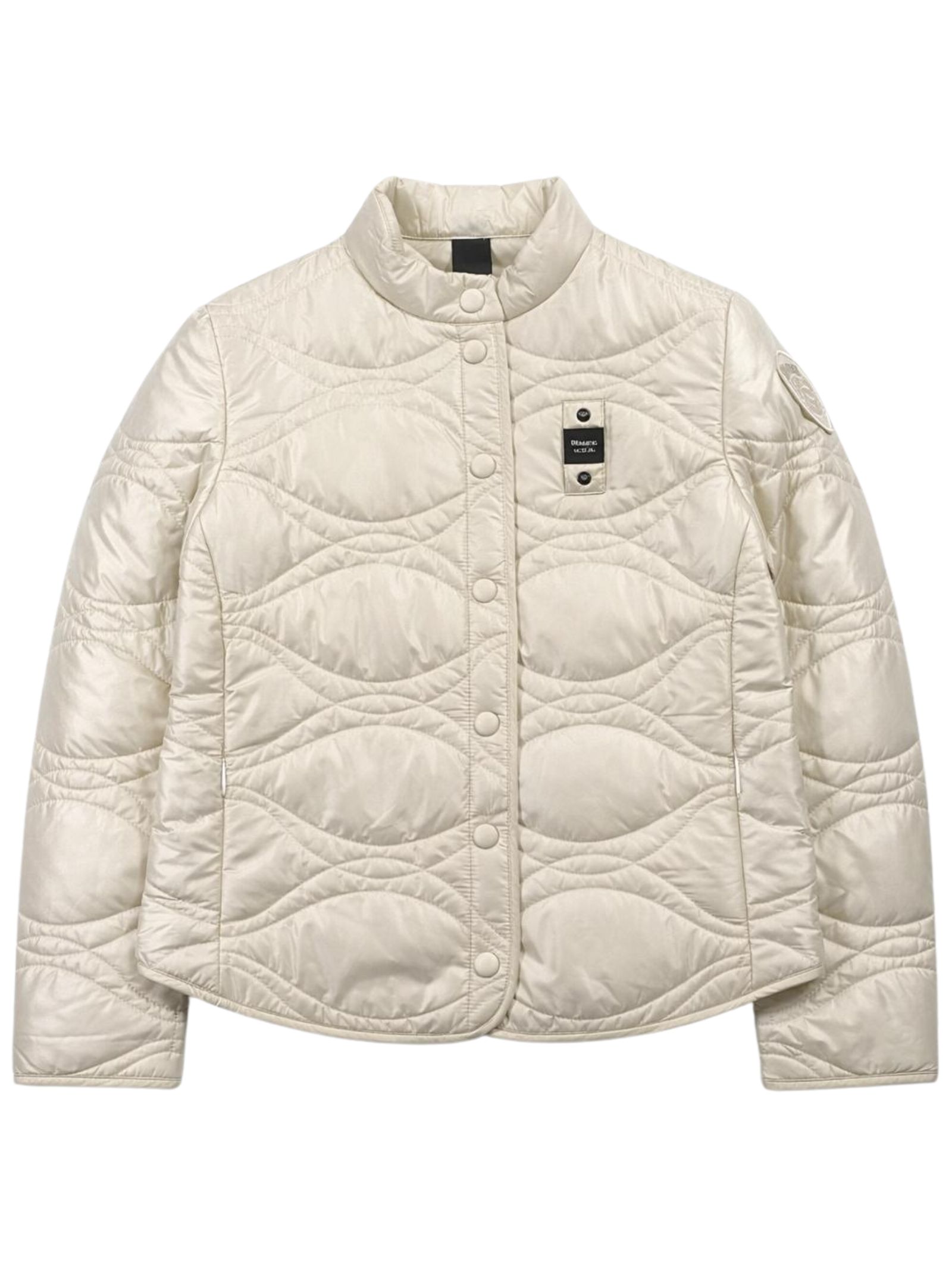 Blauer Kids giubbino di colore bianco, in tessuto micro-rip trapuntato, due tasche con zip, applicazione logo sul petto, applicazione logo sul braccio, orlo curvo, vestibilità regolare. Composizione: 100% poliammide. Imbottitura: 100% poliestere