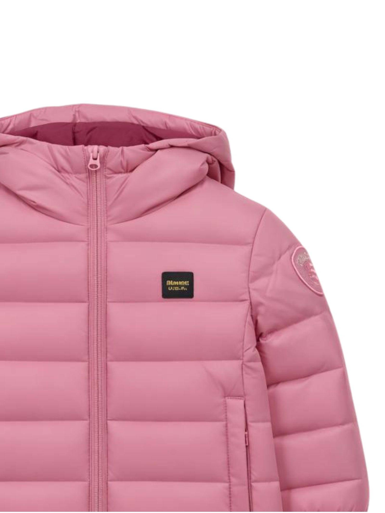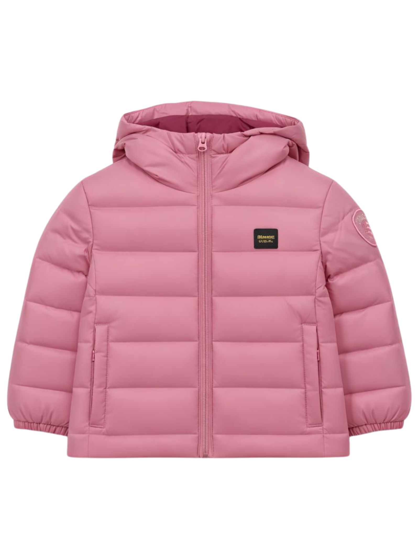 Blauer Kids giubbino di colore rosa, design imbottito, chiusura frontale con zip, cappuccio, applicazione patch logo sul petto, applicazione logo sul braccio, due tasche laterali con zip, vestibilità regolare. Composizione: 100% poliammide. Imbottitura: 100% poliestere