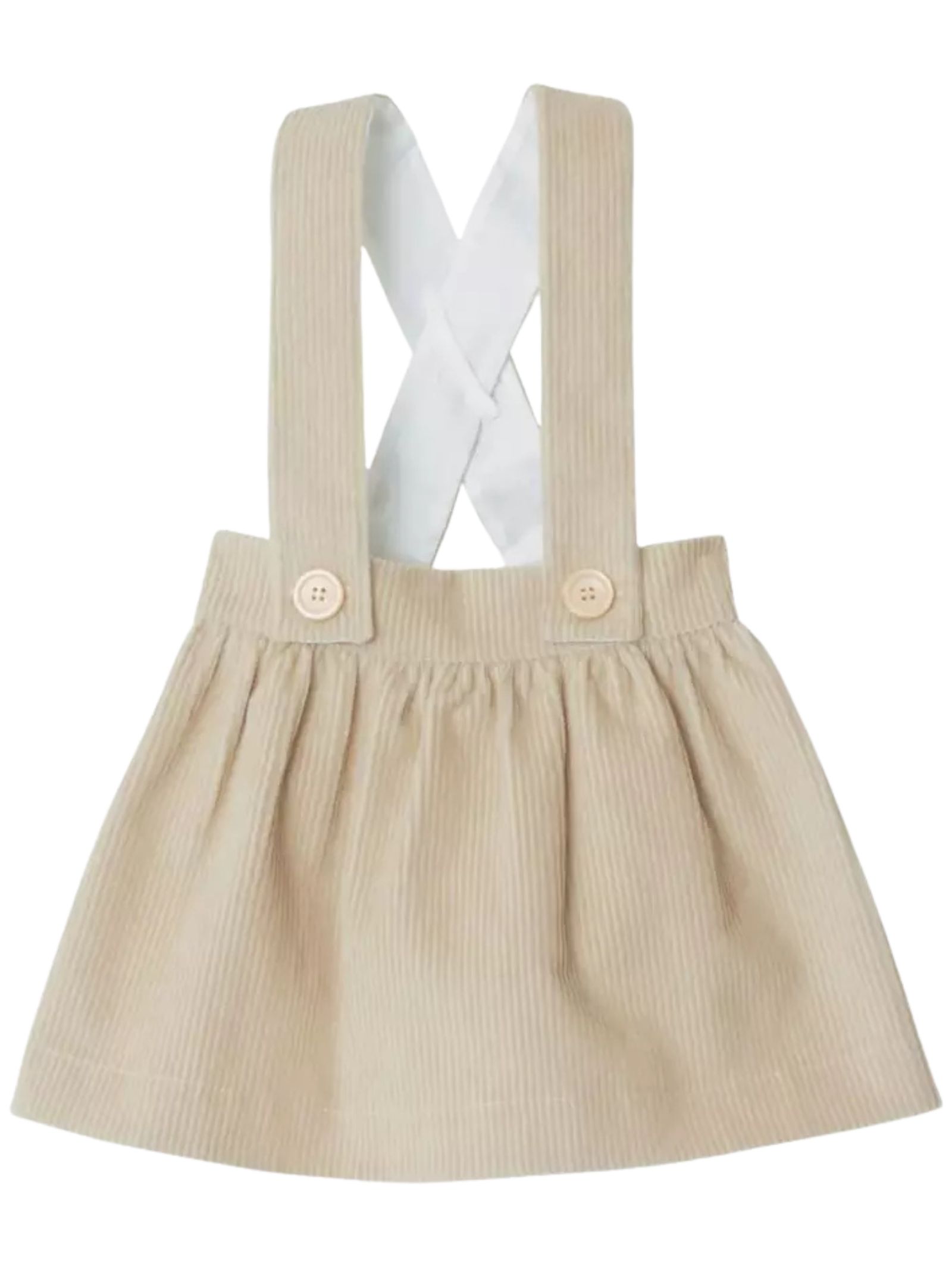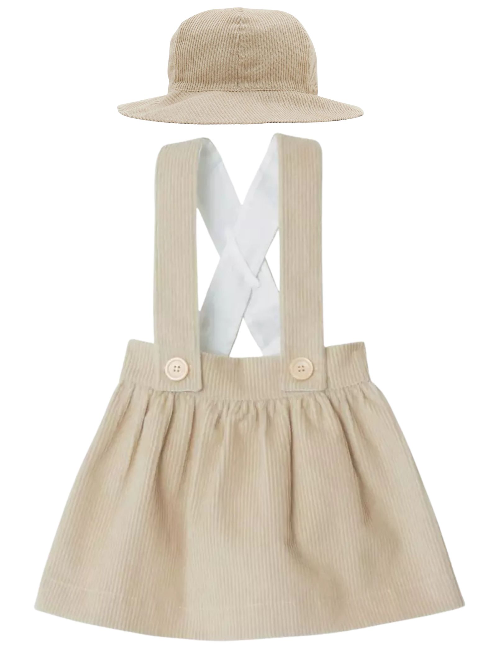 Burberry Kids completo di colore beige, realizzato in morbido velluto a costine, composto da salopettecon gonna e cappello abbinato con risvolto a contrasto vintage check. Composizione: 100% cotone