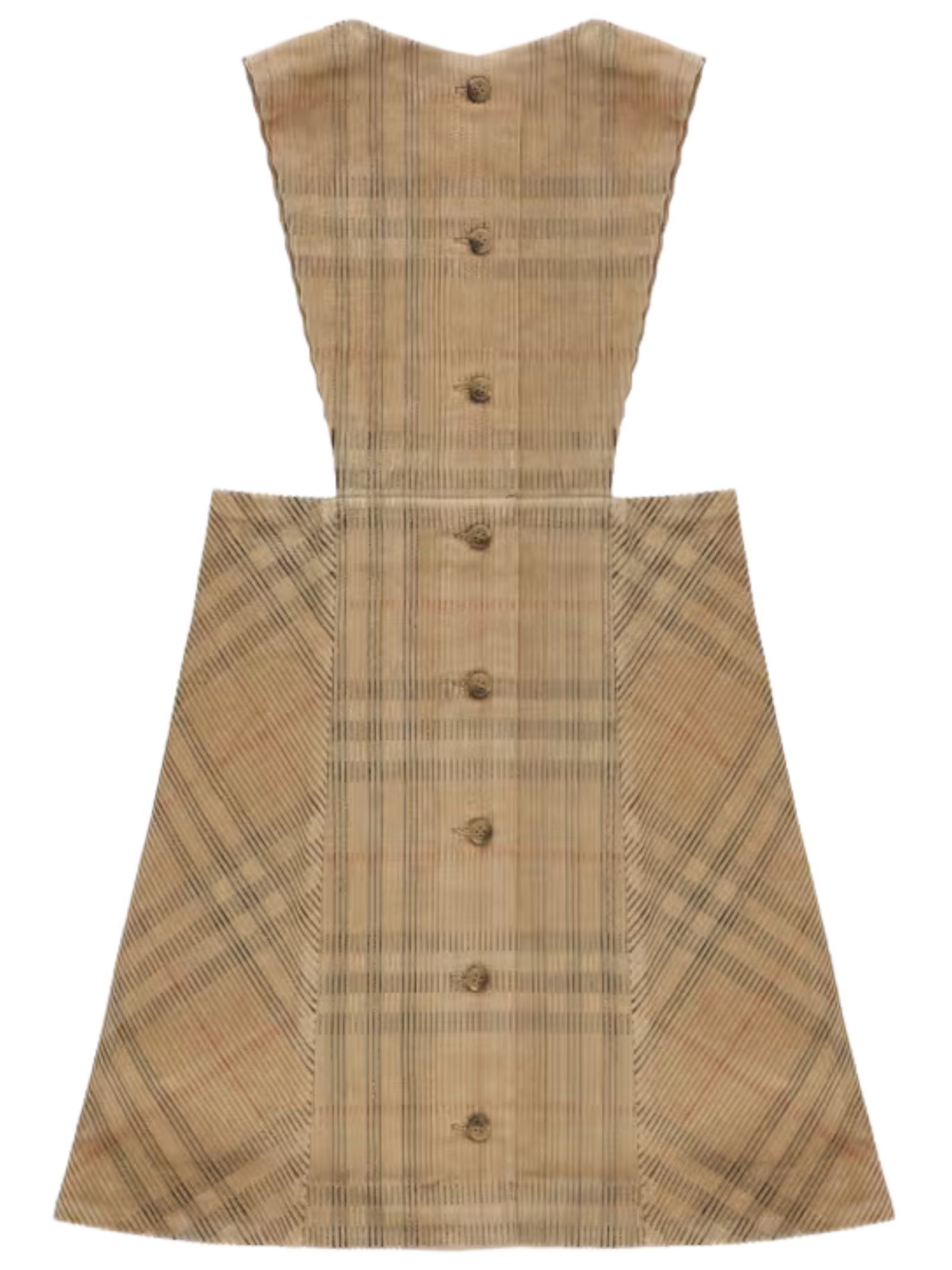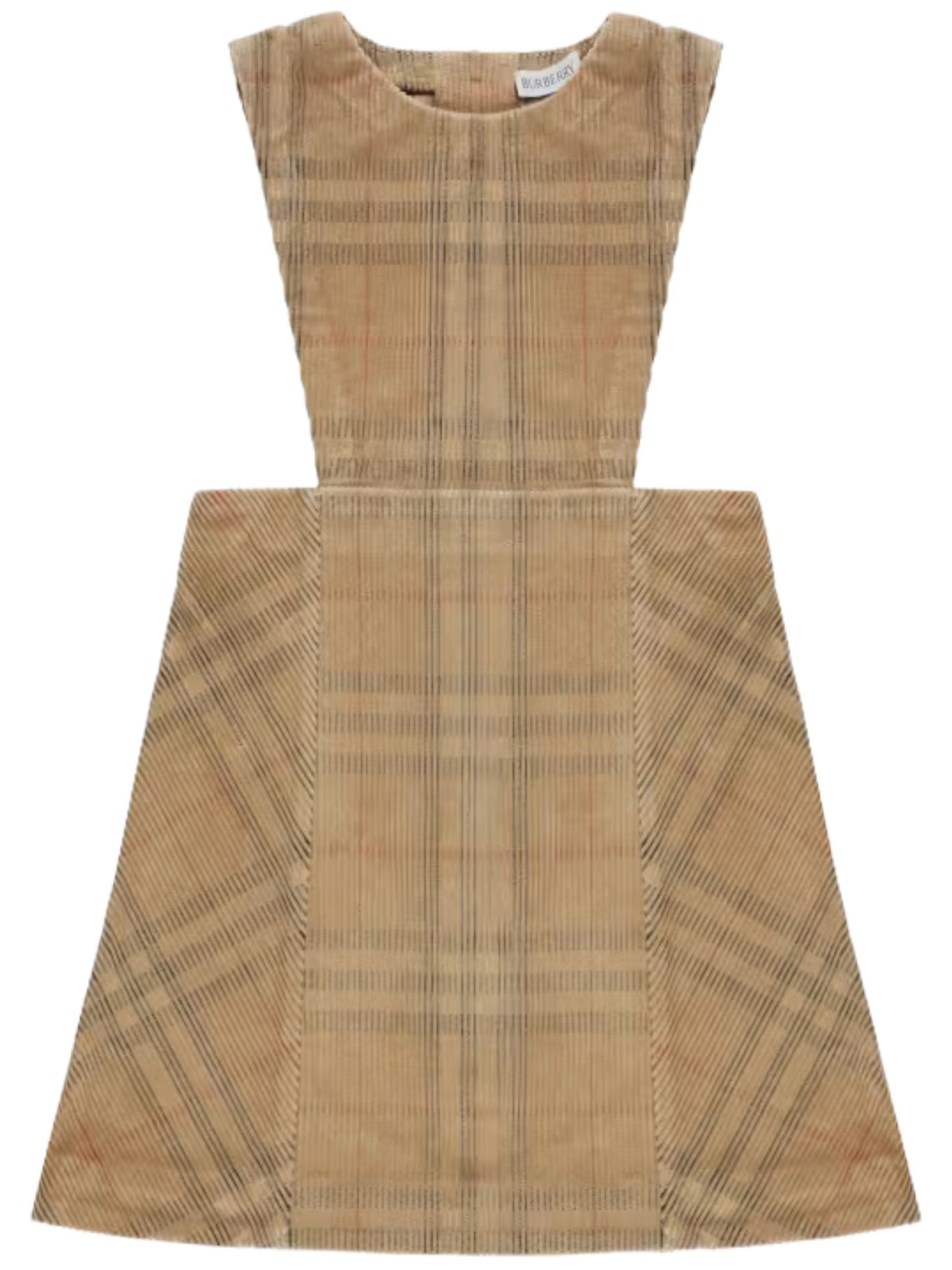Burberry Kids salopette di colore beige, realizzata in morbido velluto a costine, fantasia vintage check, modello smanicato con gonna svasata e bottoni sul retro, vestibilità regolare. Composizione: 100% cotone