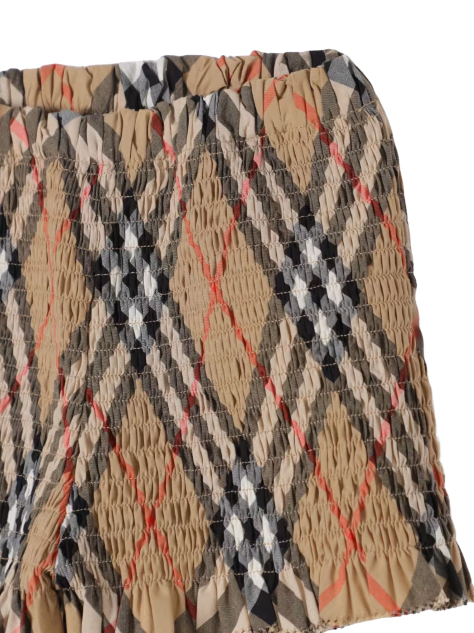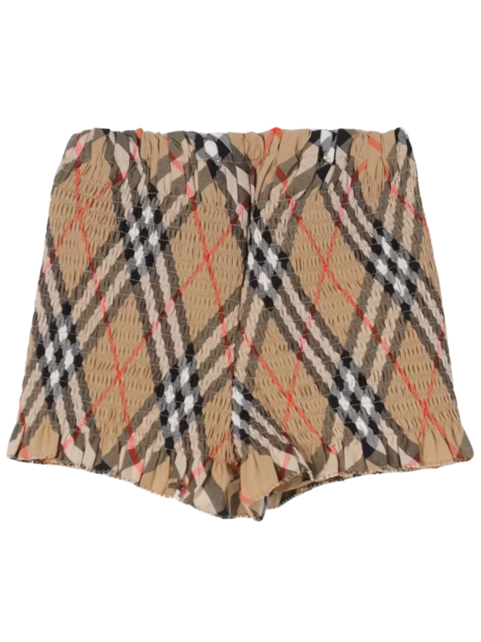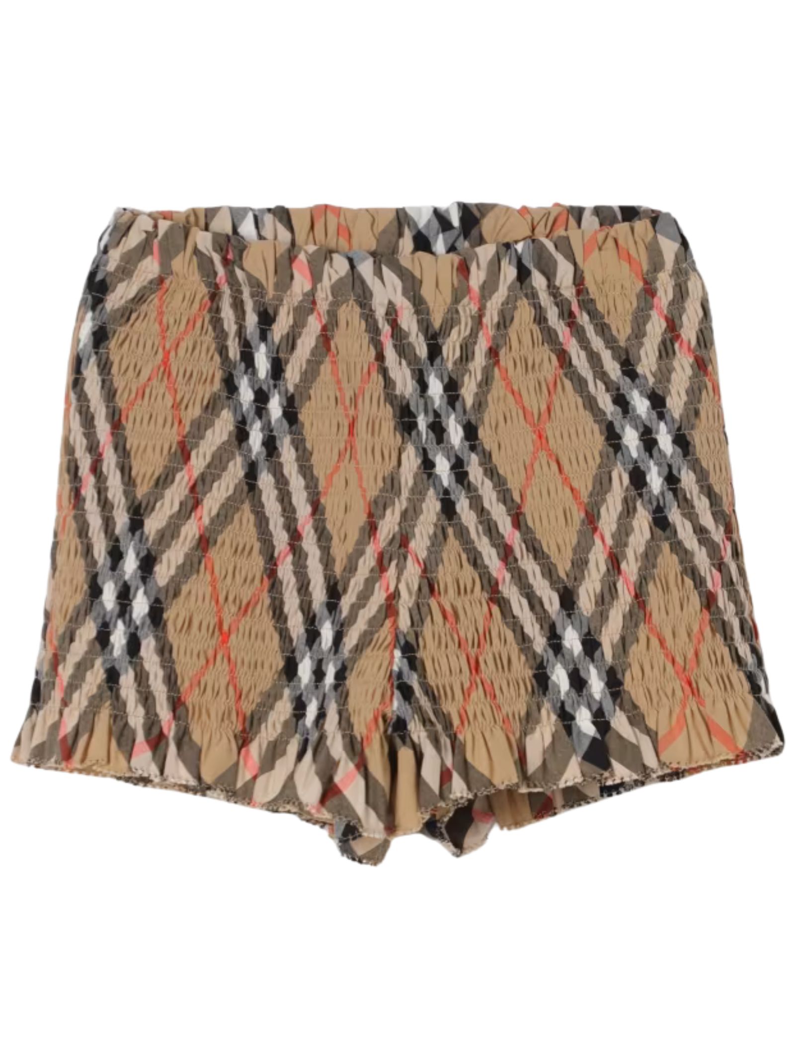 Burberry Kids shorts realizzato in popline di cotone in motivo Vintage Check, tessuto elastico arricciato, foderato, dettaglio rouches, modello con elastico in vita. Composizione: 100% cotone