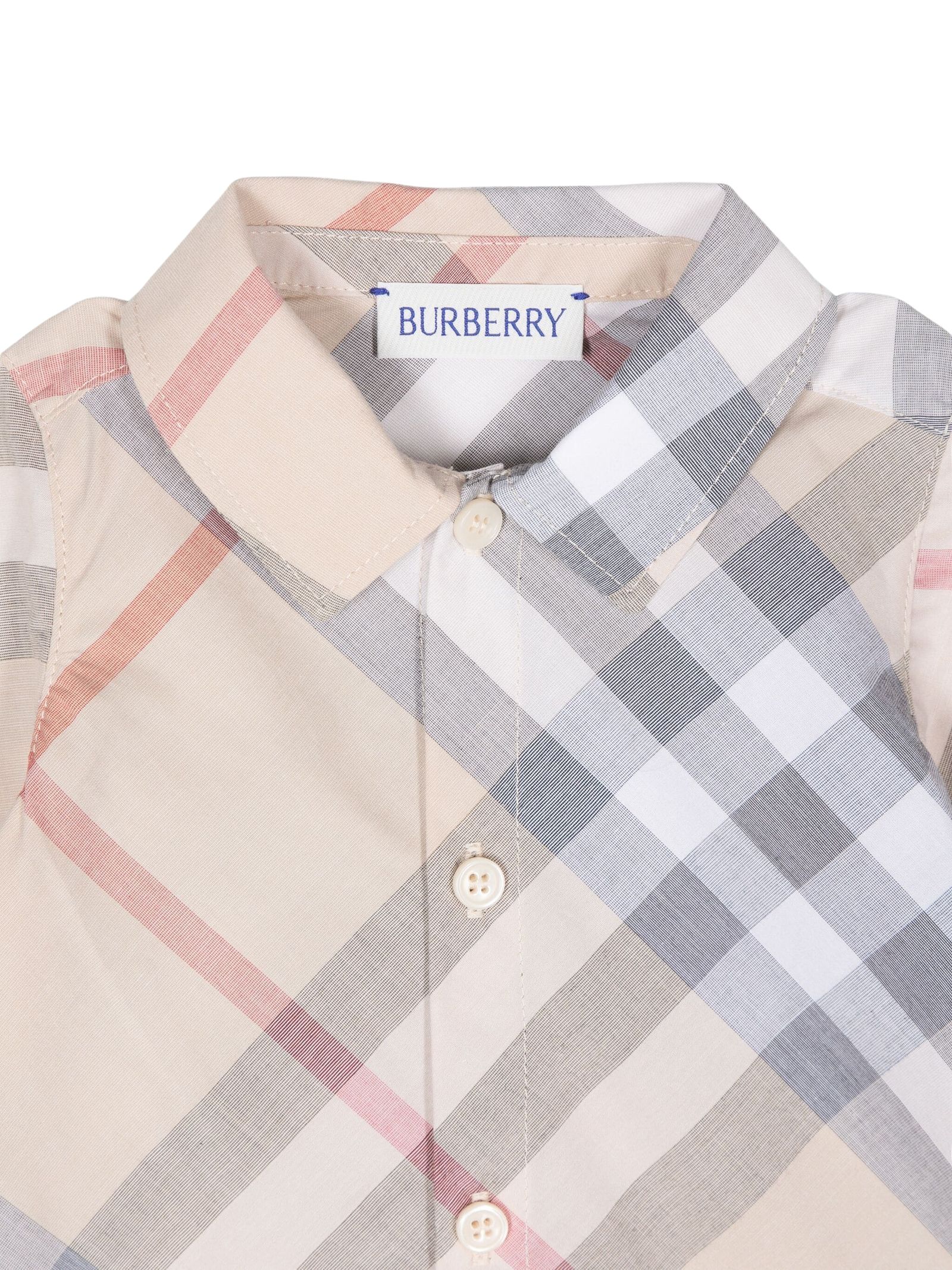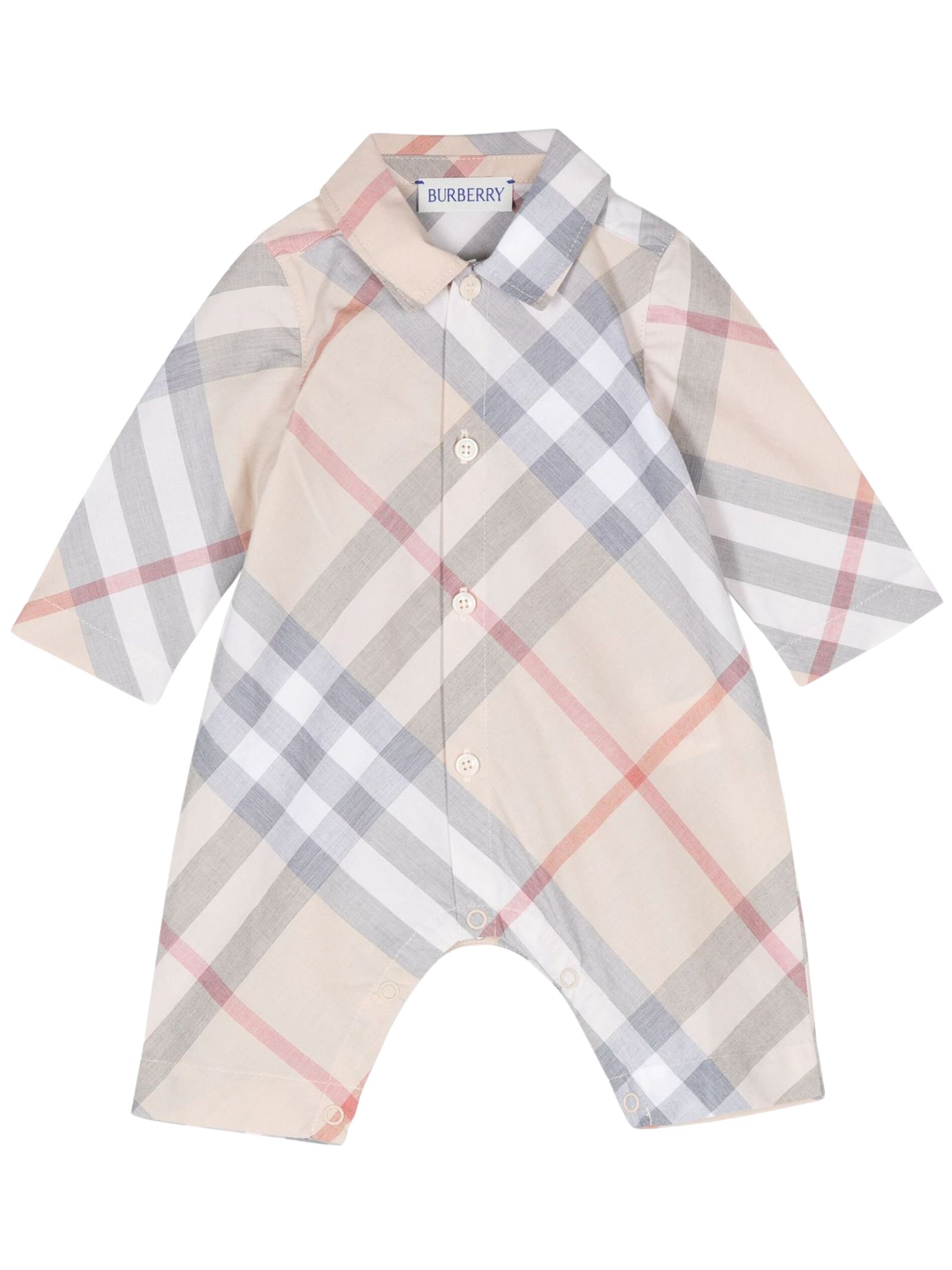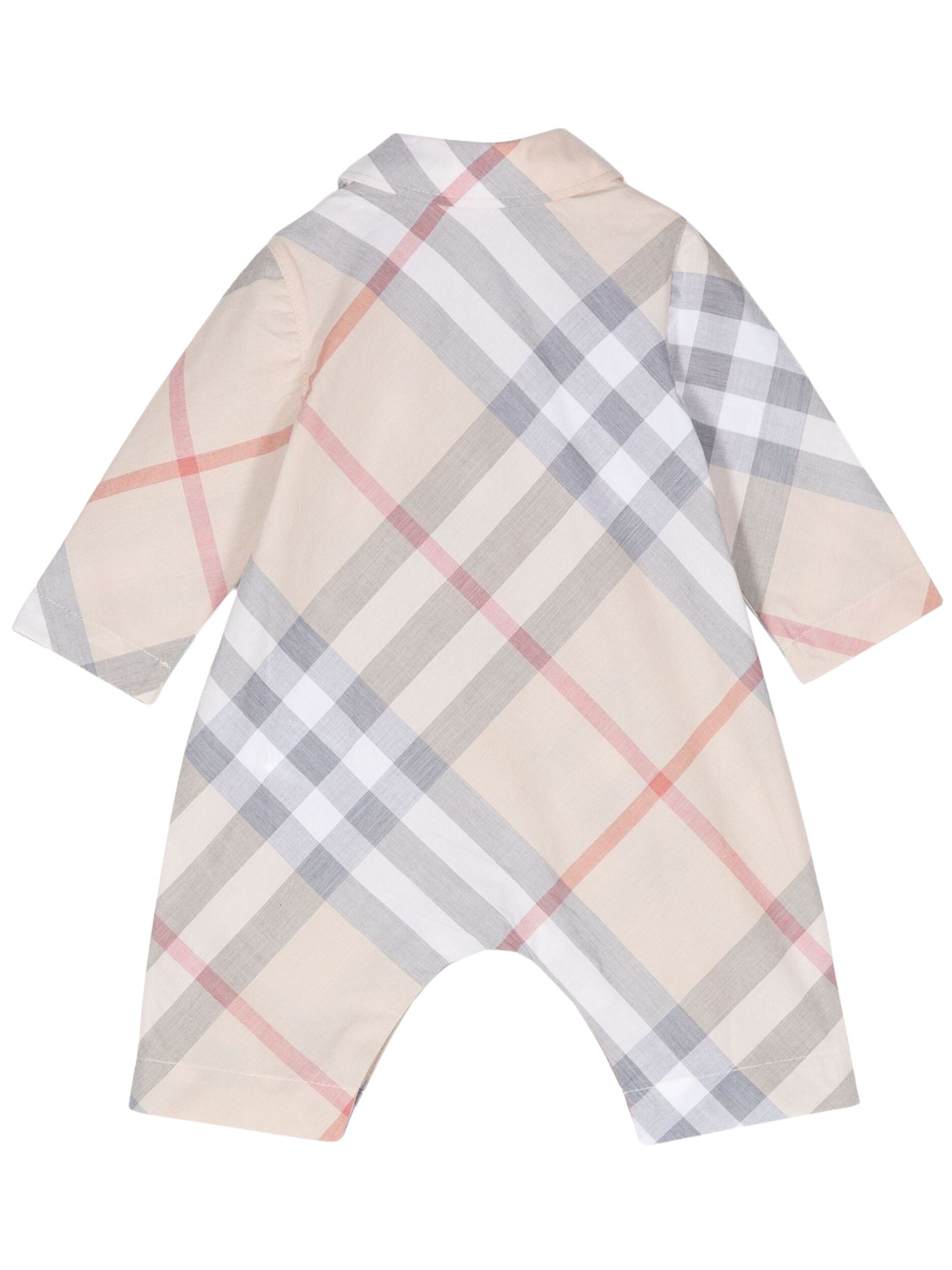 Burberry Kids tutina in motivo vitage check effetto sfocato, design con colletto, maniche lunghe, chiusura frontale con bottoni, bottoni automatici sul cavallo. Composizione: 100% cotone