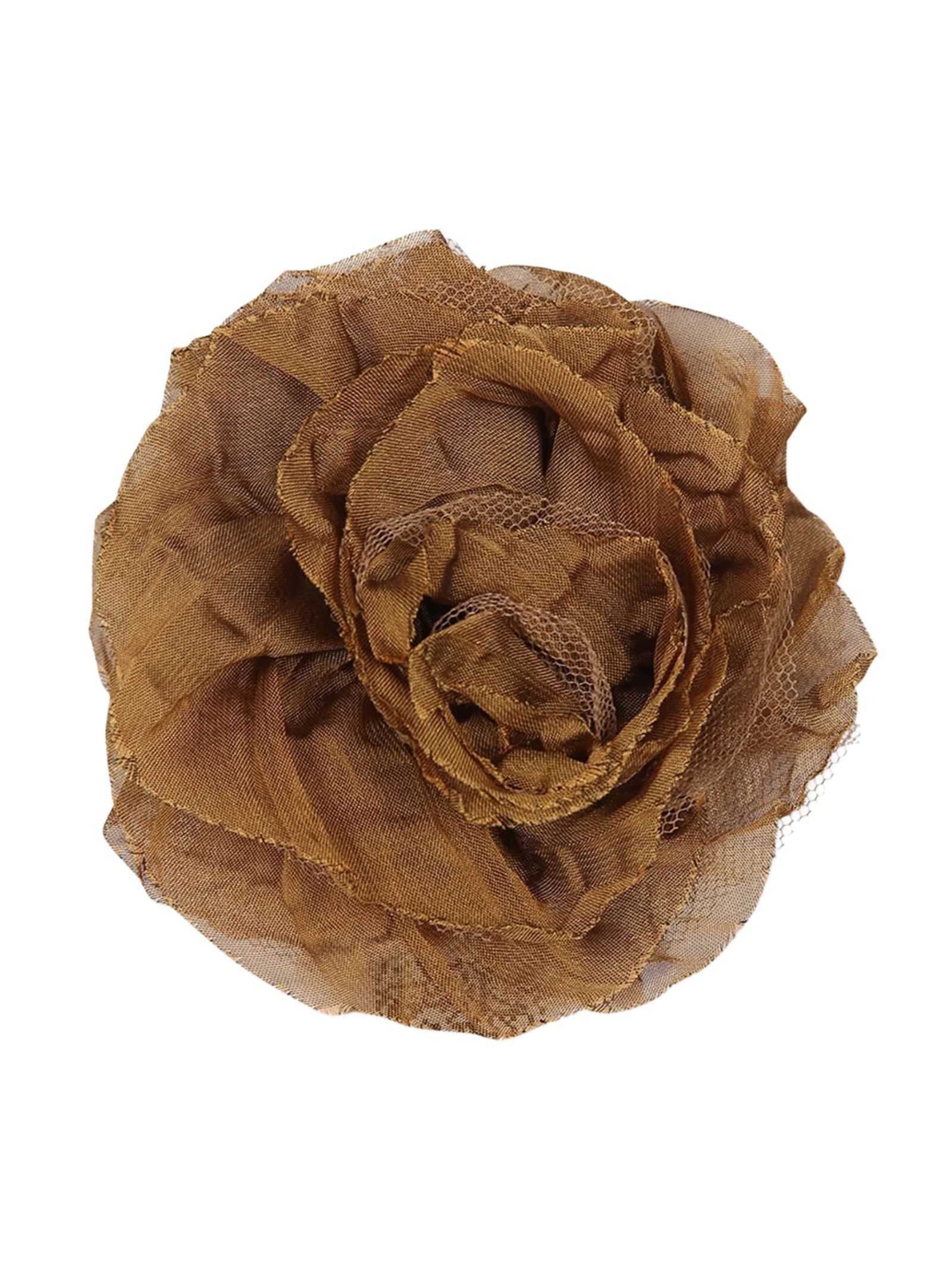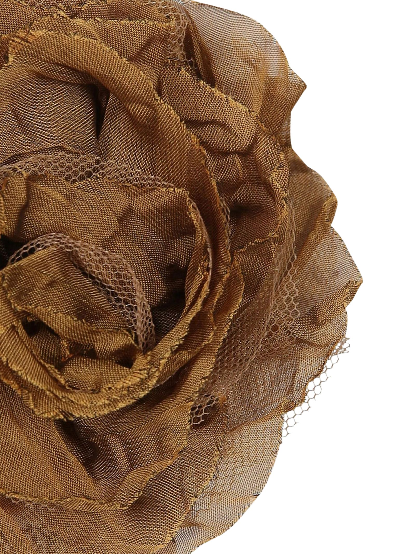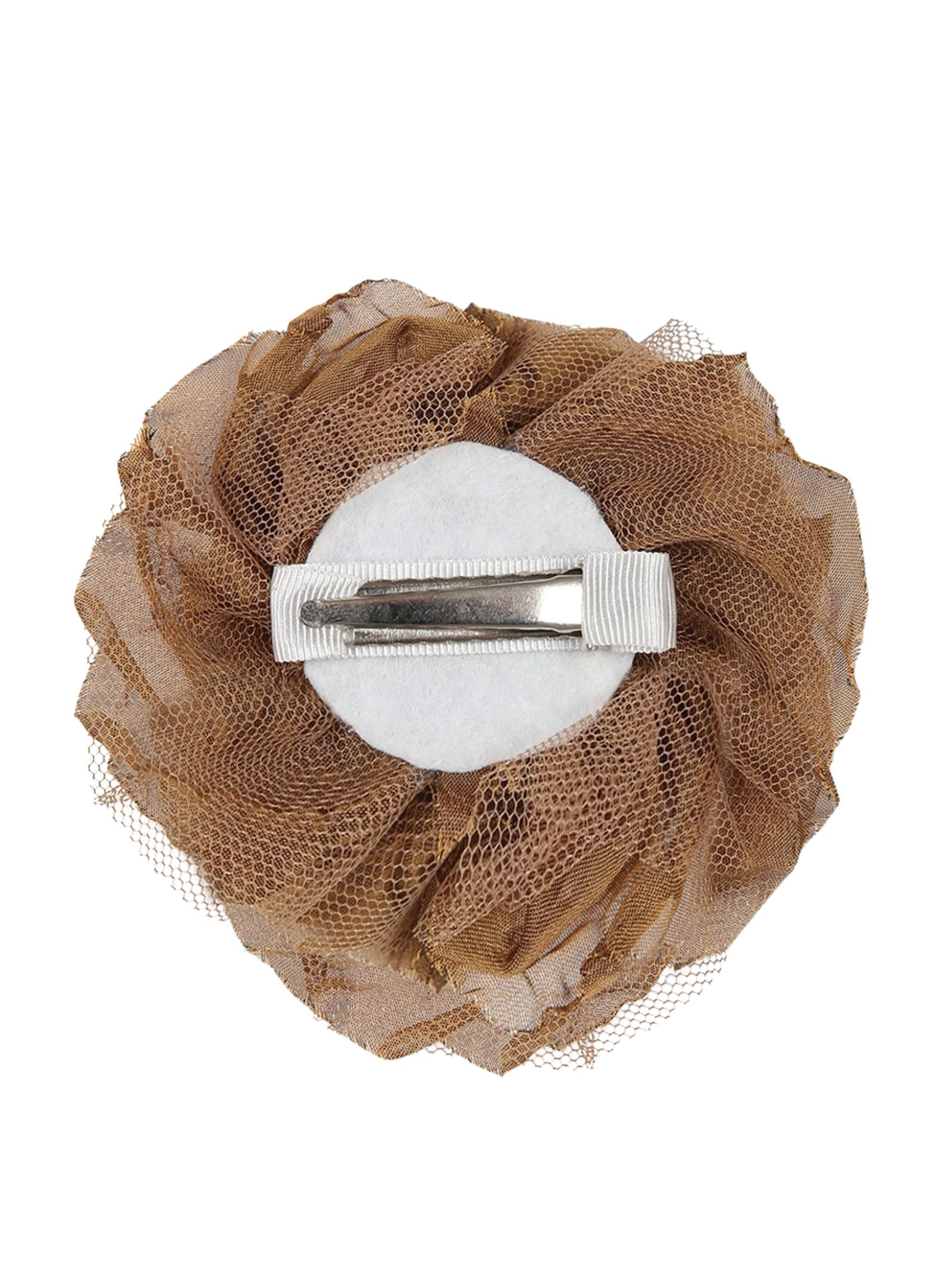Caffè d'Orzo Kids fermaglio di colore marrone decorato con rosa in tulle. Diametro: 10cm. Composizione: 100% metallo. Made in Italy