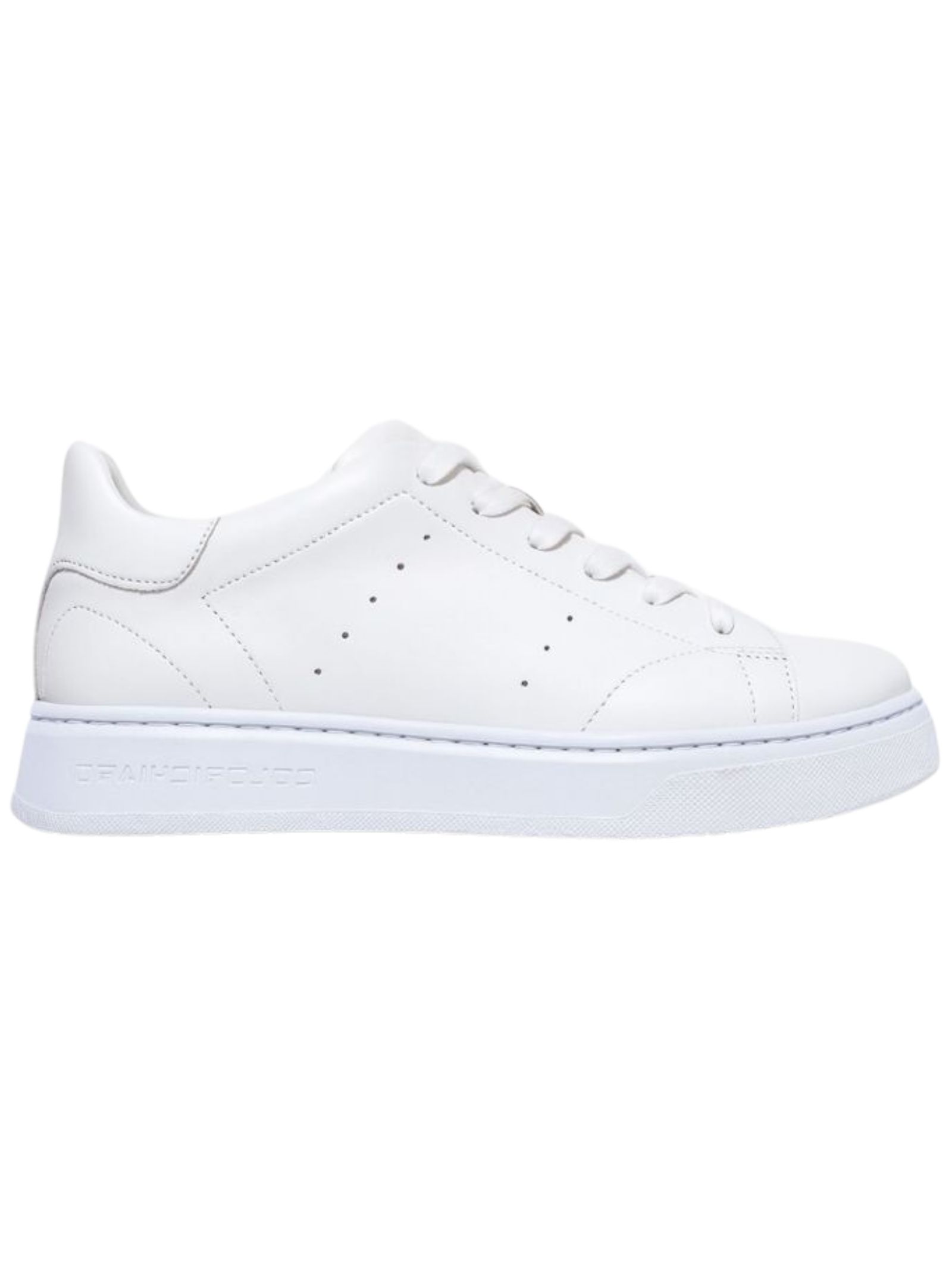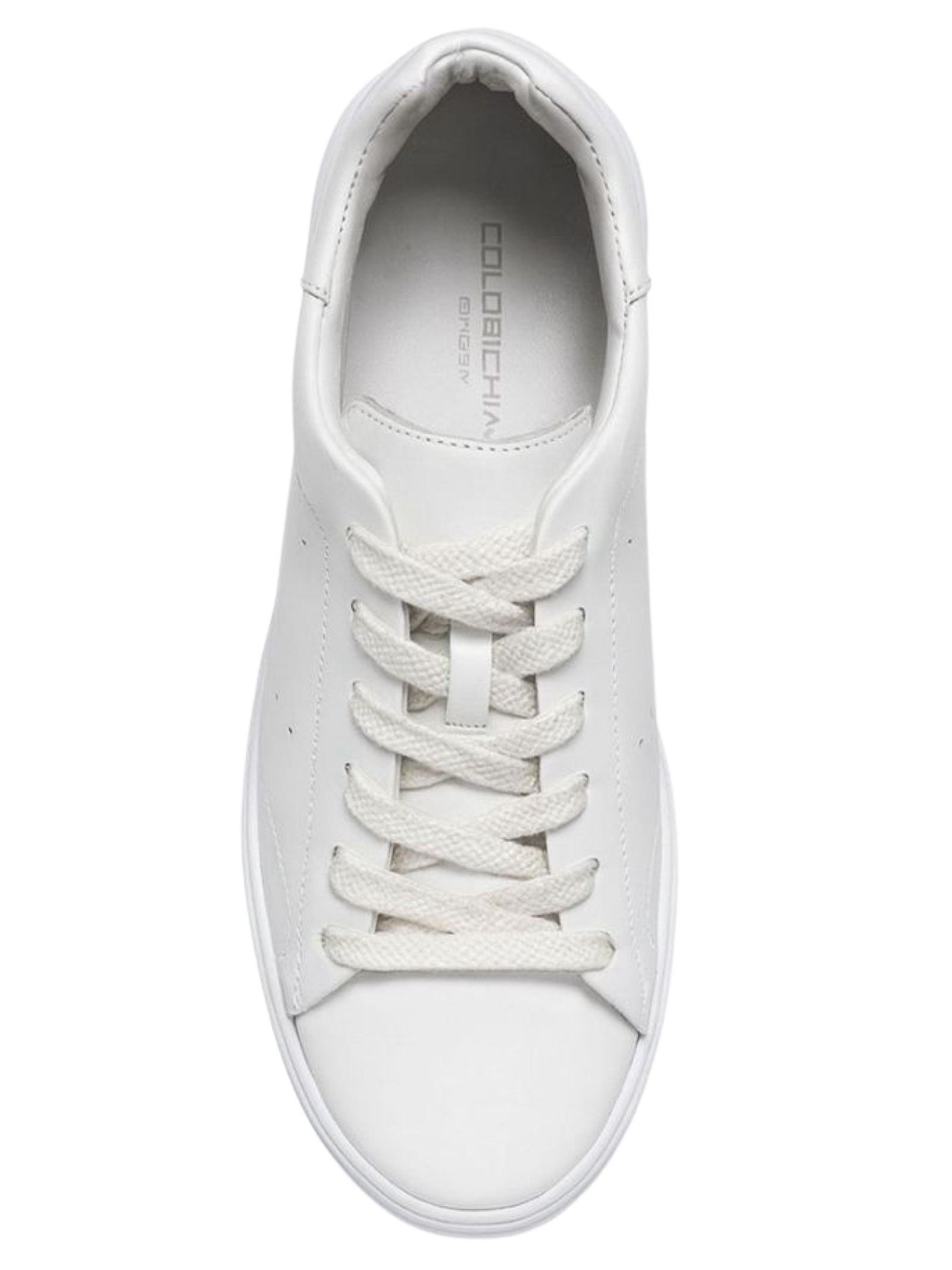 Sneakers COLORI CHIARI Kids di colore bianco, chiusura frontale con lacci, logo impresso, suola in gomma vulcanizzata, linguetta sul tallone e soletta in pelle con logo. Realizzata in pelle 100% Made in Italy