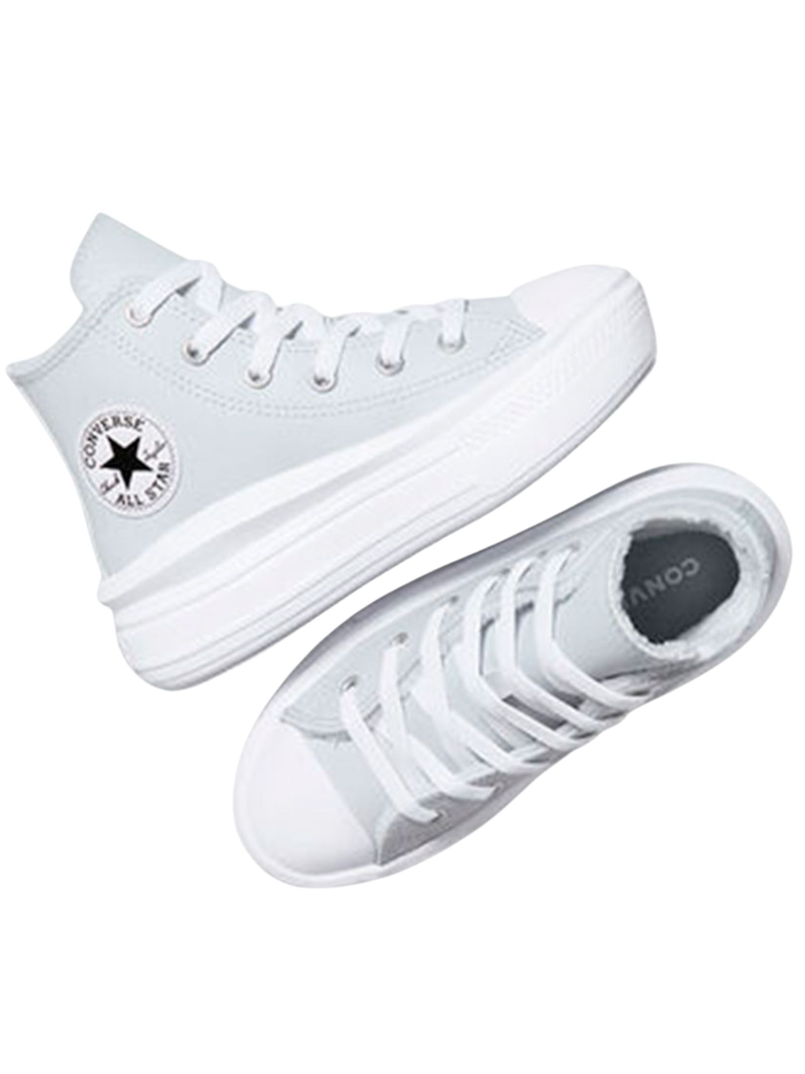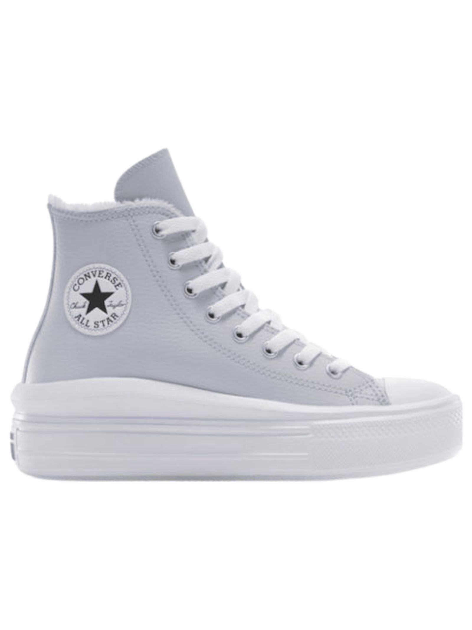 Converse Kids scarpe di colore grigio realizzate in pelle, modello Chuck Taylor All Star Move Hi Cozy, design alto, fodera effetto pelliccia accogliente assicura un supporto ottimale, ideale per le giornate fresche, design pulito e senza tempo si abbina a qualsiasi outfit, aggiungendo un tocco di tendenza a ogni passo, suola in gomma.