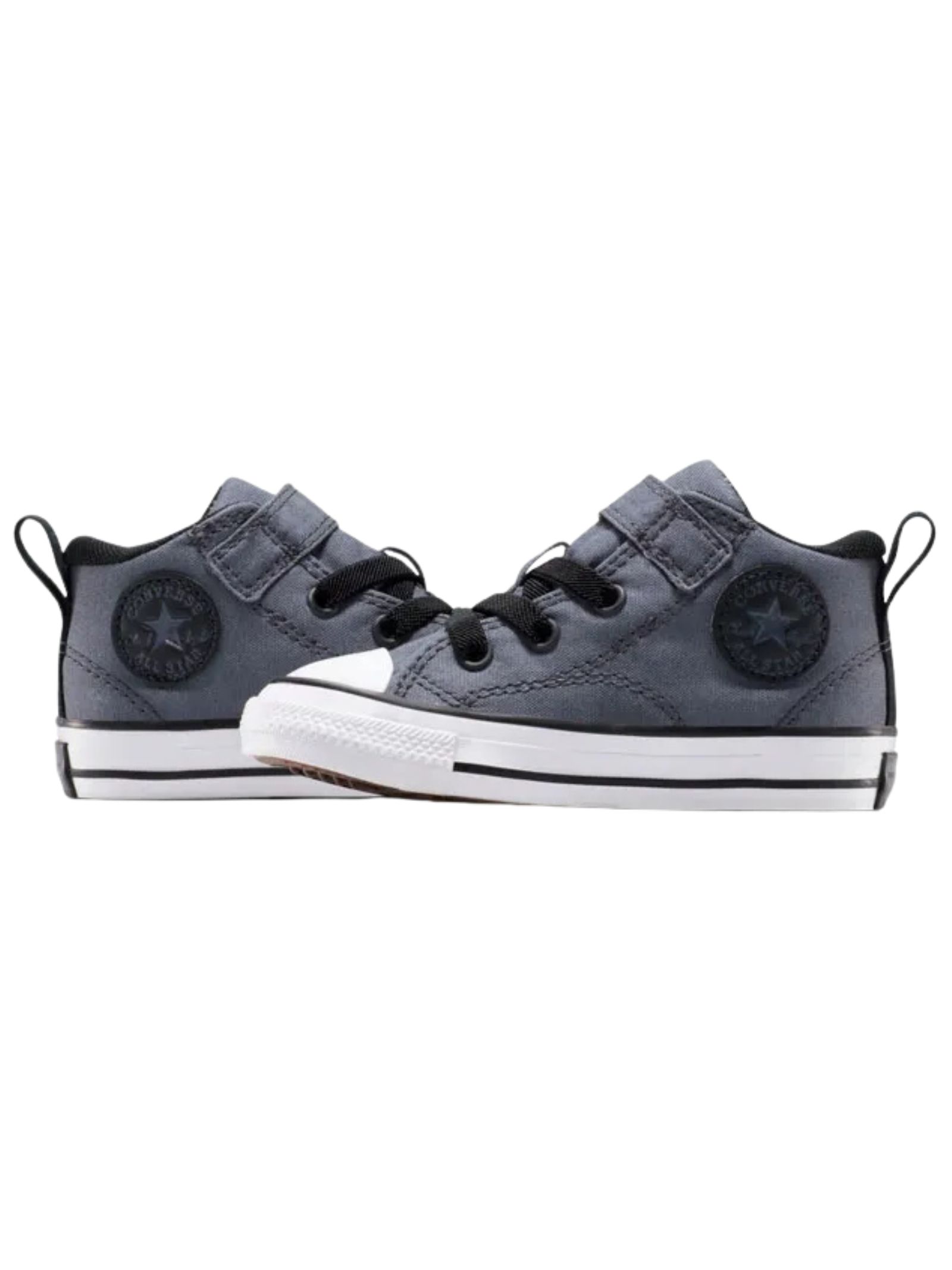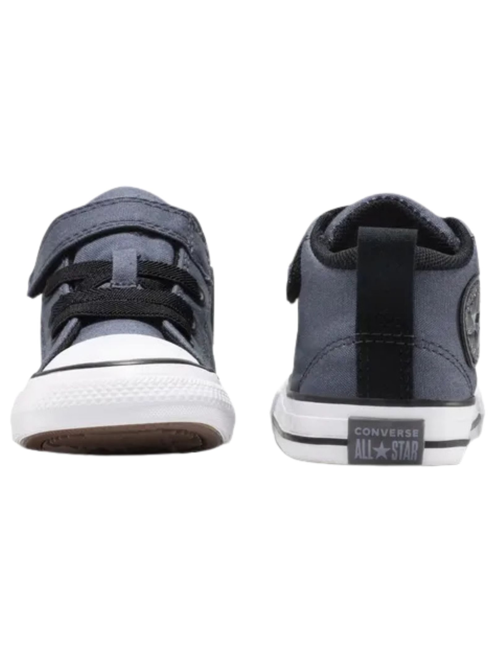 Converse Kids scarpe di colore blu realizzate in tela, modello CTAS MALDEN STREET, design alto, fodera in tela, design con punta tonda, chiusura frontale con lacci e cinturino con velcro, suola in gomma.