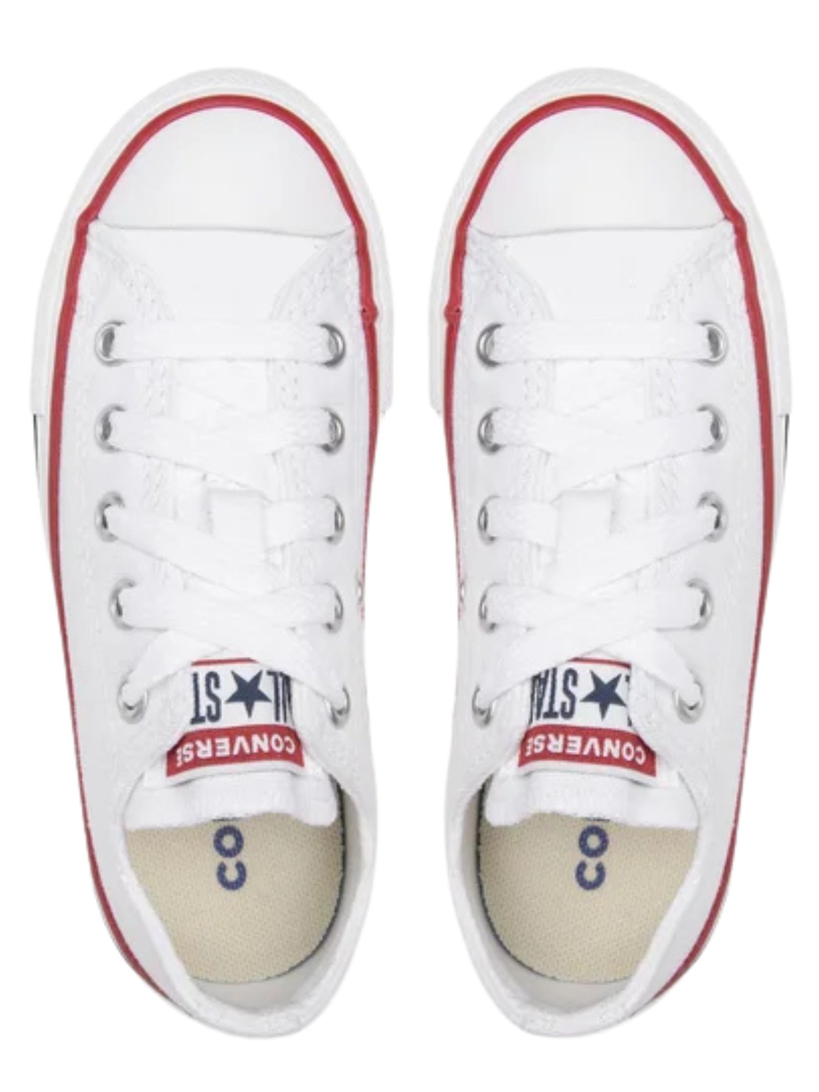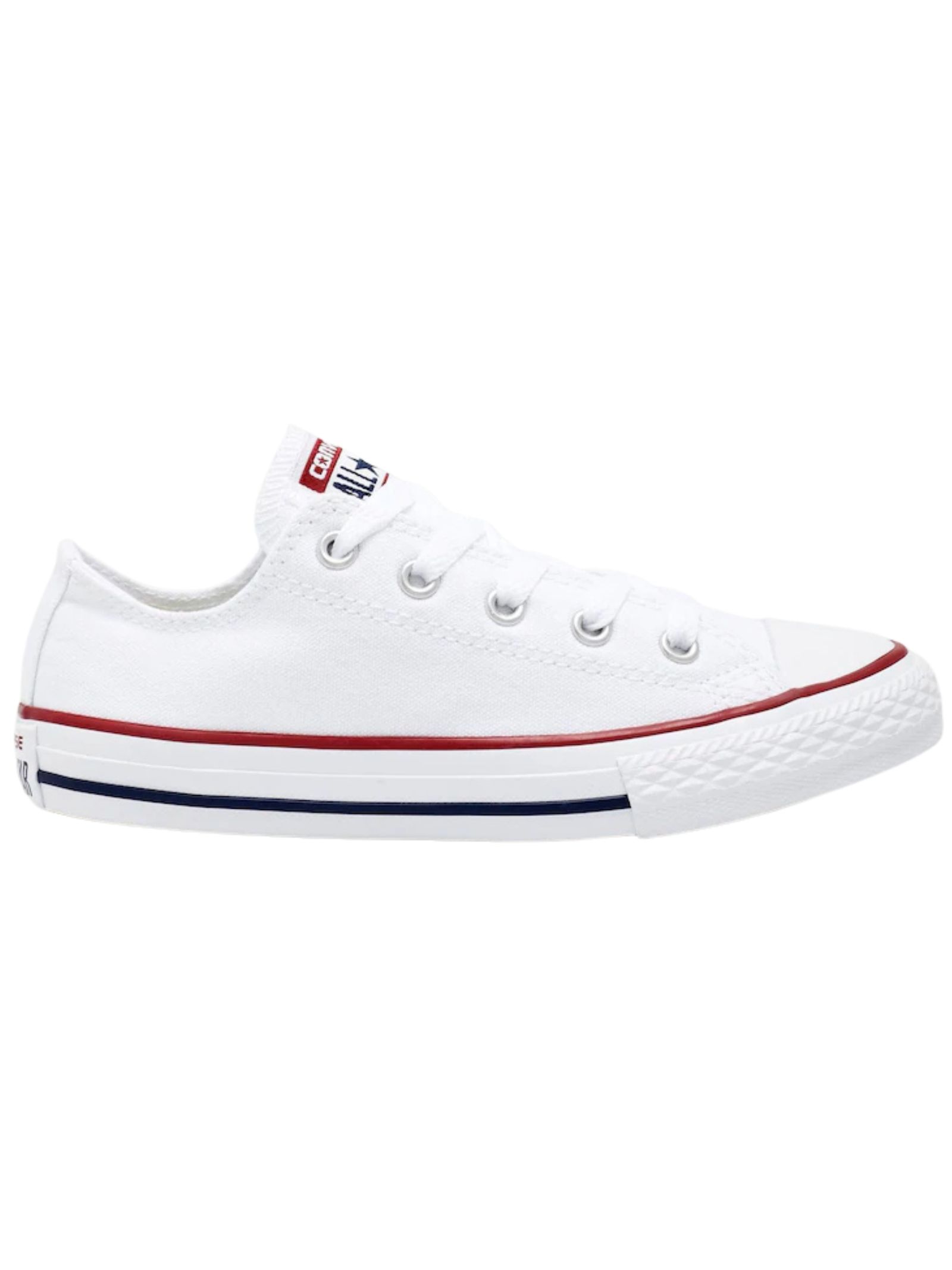 CONVERSE Kids Sneakers in tela di colore bianco, modello basso con suola in gomma, lacci e punta tonda, decorate con iconico logo sulla linguetta. Composizione: 100% tessili