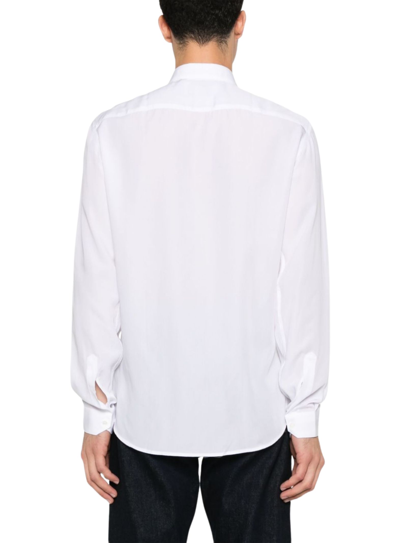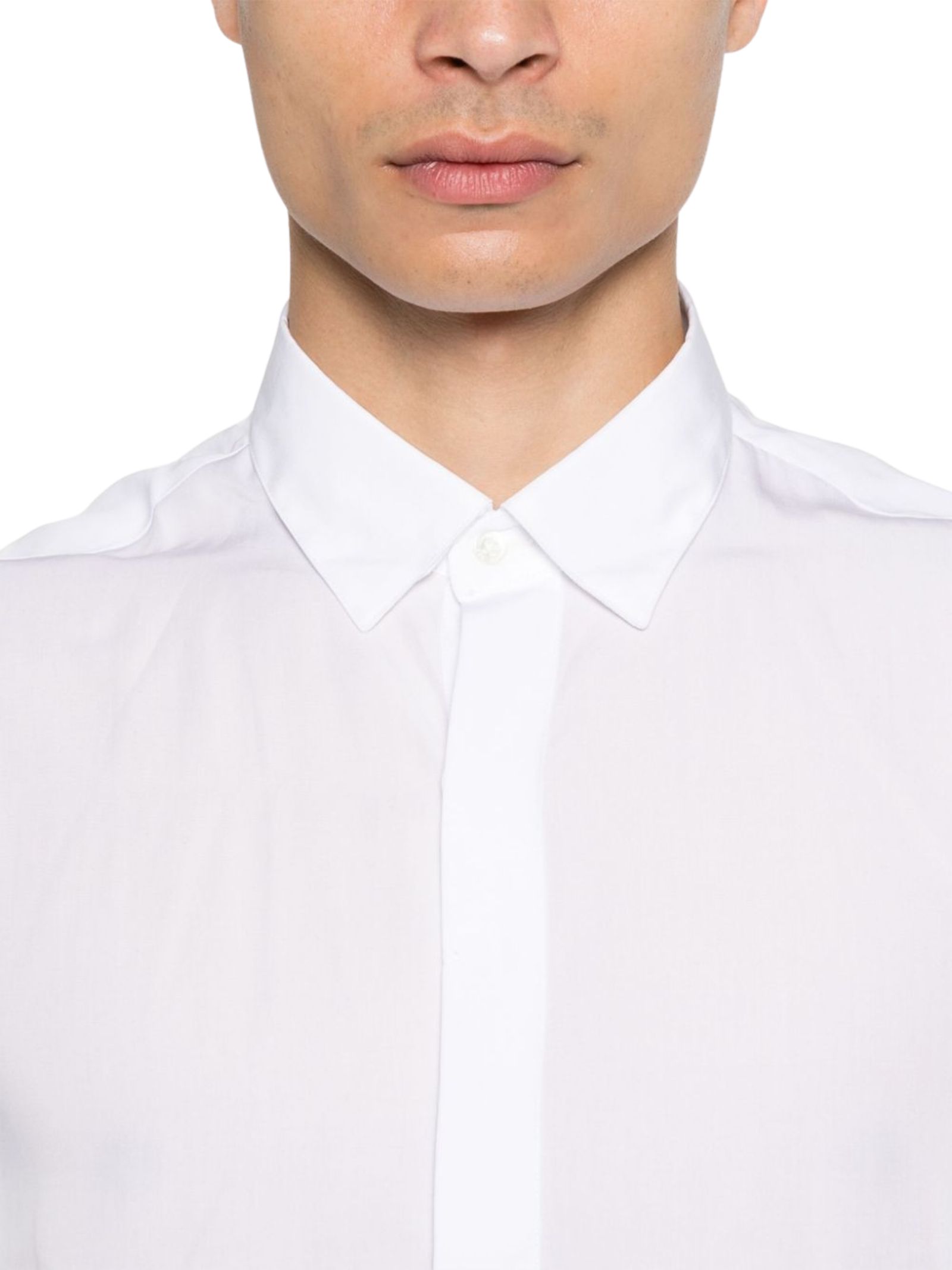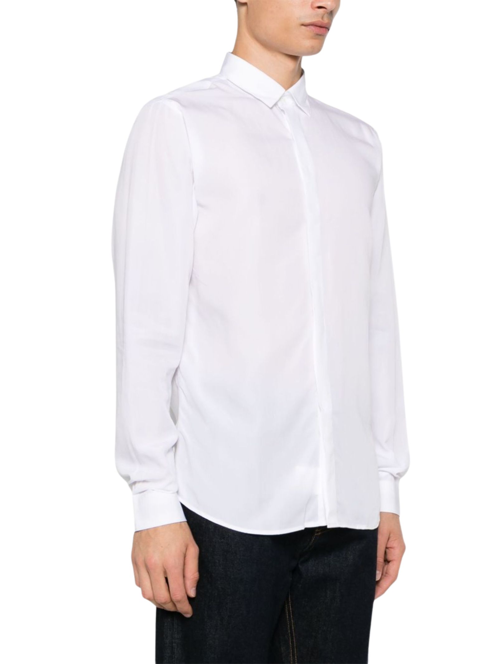 Costumein Kids camicia in cotone modello Ives di colore bianco, colletto classico, chiusura frontale con abbottonatura a scomparsa, maniche lunghe con abbottonatura, orlo curvo, vestibilità regolare. Made in Italy