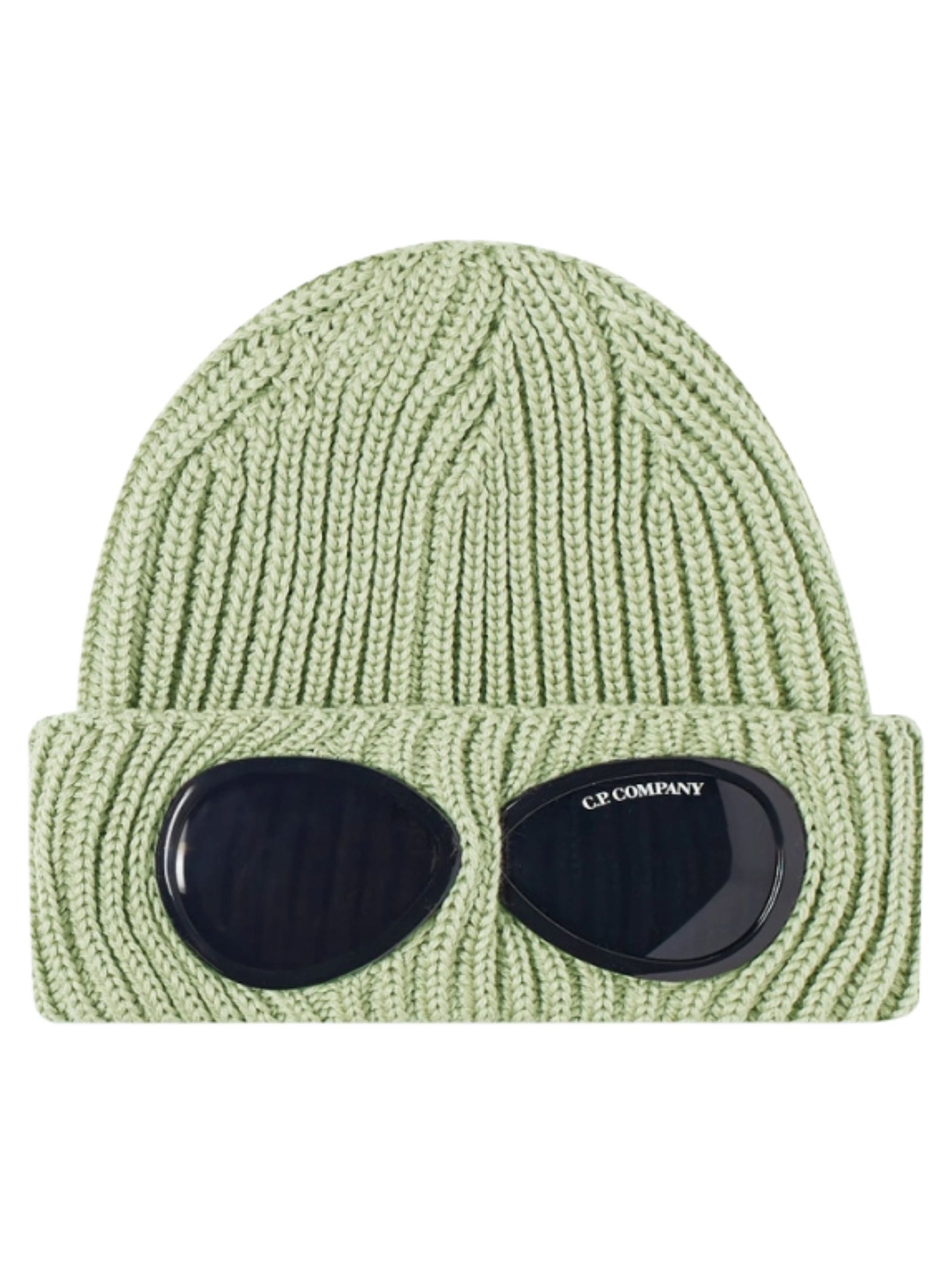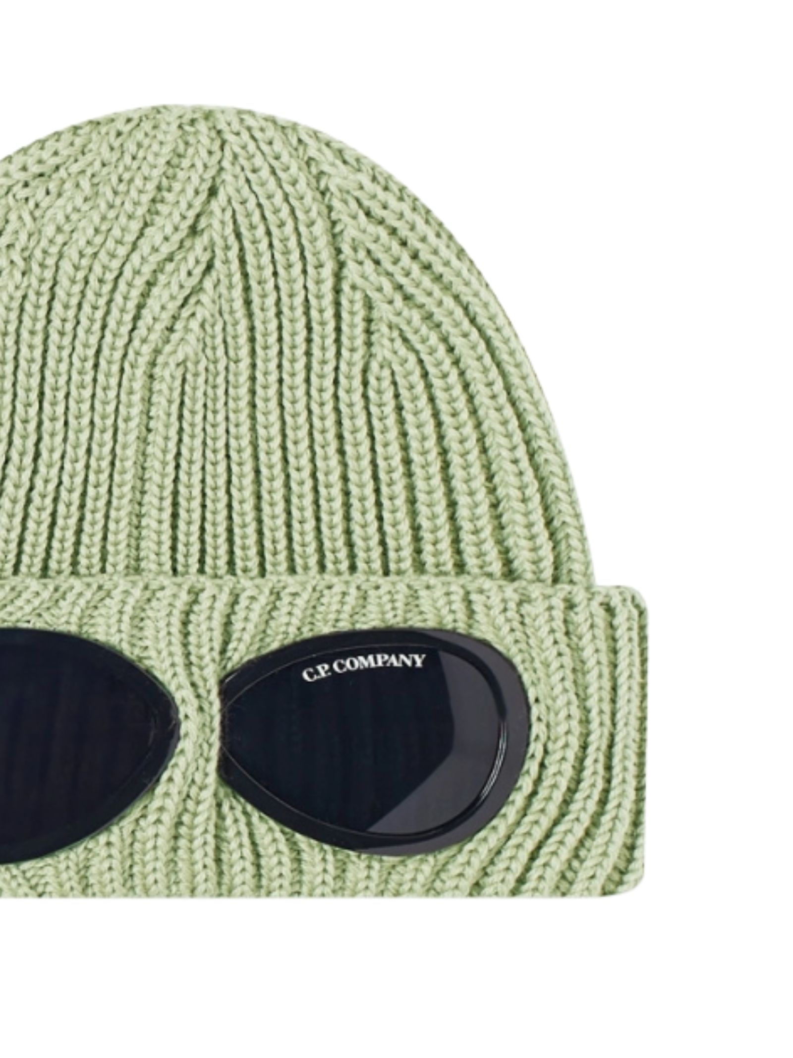 C.P Company Kids cappello di colore verde realizzato interamente a costine, con risvolto e applicazione a forma di occhiale in rilievo con logo. Composizione: 100% cotone. Made in Italy