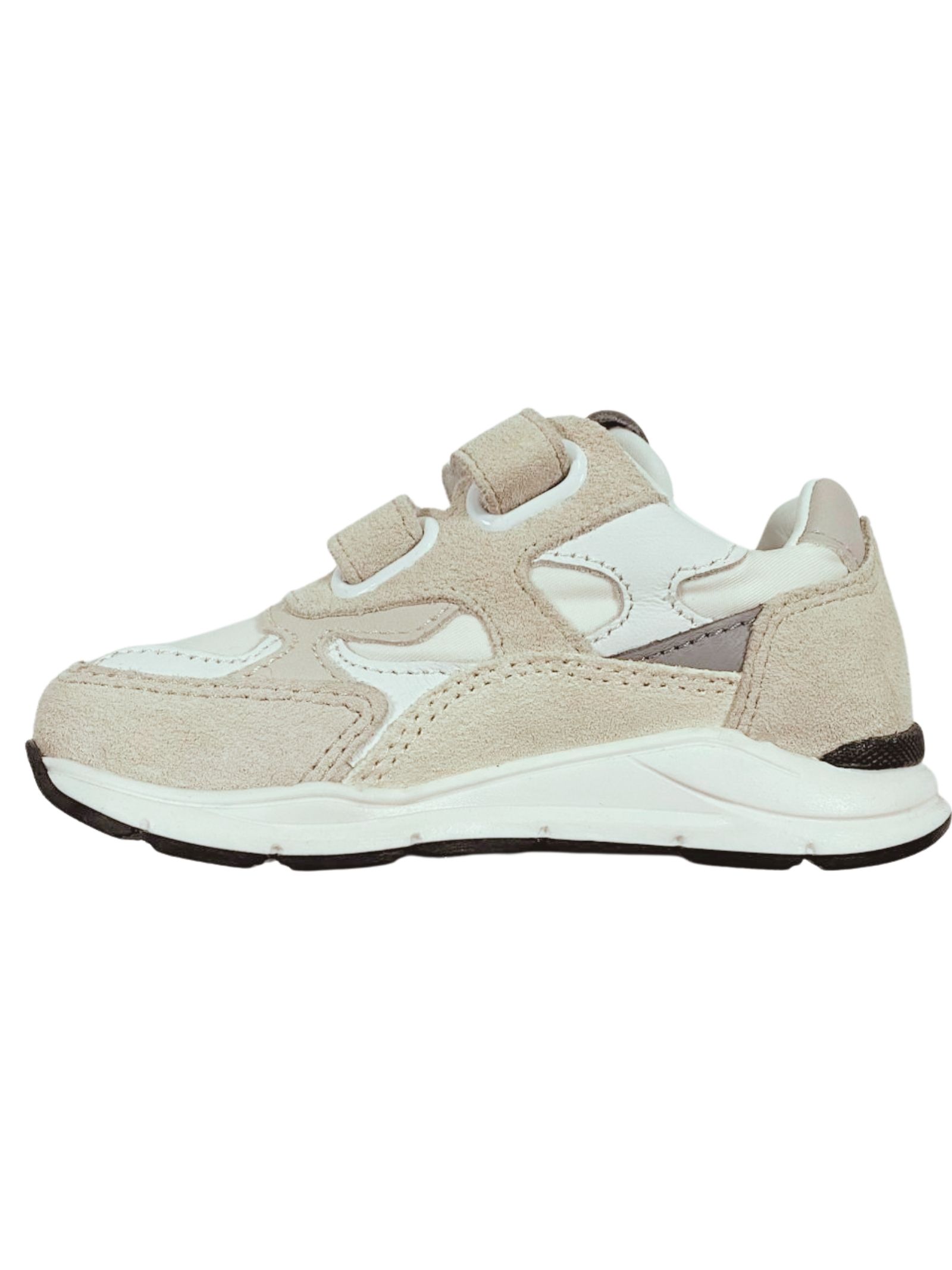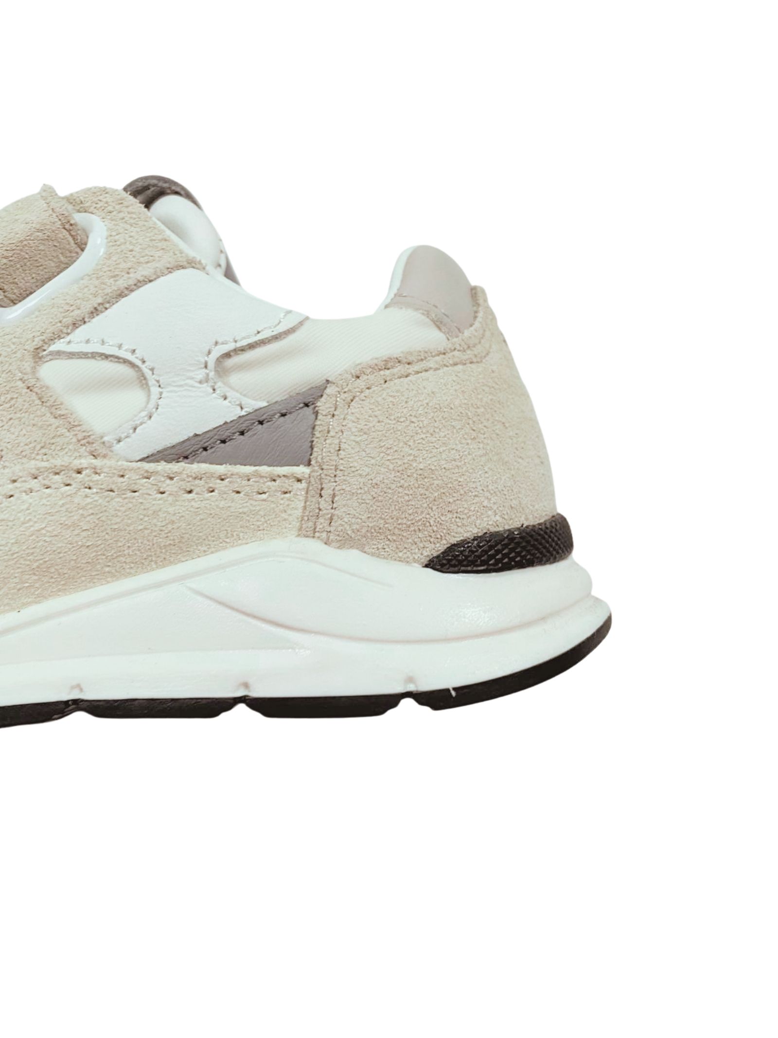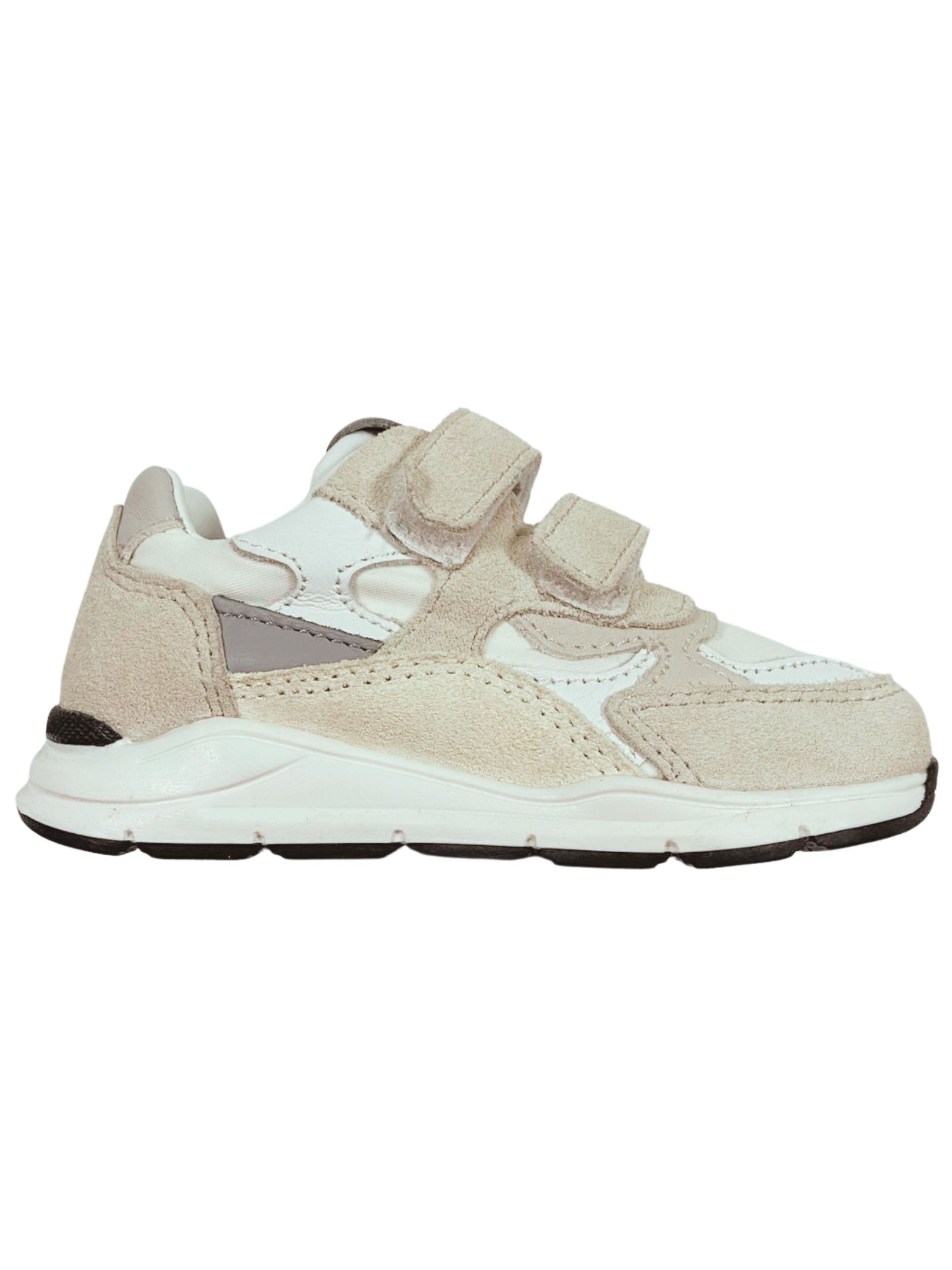 D.A.T.E Kids scarpe in pelle scamosciata di colore bianco, dettagli a contrasto beige, modello con punta tonda, chiusura frontale con strappi, parti in pelle scamosciata, fodera in pelle e spugna di cotone, suola in gomma.
